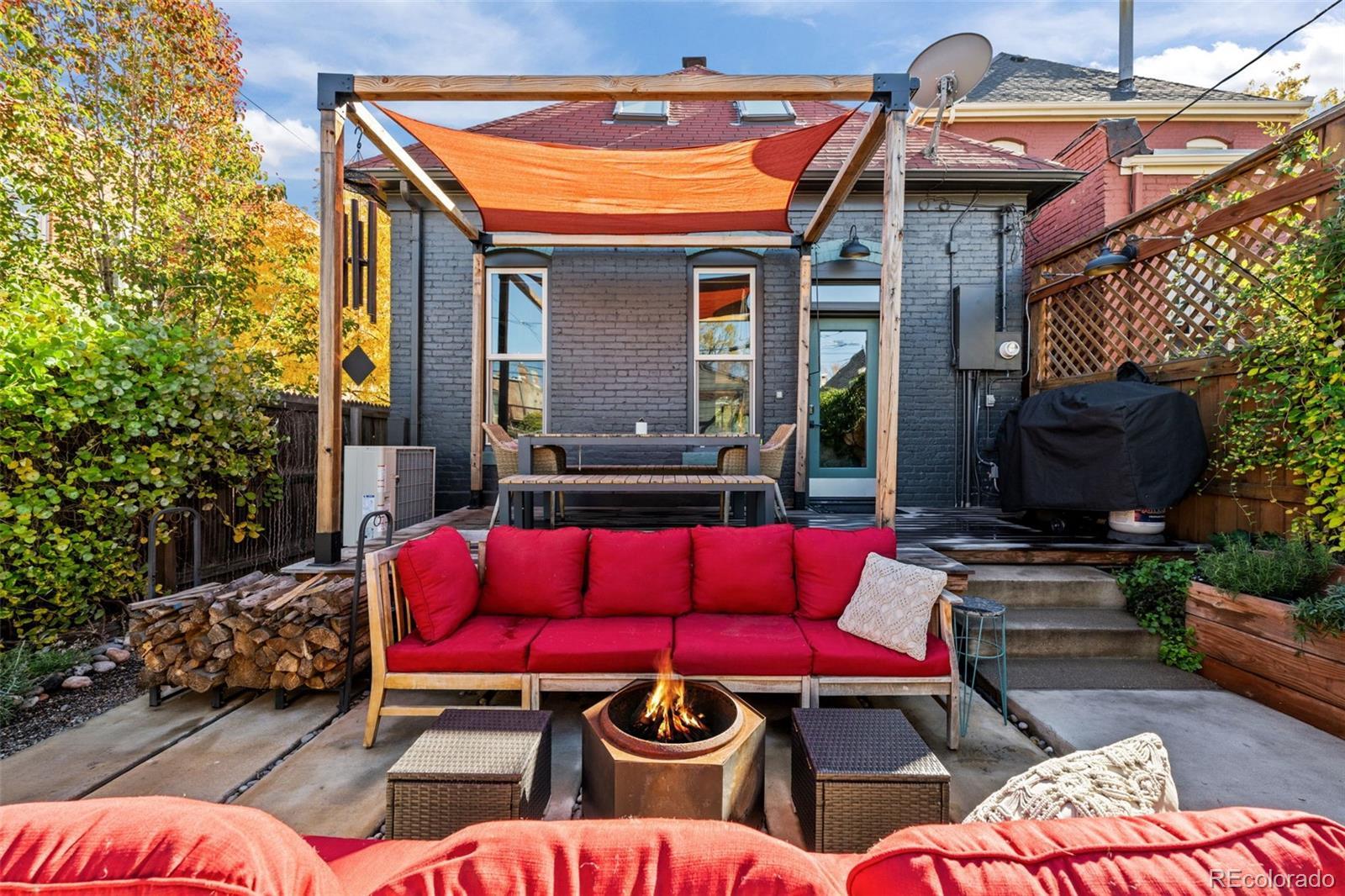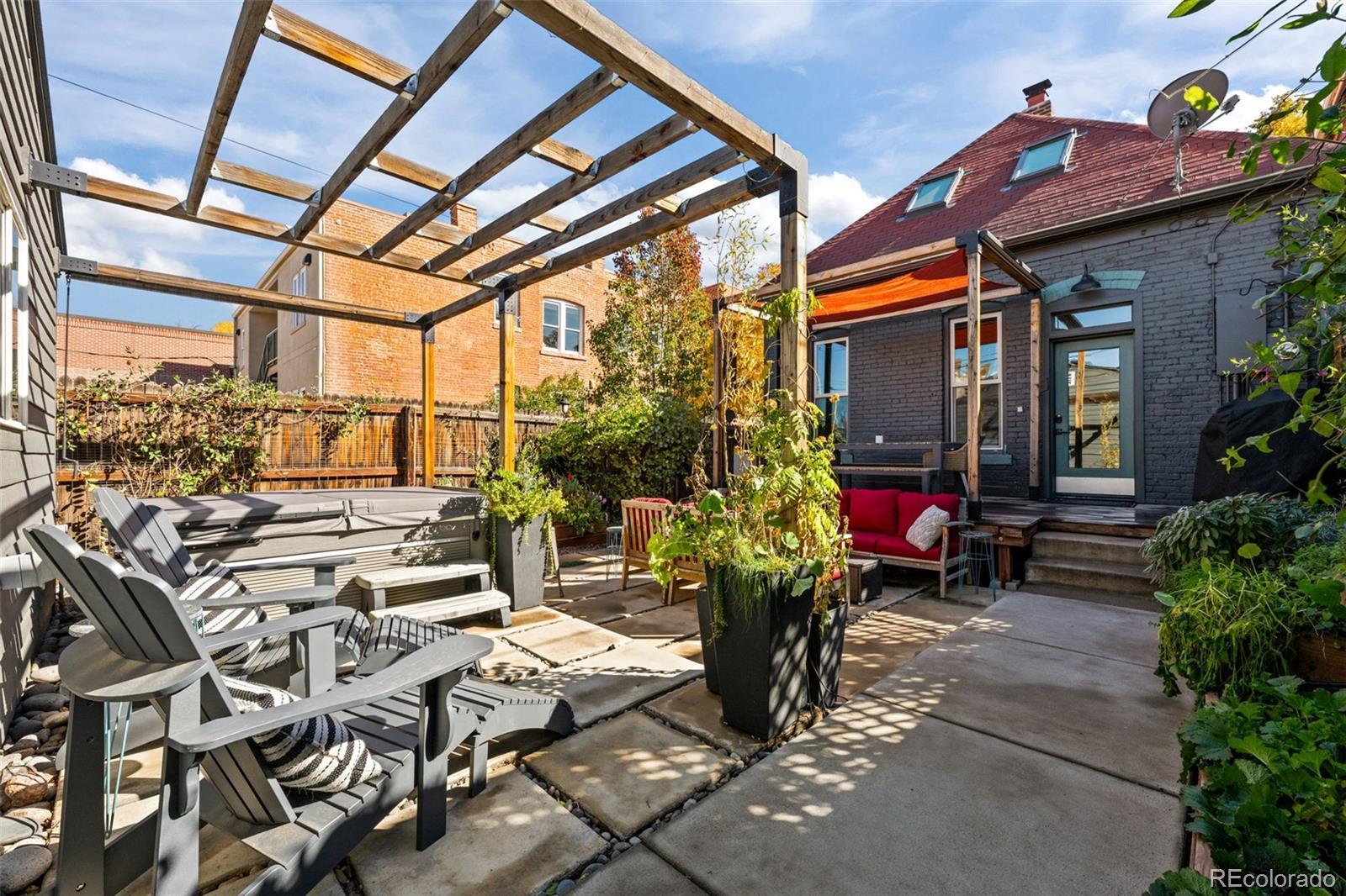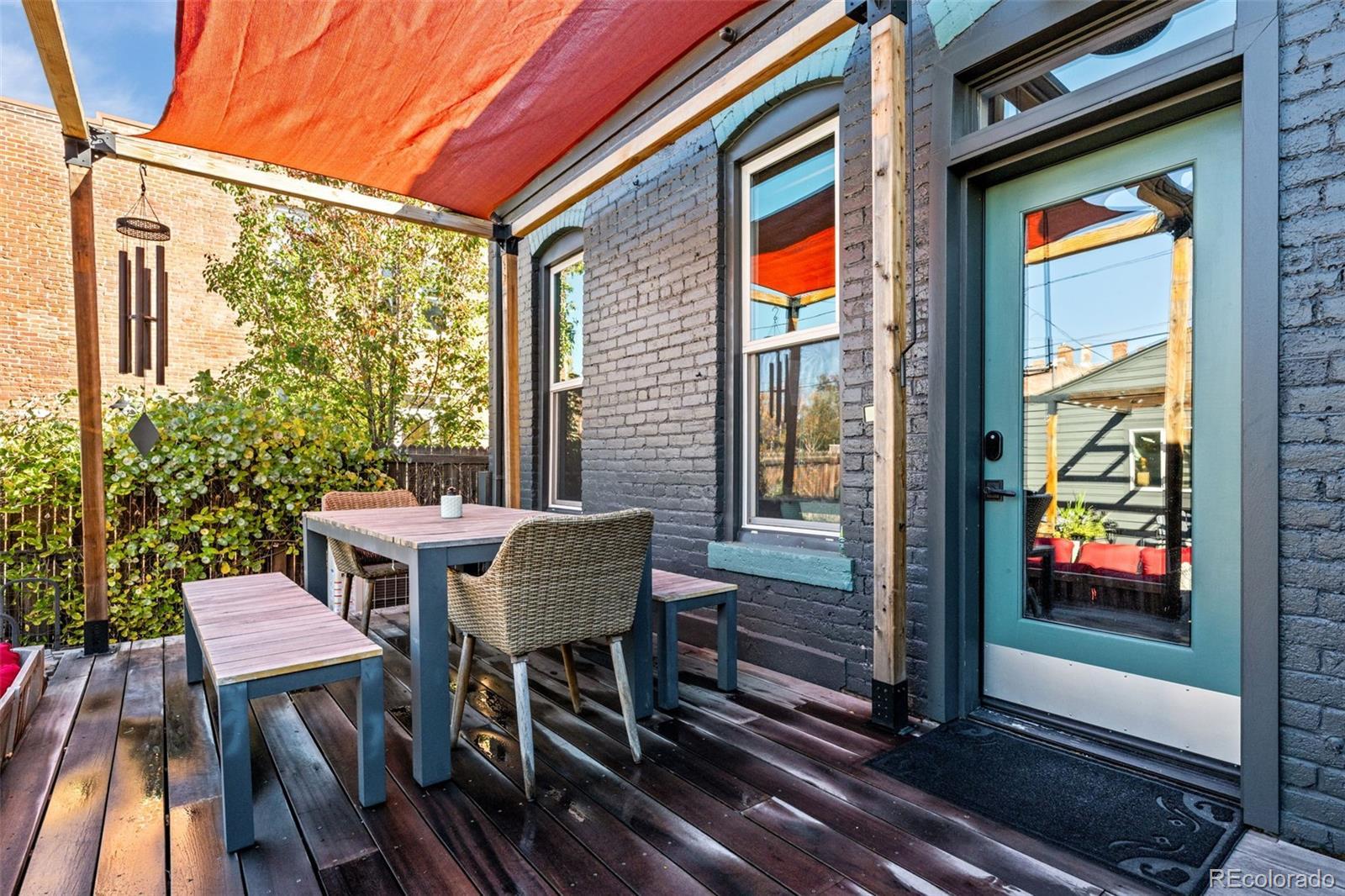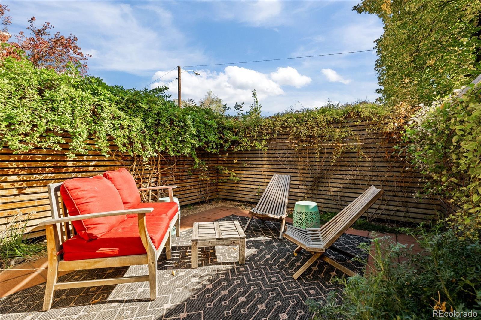 Step into this beautifully upgraded three-bedroom, two-bathroom home that radiates charm and warmth from the moment you enter. Perfect for entertaining, the living room features French doors that open to a private patio, seamlessly connecting to a formal dining area in an inviting open floor plan. As you explore the main level, you’ll appreciate the stunning exposed brick, rich hardwood flooring, and soaring high ceilings that create a spacious ambiance. The renovated kitchen features open shelving and new stainless-steel appliances, including a five-burner gas range. New ¾ bathroom and a guest bedroom or office round out the main floor. Venture upstairs to find two bright and airy bedrooms with new luxury vinyl plank flooring, including a spacious primary suite that boasts large closets and a luxurious spa-like bathroom. This exquisite bath features modern upgrades, including a double vanity with ample storage. Enjoy peace of mind with numerous recent updates, newer solid-wood exterior doors, new ductwork, and a new heat pump furnace, energy-efficient windows, new AC splits, a water heater, smart thermostat, gas insert for the fireplace, electronic door locks, a comprehensive Ring security system with additional cameras, and front and backyard irrigation. Step outside to your backyard oasis, complete with a new deck, planter boxes, flatwork, and multiple entertaining areas that are perfect for outdoor gatherings. You’ll also appreciate the convenience of a newer two-car garage with an electric-car charger and additional storage for all your Colorado adventures. Located within walking distance to local restaurants, coffee shops, and parks, this home offers excellent access to major roadways. Don’t miss your chance to experience the perfect blend of style, comfort, and location!