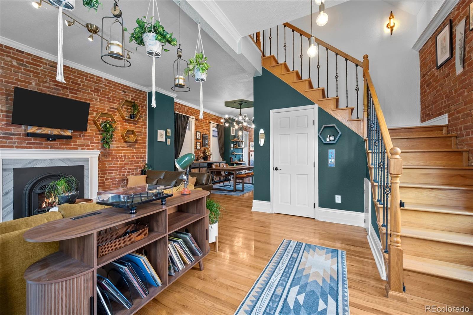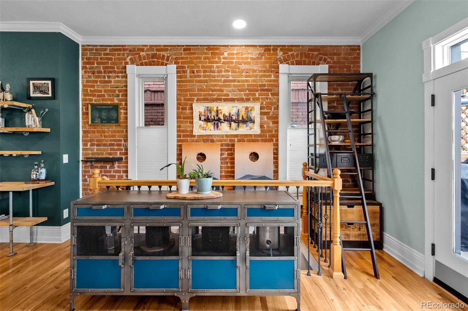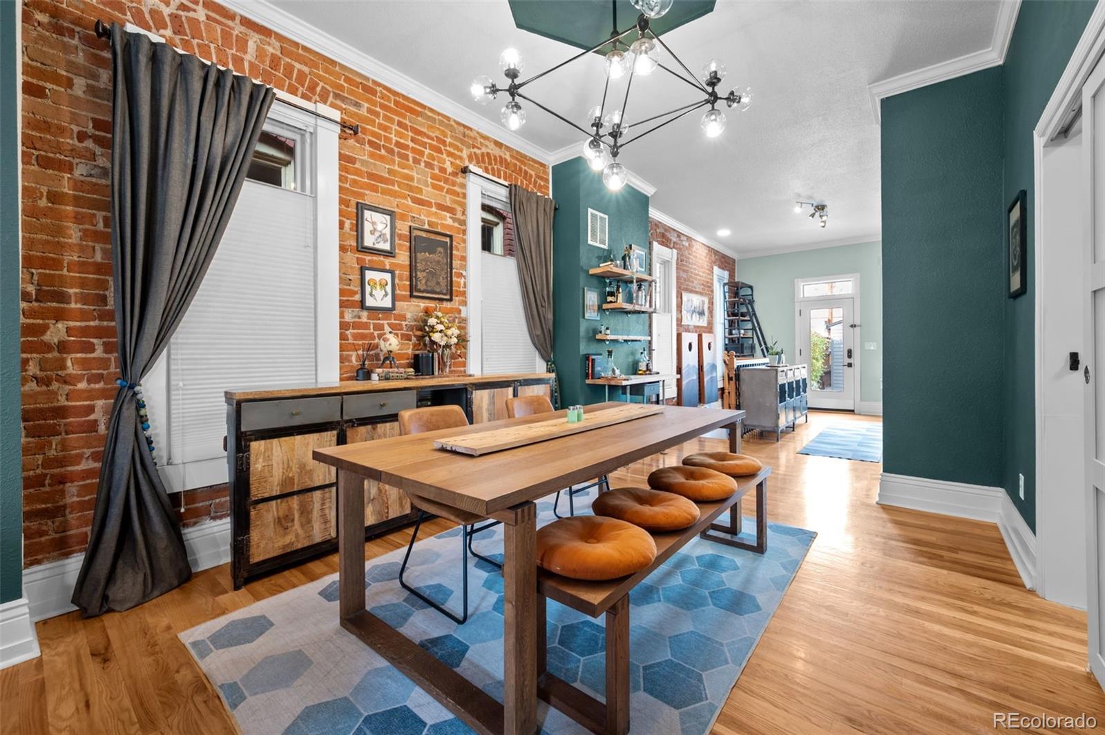 Step into this beautifully upgraded three-bedroom, two-bathroom home that radiates charm and warmth from the moment you enter. Perfect for entertaining, the living room features French doors that open to a private patio, seamlessly connecting to a formal dining area in an inviting open floor plan. As you explore the main level, you’ll appreciate the stunning exposed brick, rich hardwood flooring, and soaring high ceilings that create a spacious ambiance. The renovated kitchen features open shelving and new stainless-steel appliances, including a five-burner gas range. New ¾ bathroom and a guest bedroom or office round out the main floor. Venture upstairs to find two bright and airy bedrooms with new luxury vinyl plank flooring, including a spacious primary suite that boasts large closets and a luxurious spa-like bathroom. This exquisite bath features modern upgrades, including a double vanity with ample storage. Enjoy peace of mind with numerous recent updates, newer solid-wood exterior doors, new ductwork, and a new heat pump furnace, energy-efficient windows, new AC splits, a water heater, smart thermostat, gas insert for the fireplace, electronic door locks, a comprehensive Ring security system with additional cameras, and front and backyard irrigation. Step outside to your backyard oasis, complete with a new deck, planter boxes, flatwork, and multiple entertaining areas that are perfect for outdoor gatherings. You’ll also appreciate the convenience of a newer two-car garage with an electric-car charger and additional storage for all your Colorado adventures. Located within walking distance to local restaurants, coffee shops, and parks, this home offers excellent access to major roadways. Don’t miss your chance to experience the perfect blend of style, comfort, and location!
