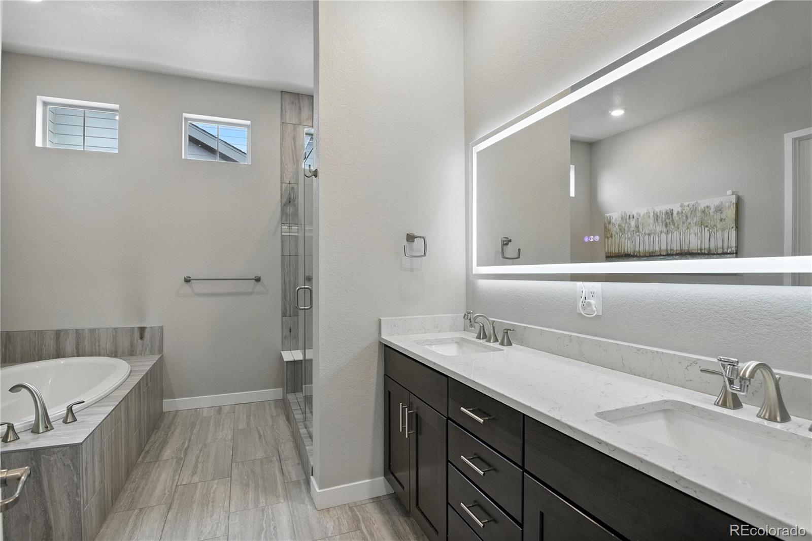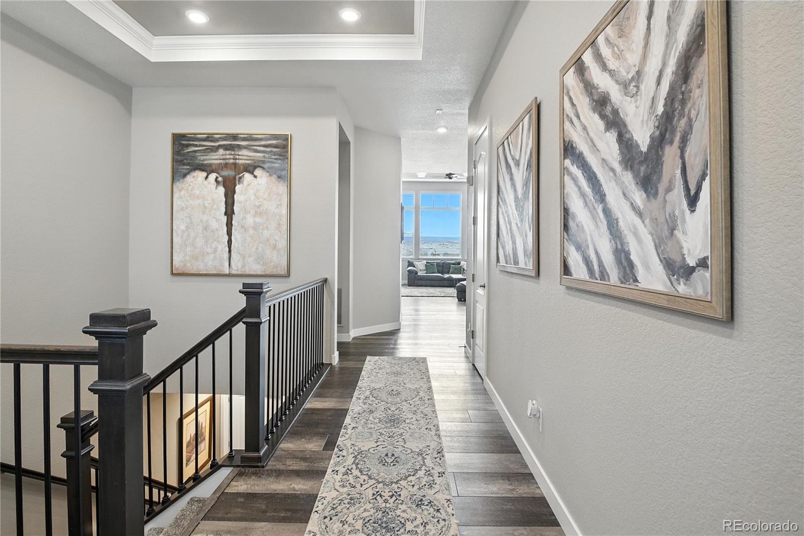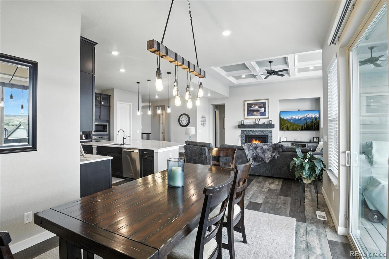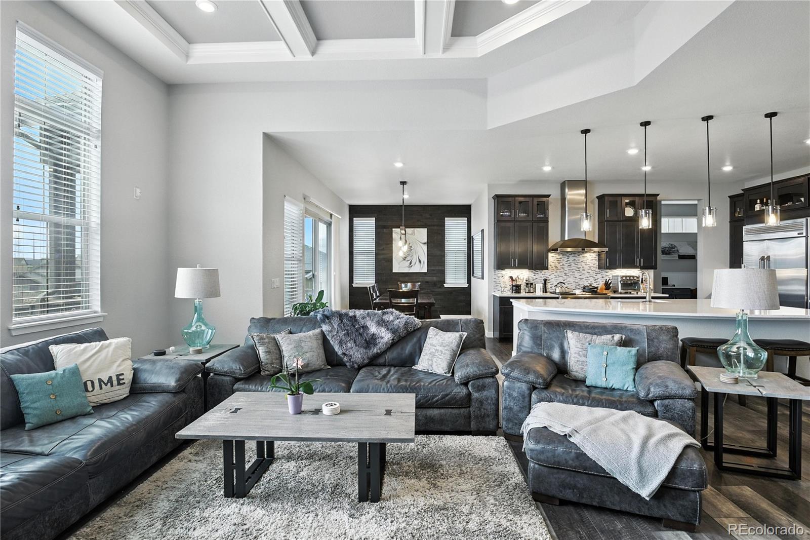 Luxury living at its finest in the heart of Sterling Ranch with this stunning Cabrillo ranch floor plan. Boasting over 5,600 sq ft, this home offers thoughtful design and top-tier finishes, including a full walkout basement and 12-ft custom ceilings in the great room. A perfect layout for a multi-gen home. The cozy fireplace sets the perfect ambiance for gatherings, while the chef-inspired kitchen shines with 42" cabinets, glass accents, a quartz island, and premium Monogram stainless steel appliances with dual dishwashers. Throughout the home, you’ll find 8-ft doors, coffered ceilings, quartz countertops, and extended upgraded hardwood flooring that exude elegance. Step out onto the back deck and take in the breathtaking, unobstructed views—the perfect backdrop for morning coffee, offering breathtaking sunrises. Imagine nights by the custom fire pit, sharing stories and s’mores under the stars. Take advantage of the park across the street. The smart home system gives you full control of appliances, sprinklers, and lighting right from your phone. A spacious 3-car garage provides ample space for your vehicles and storage. This thriving community offers exceptional amenities, including a coffee shop, a brewery, a clubhouse, a community pool, and scenic walking trails. Plus, you're just minutes from Chatfield Reservoir, Roxborough Park, and top-rated golf. This is more than a home—it’s your lifestyle upgrade. Schedule your showing today!
