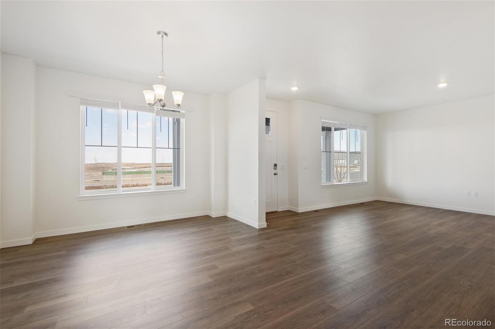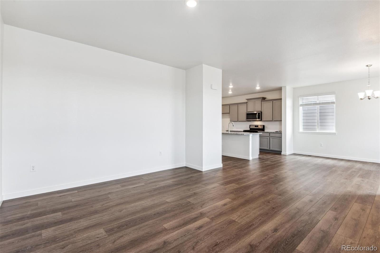Gorgeous Elbert home to include 4 Bedrooms, 2.5 Bath,2 car garage and an open floor plan with expansive 9 ft. ceilings on the main floor. Spacious kitchen includes eat in breakfast bar (expansive counter/cabinet space), pantry, gas stainless steel range, dishwasher, microwave, quartz counters w/undermount sink & chrome pull out faucet, gorgeous cabinets w/crown molding, and beautiful luxury vinyl plank on most of the main level and all wet areas. This home offers an 8' front door, 2 panel interior doors, A/C, tankless water heater,8' tall garage doors with Smart Openers, Smart thermostat, Smart lighting, washer/dryer, refrigerator, blinds, rear yard landscaping, and more. Several onsite Parks, Picnic Area, Playground and walking paths throughout the Community. ***Estimated Delivery Date: December. Photos are representative and not of actual property***