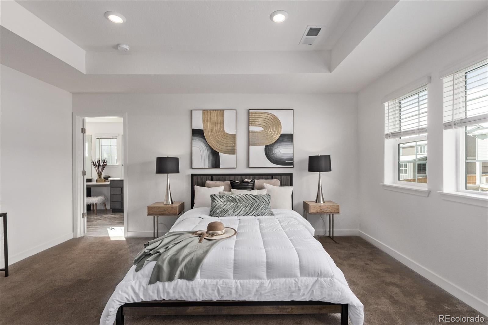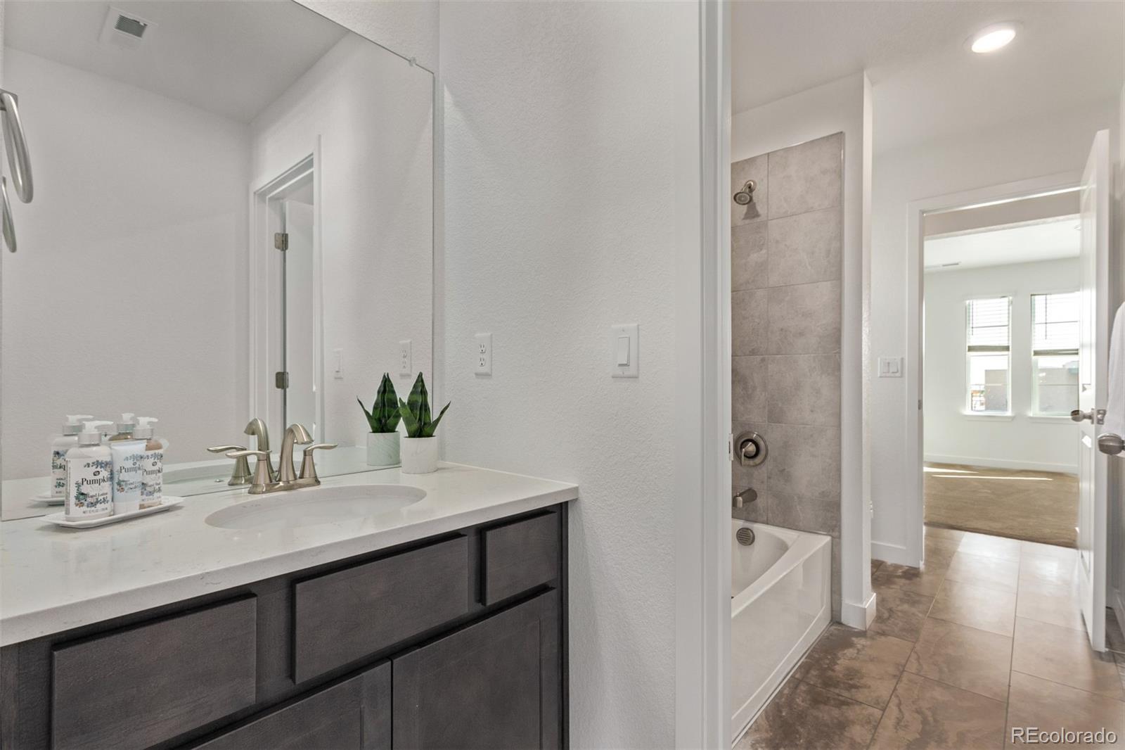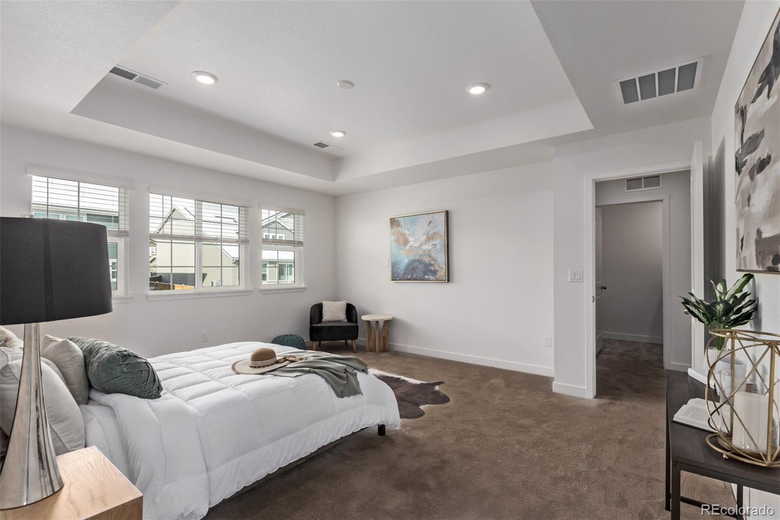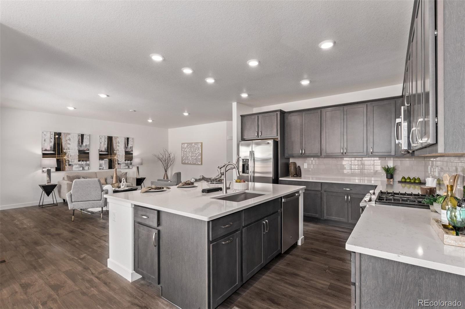 This home is LIKE NEW! Built in 2023 located on a premium homesite with mountain views. This stunning home will impress with all of the upgraded finishes! The gourmet kitchen is a chef's dream boasting high-end cabinets, quartz countertops, double ovens, five burner gas range, butler's pantry and large island that opens to the spacious and vaulted family room. The primary bedroom will not disappoint with custom touches, mountain views, a walk-in closet, luxurious bathroom with dual vanities and a spa-like shower with lots of room. As if this was not enough, wide planked luxury vinyl floor, two furnaces and A/C unit for maximum efficiency and so much more. The exterior is equally impressive and features both a covered front and back porch. The large covered back porch provides the perfect space to relax or entertain with tranquil mountain views. Located in the Willow Bend community in North Thornton, this home is close to a park, walking paths, a new STEM school, and offers quick access to E-470 and I-25. Just a 20-minute drive to DIA, Thornton offers numerous amenities, including 3 rec centers, a dog park, frisbee park, shopping, restaurants, Costco, Home Depot, Top Golf, and golf courses. This home is part of School District 27J with newer schools,. Welcome HomeThis is a must see home that will impress!