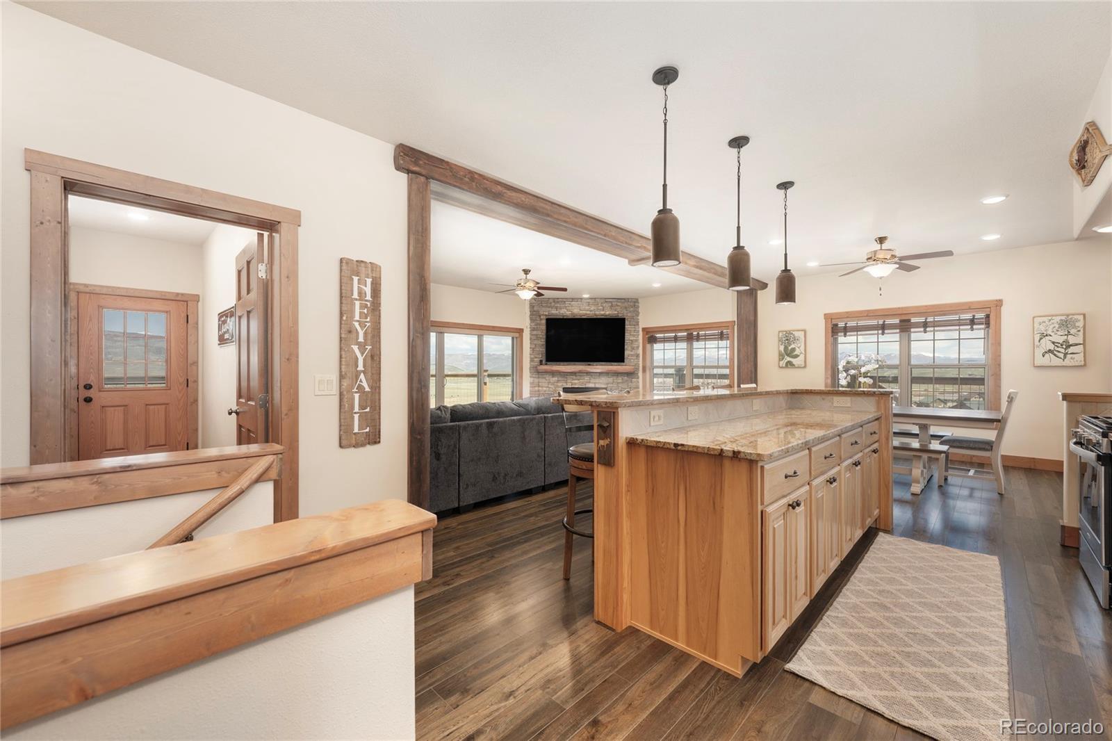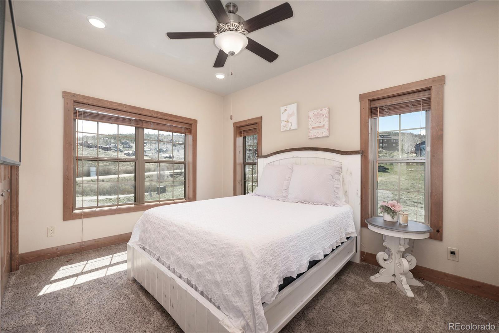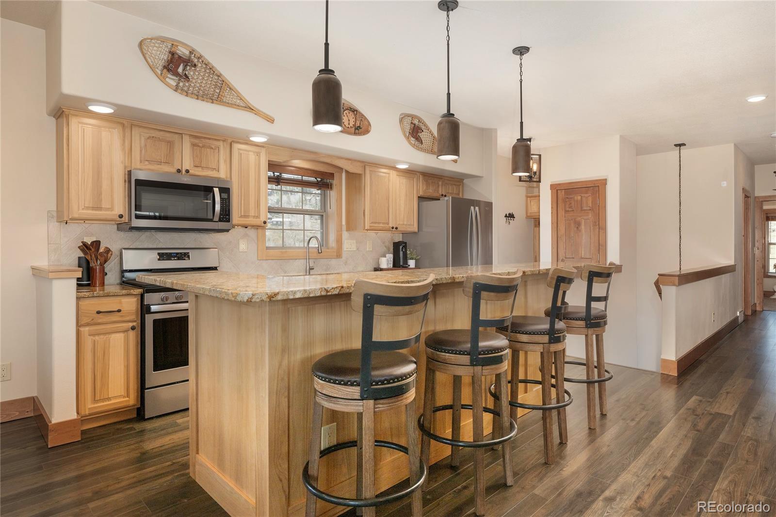 Stunning Mountain Retreat in Innsbruck Experience breathtaking mountain vistas from this meticulously maintained 3-bedroom, 3-bathroom home, nestled on a spacious half-acre lot in the coveted Innsbruck neighborhood of Granby. Constructed in 2019, this residence seamlessly blends modern amenities with the tranquility of mountain living. Open-concept living area featuring a stacked stone gas fireplace, seamlessly connecting the kitchen and dining spaces. Gourmet kitchen equipped with slab granite countertops, a generous 9-foot eat-in bar ideal for entertaining, stainless steel appliances, elegant cabinetry, and under-cabinet lighting.Two distinct living areas provide ample space for relaxation and gatherings. The exterior of the home has durable LP Smart Siding enhancing the home's exterior appeal and was painted in 2024. An expansive wrap-around Trex deck offers the perfect vantage point for enjoying sunsets, mountain views, and local fireworks displays. Beautifully landscaped grounds adorned with aspen trees, vibrant flowers, and asphalt driveway recently sealed.Oversized heated garage with abundant storage, luxury polyaspartic flooring leading to a covered back patio that showcases serene views of the surrounding mountains and ranch lands. This property exemplifies the ideal mountain lifestyle, combining comfort, style, and natural beauty. Don't miss the opportunity to make this exceptional home your own.