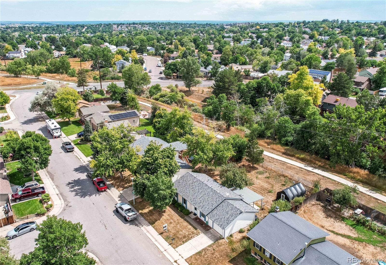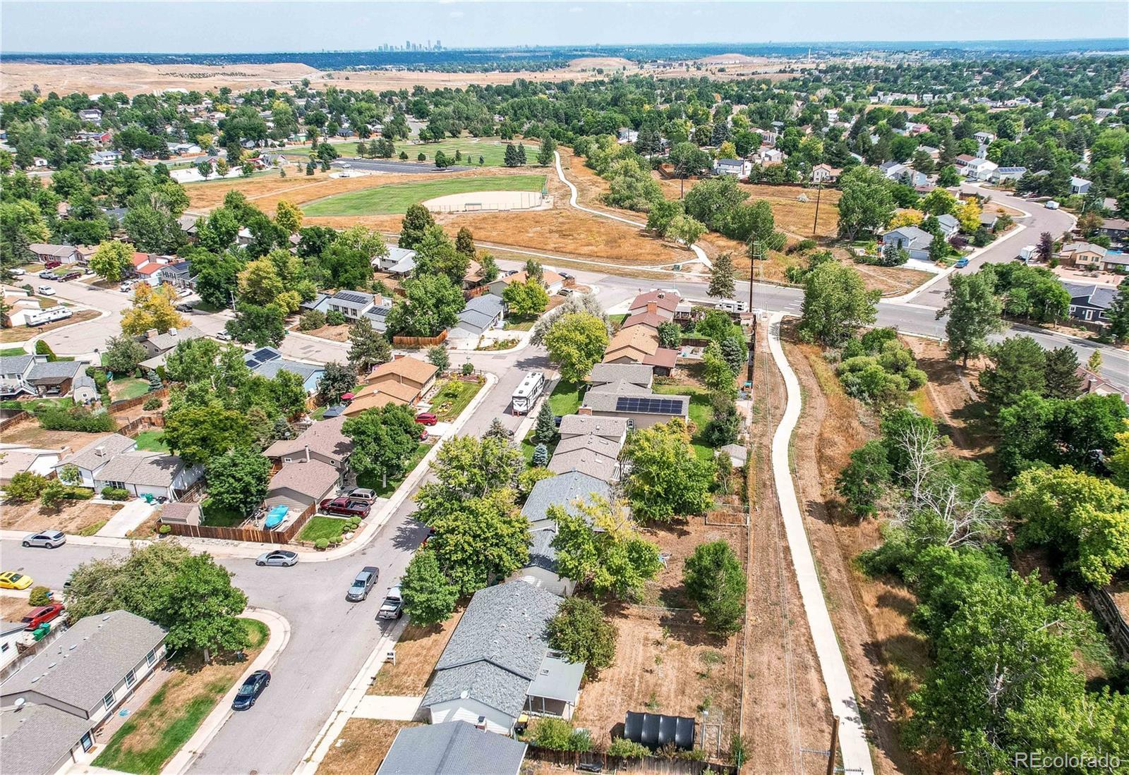 Welcome to a charming home that blends comfort with convenience in peaceful Friendly Hills. This two-bedroom home, featuring an additional study, offers 1,038 square feet of useable living space perfect for anyone seeking both tranquility and easy access to nearby amenities. Cozy living area and a kitchen equipped with newer stainless steel appliances including a gas range — perfect for home-cooked meals or quick bites before heading out. The spacious study provides an ideal space for remote work or another bedroom. The attached one car garage is finished for another useable space. Enjoy a generous backyard that backs directly to open space and a scenic pathway, creating a private oasis to relax, entertain, or explore. The yard is a nature lover’s paradise, complete with a greenhouse, fruit trees, and berry bushes with a drip system. Whether you're a seasoned gardener or just experimenting with your green thumb, this space is ready to grow with you. Located just two blocks from a park, swimming pool, and Bear Creek Park. Easy access to Highway 470 and Highway 285 is just minutes away, making commuting or weekend getaways a breeze. Local shopping, including a nearby grocery store, and top-rated schools add to the everyday convenience. NO HOA