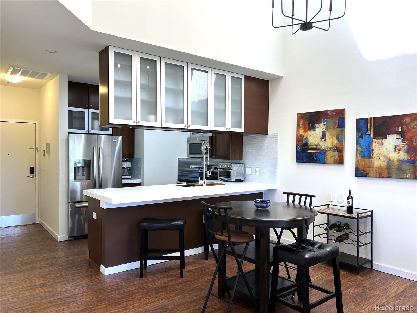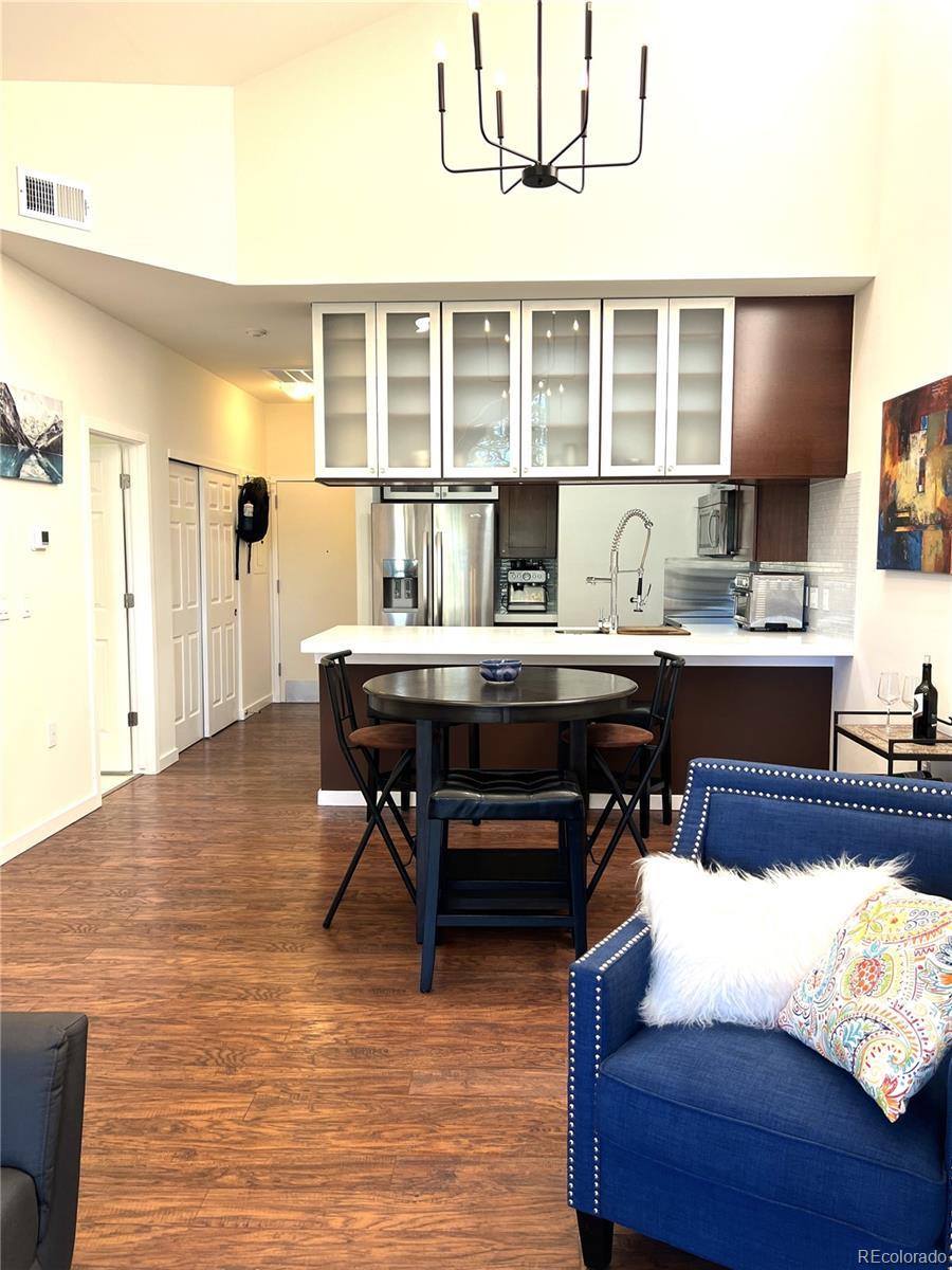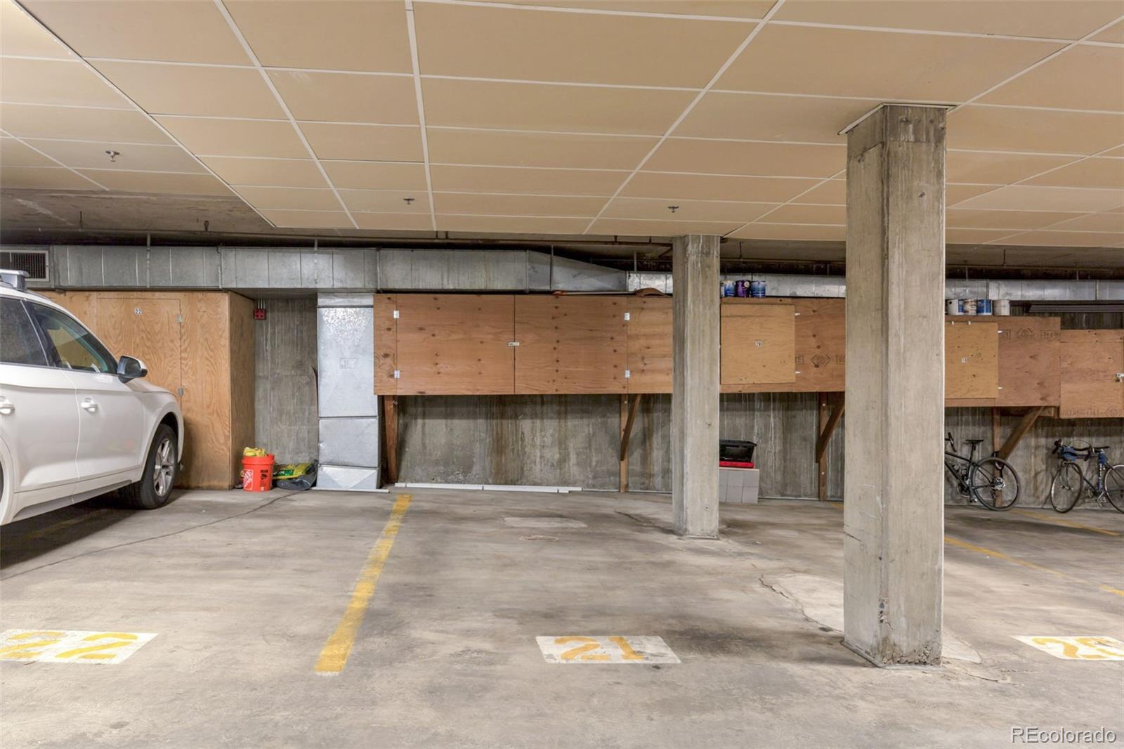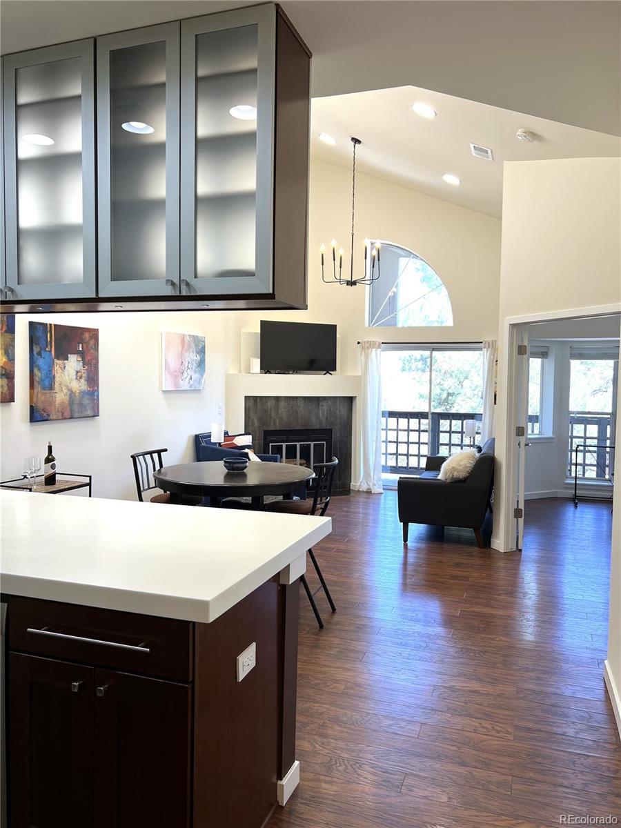 ***Motivated Seller**** YOU WON'T FIND THIS MUCH STORAGE, VAULTED CEILINGS AND SKYLIGHTS IN ANY OTHER UNIT Don't miss out on this stunning 2 bed/1 bath condo featuring an open floorplan, 18 ft ceiling, flooded with natural light from the windows and skylights, giving you great views of the Park. Features hardwood floors throughout the unit, high ceilings, premium finishes, and a meticulously designed interior. The updated kitchen with island, an SS sink, stainless steel appliances, solid surface countertops, and a stainless steel fridge. A cozy living room with a fireplace and a sliding glass door extends the living space to the private Balcony overlooking the park. The spacious primary bedroom boasts a large double closet and an ensuite access to the bath with dual sinks. This unit also has an in-unit laundry closet. The secondary bedroom offers comfort and convenience that could also be used as an office. One parking space and storage unit is directly across from the elevator in the secured parking garage. This unit also has abundant additional storage in the attic with drop-down stairs for easy access. Enjoy the peace of mind provided by a secure building and a well-managed HOA, allowing for effortless lock and leave convenience. This incredible condo is conveniently located near Cherry Creek's fine dining and retail shopping, Wash Park, with easy access to Downtown Denver.
