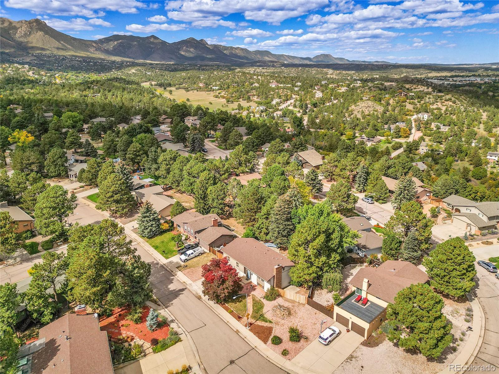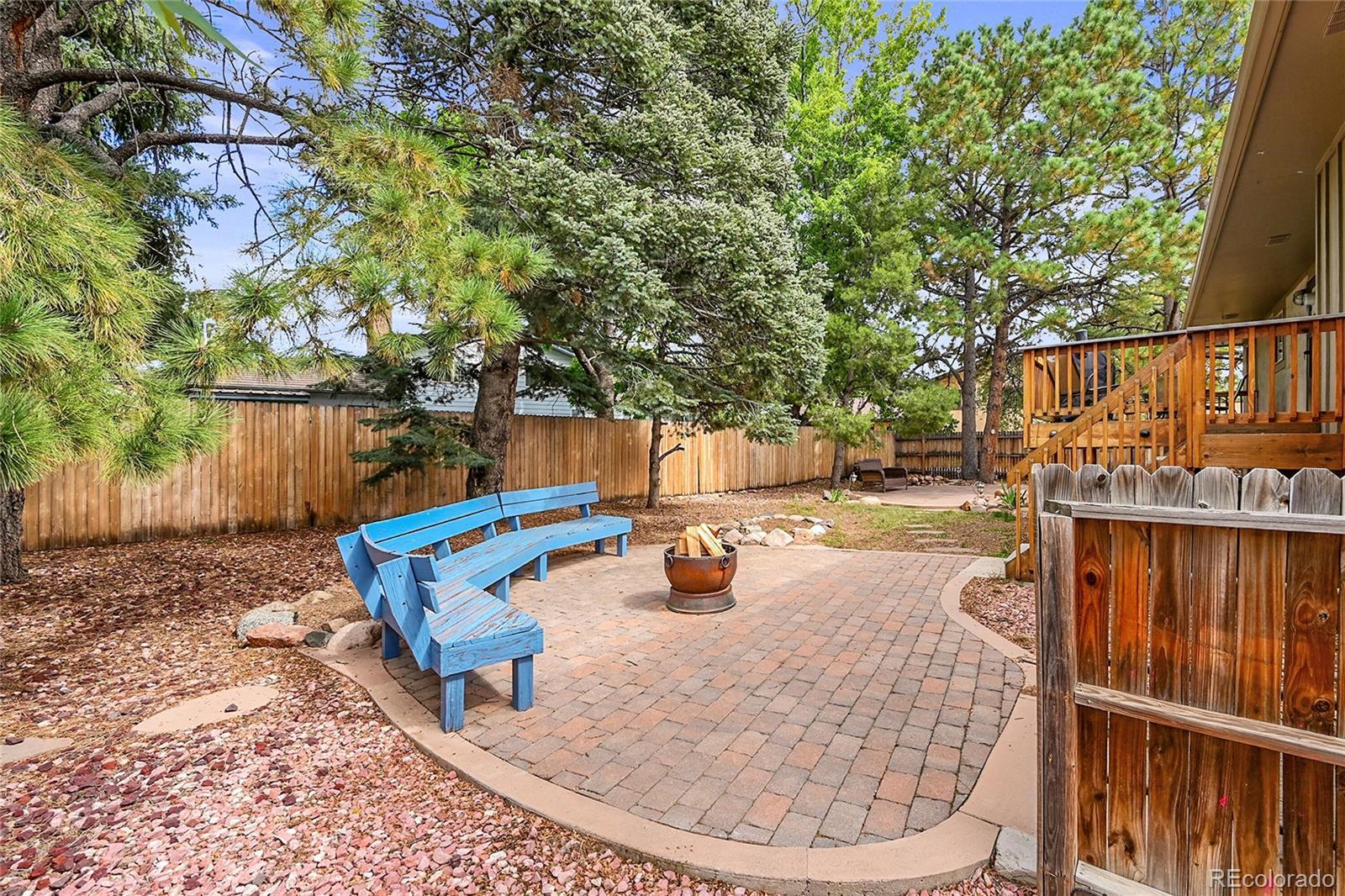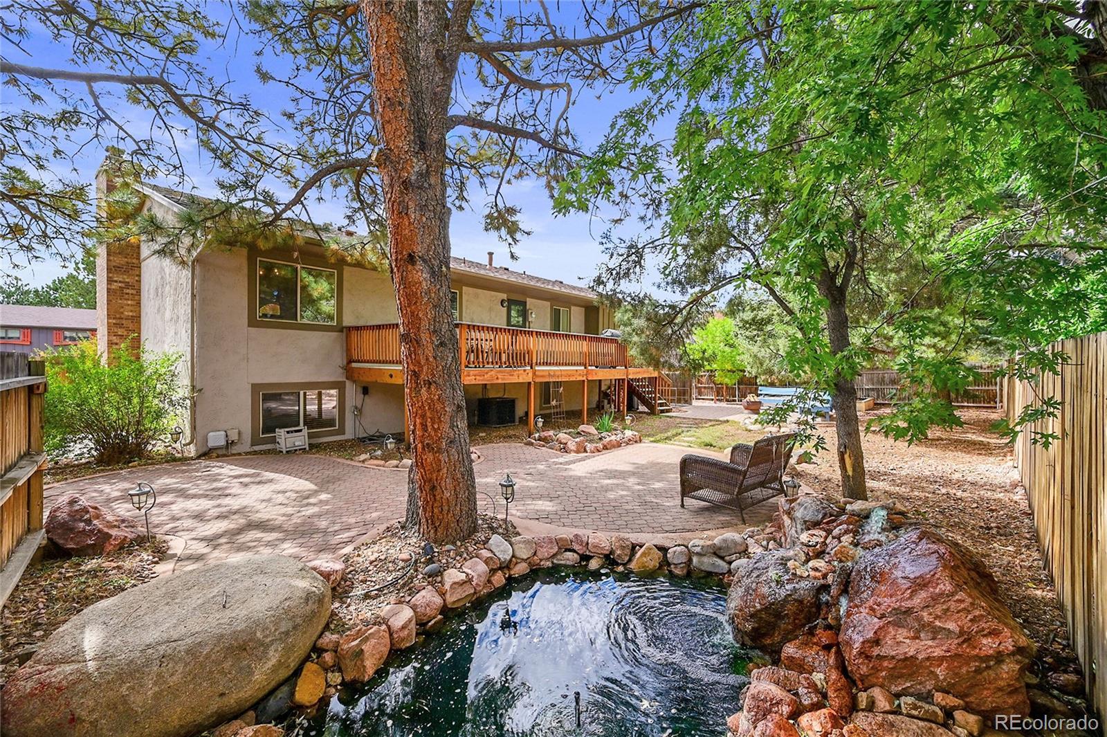Welcome to this beautifully maintained Rockrimmon home, brimming with natural light and set on a .21-acre lot. Key updates include a new furnace in 2021, a 50-gallon water heater in 2019, a new roof in 2014, and an updated electrical panel in 2012—providing peace of mind for years to come - just minutes from schools, parks, and shopping. This house combines comfort, character, and thoughtful improvements. But the real value here is the location. In real estate, you can change a house, but you can't change its location. This home sits less than 10 minutes from several parks, including Discovery, Cottonwood Creek, Woodmen Valley, Erindale, Pulpit Rock, and Ute Valley Parks. It sits in the highly desired NW side of town, tucked into the foothills of the Rocky Mountain front range. Nestled among mature trees in a welcoming neighborhood, this is where quality, value, peace, and quiet come standard. Location is not just a feature; it's a lifestyle, and that is something you cannot substitute. Rich hardwood floors, arched doorways, and oversized windows create warmth throughout multiple living and family spaces. The freshly painted and updated kitchen offers tray ceilings, ample cabinetry, slab granite counters, custom tile backsplash, a pantry, and updated appliances, including a new refrigerator and range in 2024, and a new microwave in 2023. The kitchen opens to a large composite deck—shaded by pines, a fenced yard, two paverstone patios, and a tranquil rock waterfall with pond. The primary suite features a gas fireplace, sitting area, double closets, and an attached bath. A second bedroom enjoys a nearby full bath, while the spacious lower level boasts another fireplace-anchored family room, a private bedroom and a bath for guests. Outdoors, enjoy true Colorado living with multiple entertaining areas, a fire pit, and BBQ space. Additional highlights include central A/C, stucco exterior, vinyl windows, gated trailer parking, and an attached 2-car garage.