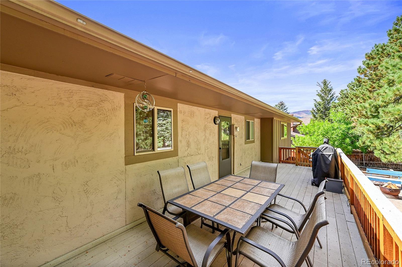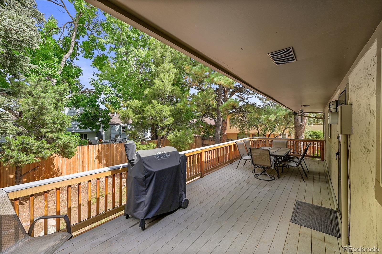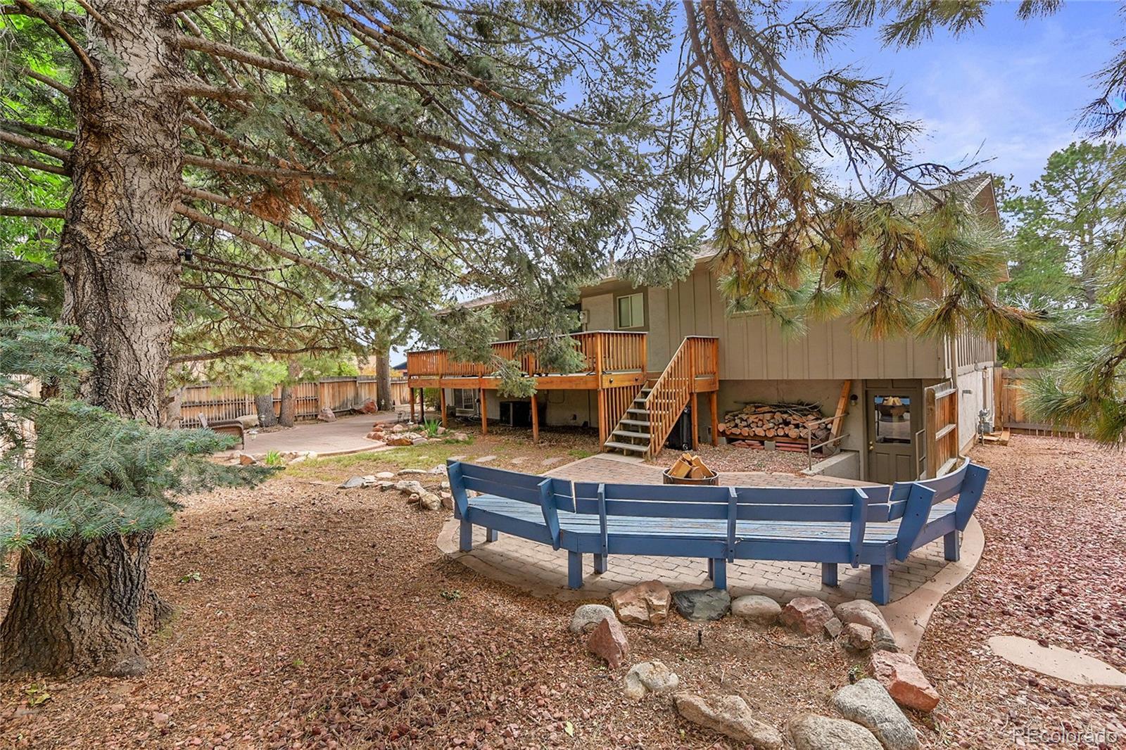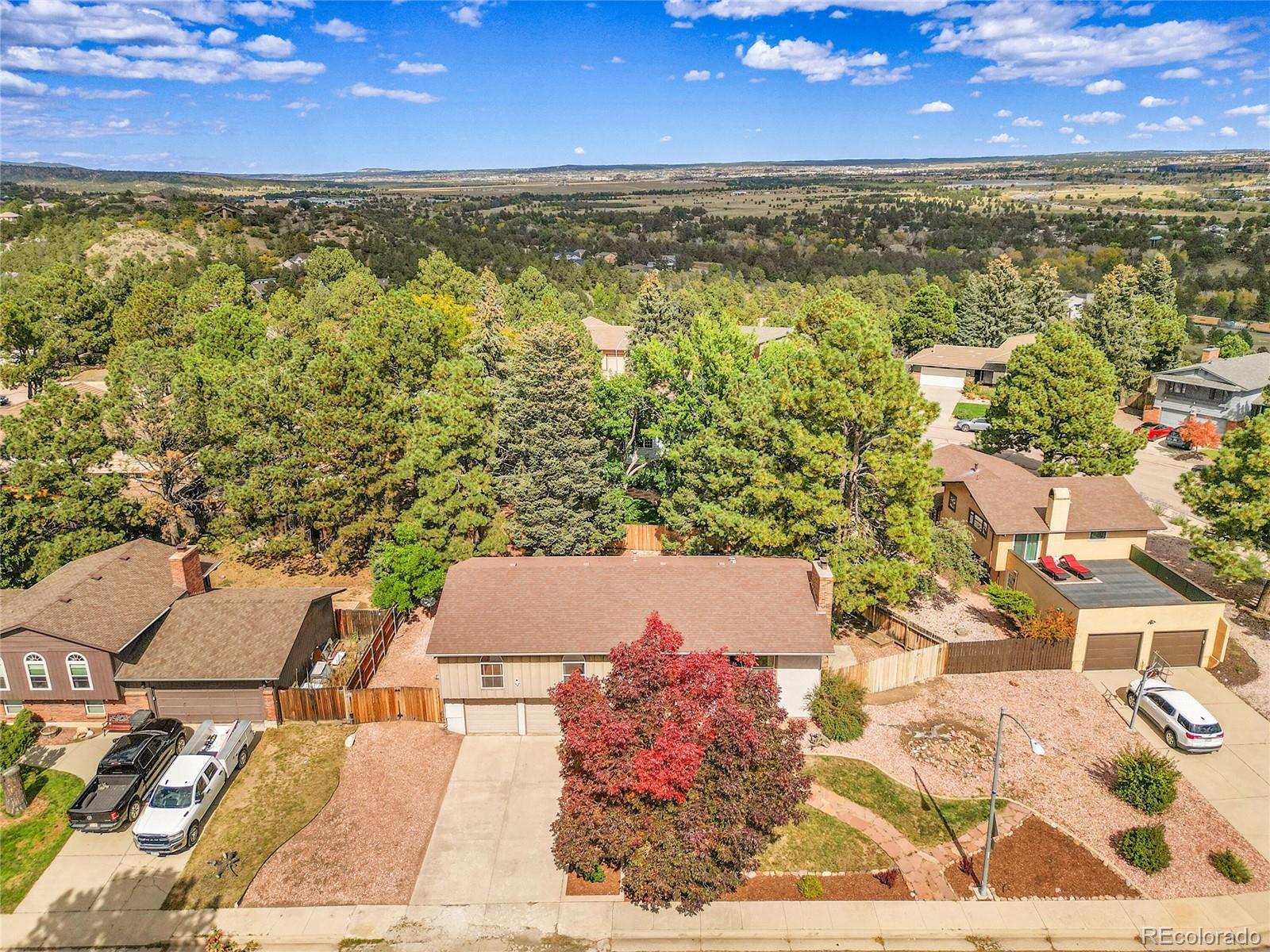 Welcome to this beautifully maintained Rockrimmon home, brimming with natural light and set on a .21-acre lot. Key updates include a new furnace in 2021, a 50-gallon water heater in 2019, a new roof in 2014, and an updated electrical panel in 2012—providing peace of mind for years to come - just minutes from schools, parks, and shopping. This house combines comfort, character, and thoughtful improvements. But the real value here is the location. In real estate, you can change a house, but you can't change its location. This home sits less than 10 minutes from several parks, including Discovery, Cottonwood Creek, Woodmen Valley, Erindale, Pulpit Rock, and Ute Valley Parks. It sits in the highly desired NW side of town, tucked into the foothills of the Rocky Mountain front range. Nestled among mature trees in a welcoming neighborhood, this is where quality, value, peace, and quiet come standard. Location is not just a feature; it's a lifestyle, and that is something you cannot substitute. Rich hardwood floors, arched doorways, and oversized windows create warmth throughout multiple living and family spaces. The freshly painted and updated kitchen offers tray ceilings, ample cabinetry, slab granite counters, custom tile backsplash, a pantry, and updated appliances, including a new refrigerator and range in 2024, and a new microwave in 2023. The kitchen opens to a large composite deck—shaded by pines, a fenced yard, two paverstone patios, and a tranquil rock waterfall with pond. The primary suite features a gas fireplace, sitting area, double closets, and an attached bath. A second bedroom enjoys a nearby full bath, while the spacious lower level boasts another fireplace-anchored family room, a private bedroom and a bath for guests. Outdoors, enjoy true Colorado living with multiple entertaining areas, a fire pit, and BBQ space. Additional highlights include central A/C, stucco exterior, vinyl windows, gated trailer parking, and an attached 2-car garage.