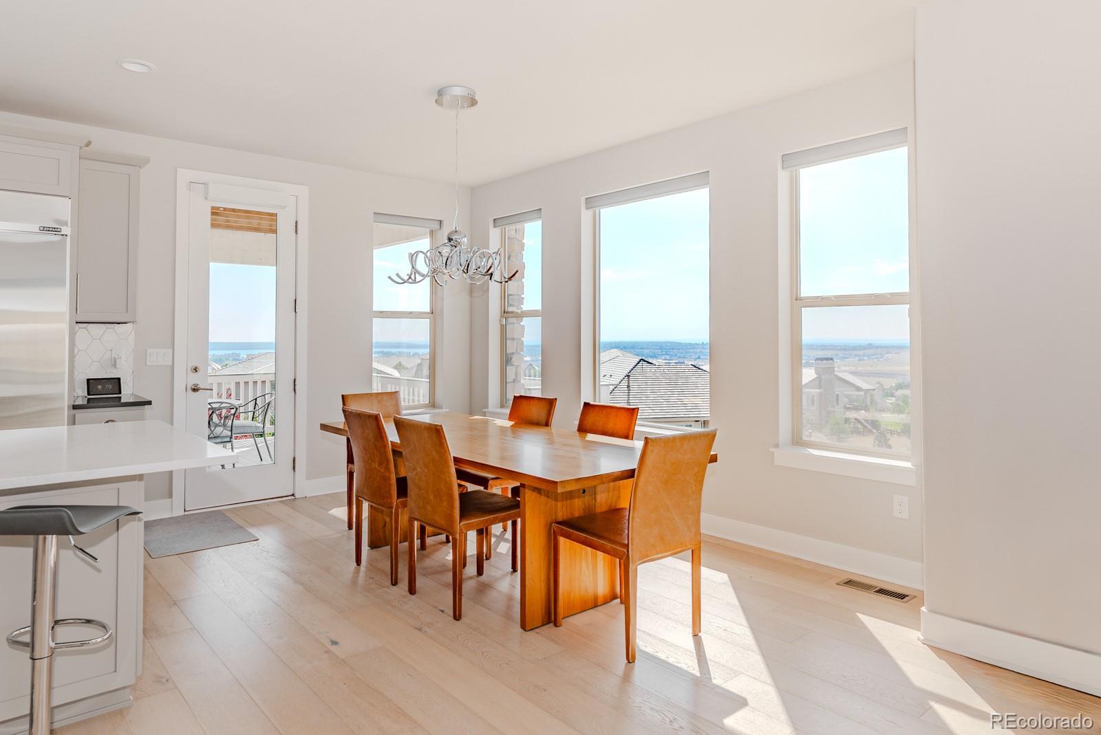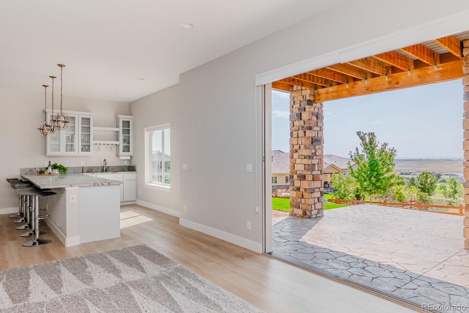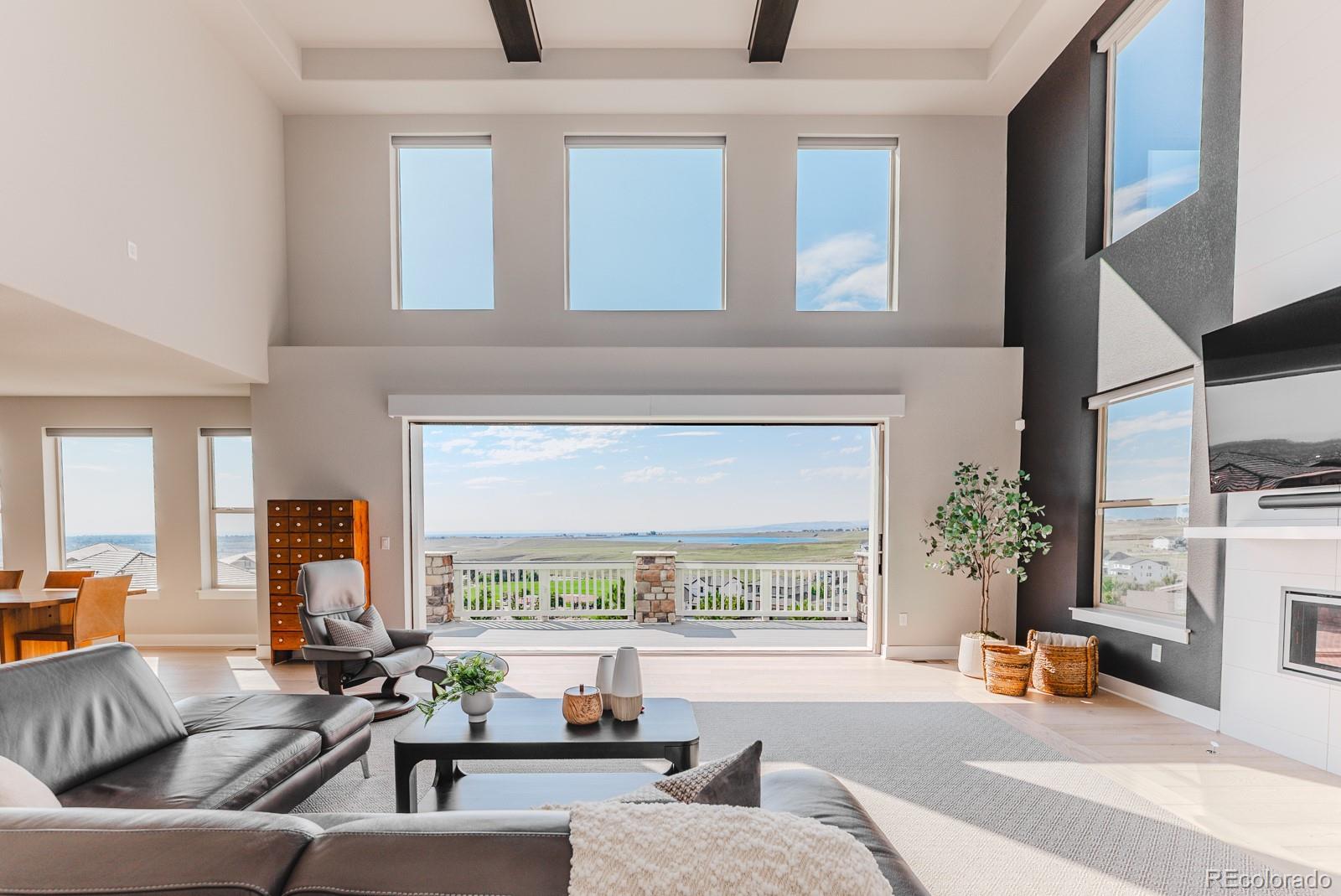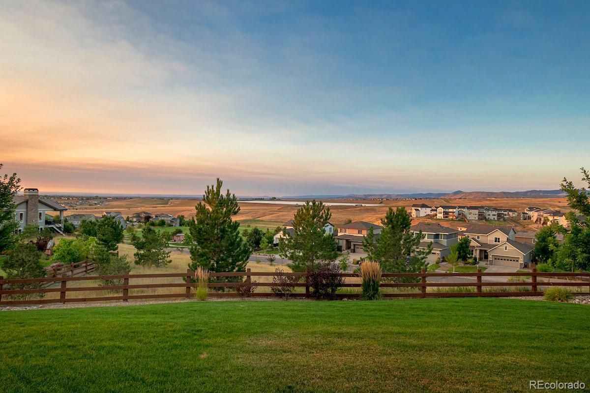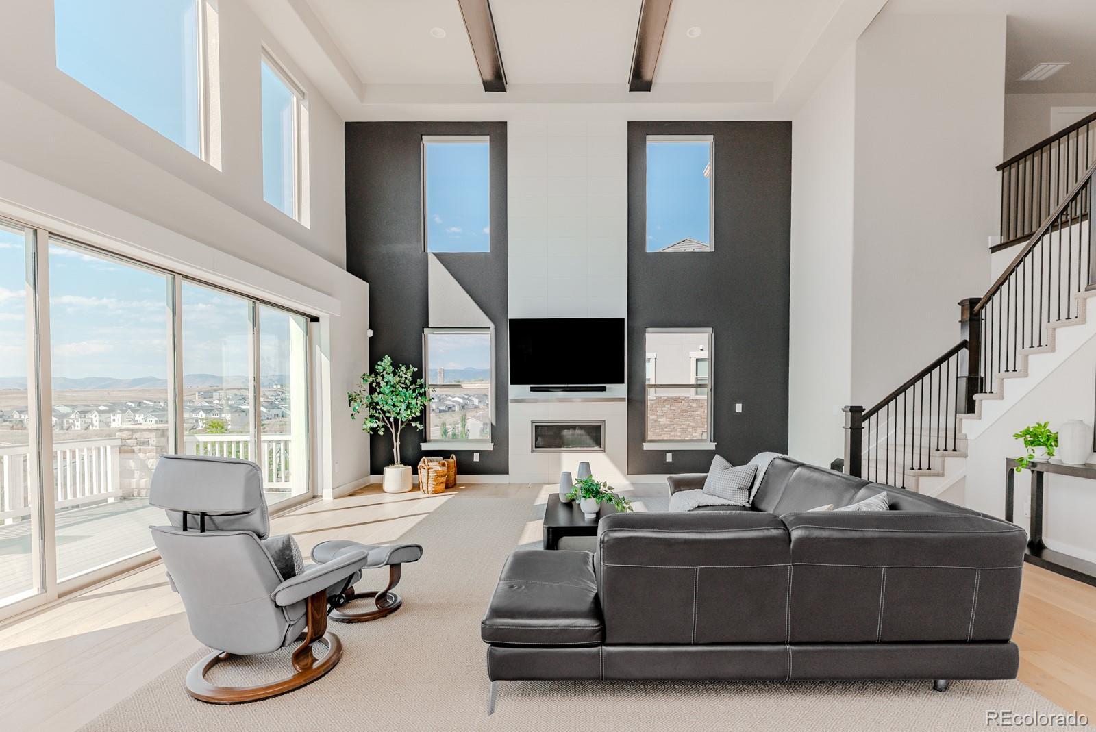 Where architecture meets the horizon, this extraordinary Candelas estate rises high above the neighborhood to frame Colorado’s most breathtaking views unveiling sweeping mountains, shimmering lakes and Downtown Denver’s twinkling lights. Claiming one of the area’s most coveted lots, this 5-bed, 7-bath residence spans over 6,500 sqft and enjoys rare privacy with open space at both the front and back. Nearly half an acre of grounds becomes an extension of daily life, with cascading decks and covered outdoor retreats designed to capture the signature sunsets painted across boundless skies. Inside, the great room opens with the sculptural presence of 20ft ceilings, intersecting beams and clerestory windows that flood the south facing space with ever-shifting light. A dramatic 16ft glass door disappears into the wall erasing the boundaries between indoors and out while a two story linear fireplace brings both texture and warmth setting the tone for gatherings both grand and intimate. At the heart of the home, the chef’s kitchen is both culinary stage and design statement. Elegant cabinetry and a broad quartz island create visual balance, while the professional JennAir appliance suite- defined by a commanding 48-inch six-burner range, three ovens, built-in refrigerator and stainless farm sink- delivers performance worthy of the most ambitious cook. Open sightlines connect seamlessly to formal and informal dining ensuring every meal is set against a backdrop of horizon views. The palatial primary suite becomes a private haven lifted high above the landscape, with walls of windows and a private balcony. The spa-inspired bath pairs marble, glass and light in a curated composition, uniting a freestanding tub with dual showers in a luminous wet room. Two additional ensuite bedrooms complete the upstairs while the finished walk-out basement extends the living experience with a full wet bar, media and game spaces, fitness area and a guest suite—all opening to the expansive yard.