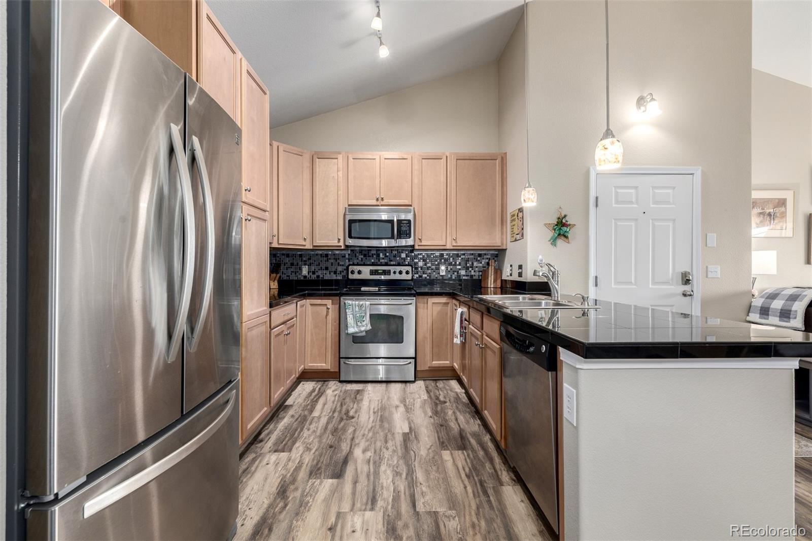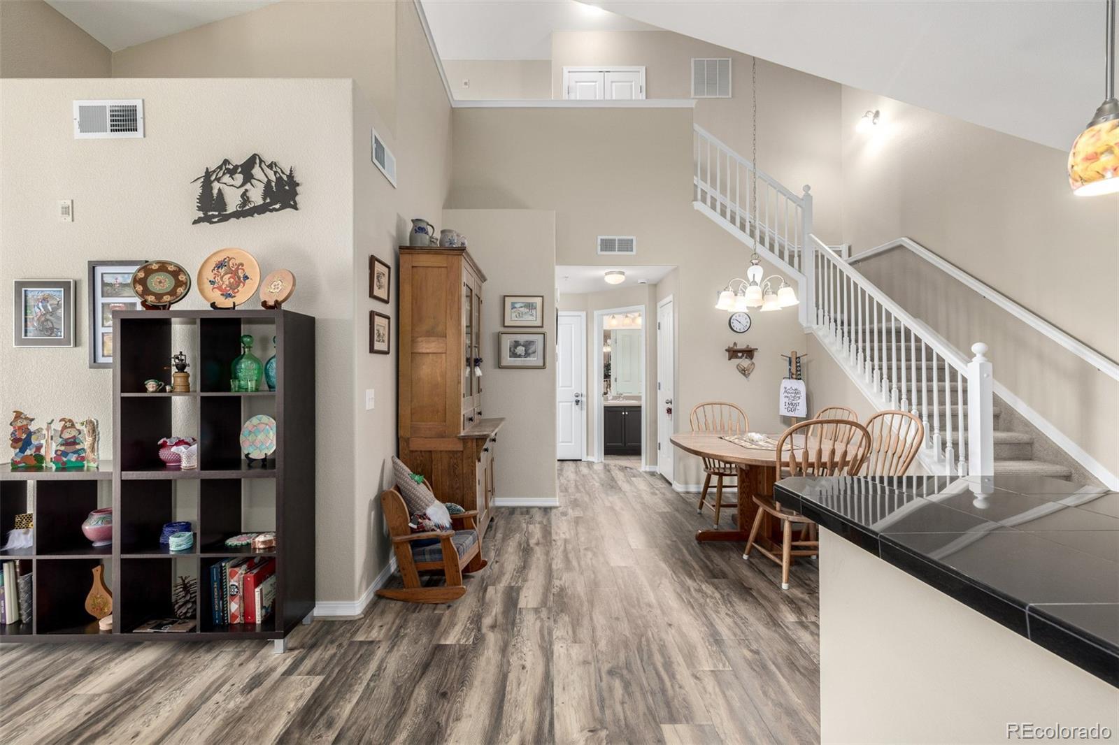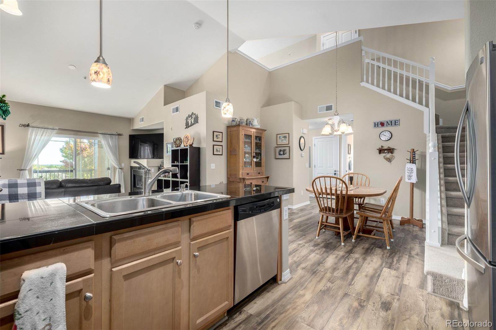 **Location,Location,Location** close proximity to grocery stores, retail and tons of restaurants. Impeccably maintained 2-bedroom condo featuring a spacious and versatile loft—ideal as a home office, exercise room, art studio, playroom, or even a 3rd bedroom. The beautifully updated kitchen offers stainless steel appliances, quartz countertops, mosaic tile backsplash, and plenty of storage, seamlessly flowing into the open-concept living and dining areas. Cozy up by the fireplace in the inviting living room or step outside to the east-facing balcony, the perfect spot for your morning coffee. Convenient main-floor laundry includes washer and dryer, making everyday living a breeze. Stylish, functional, and move-in ready! Near Chatfield reservoir, miles of trails, c-470 and I-70.