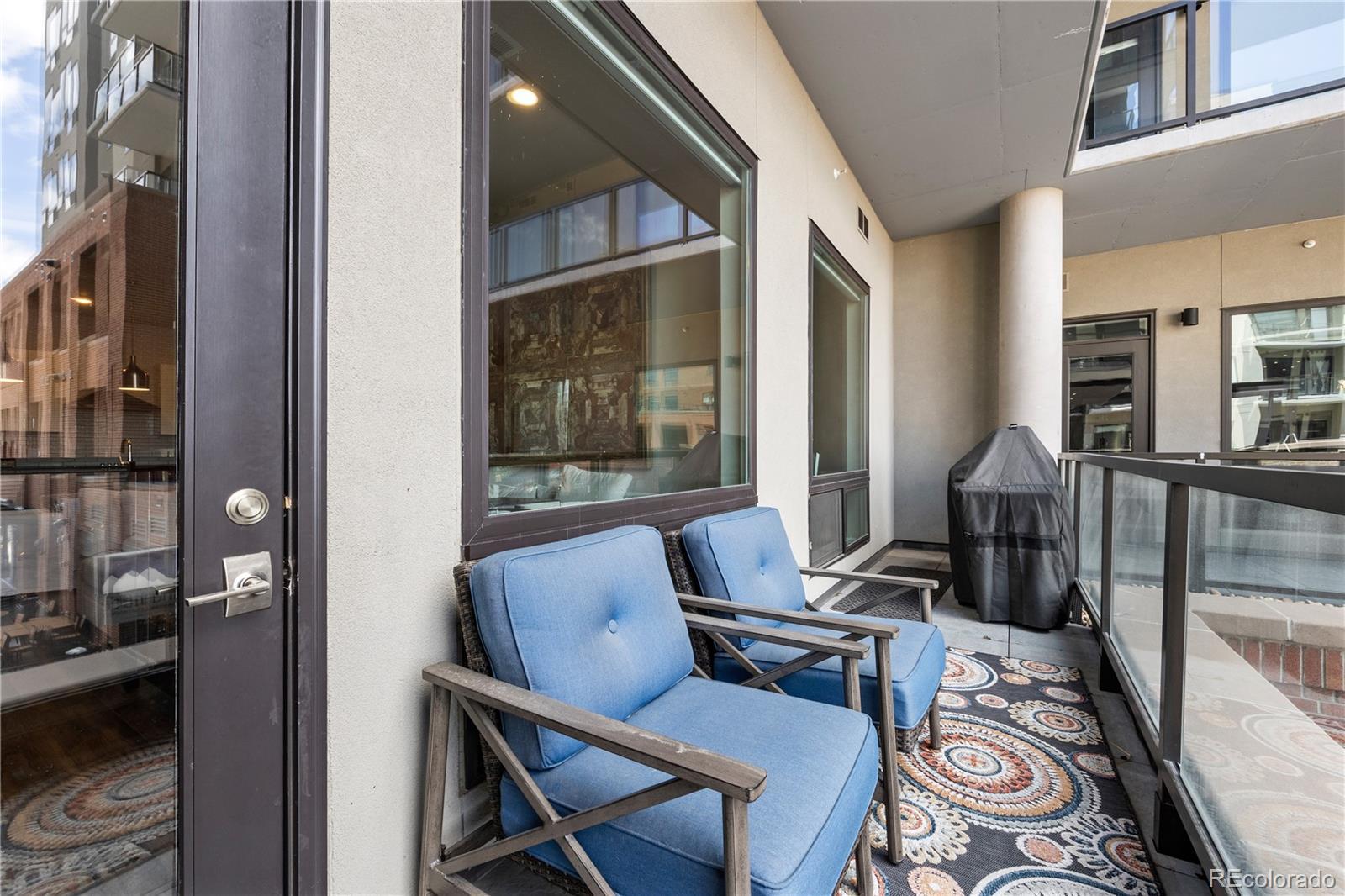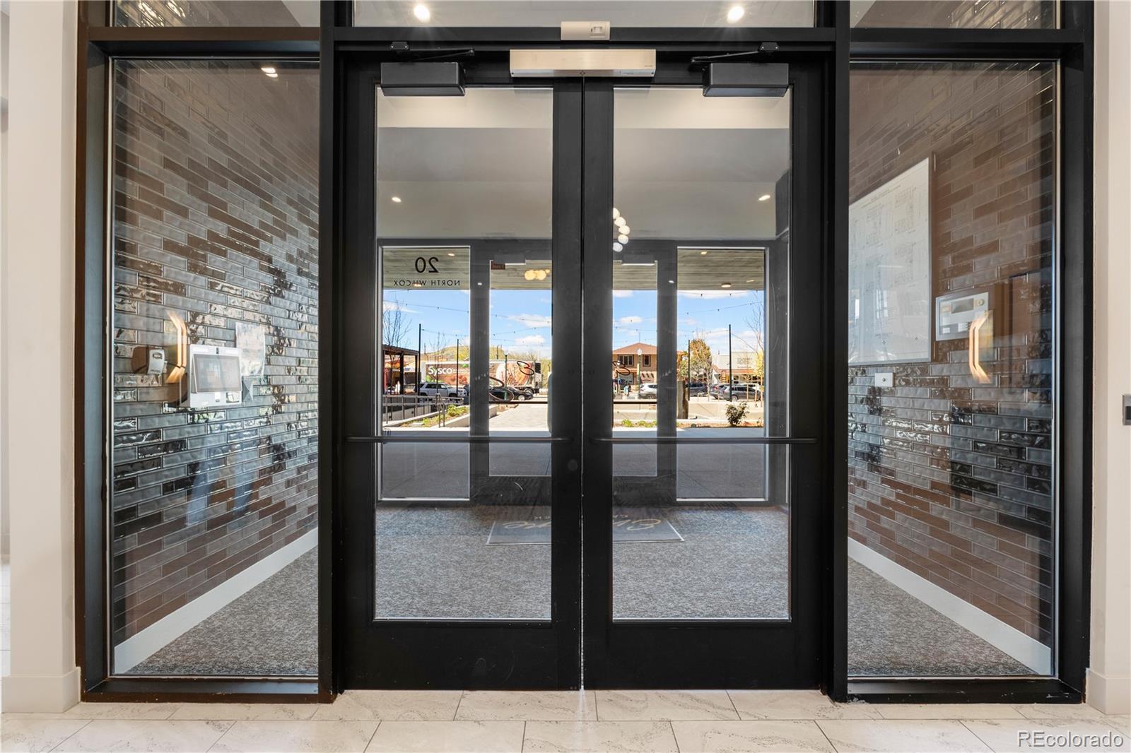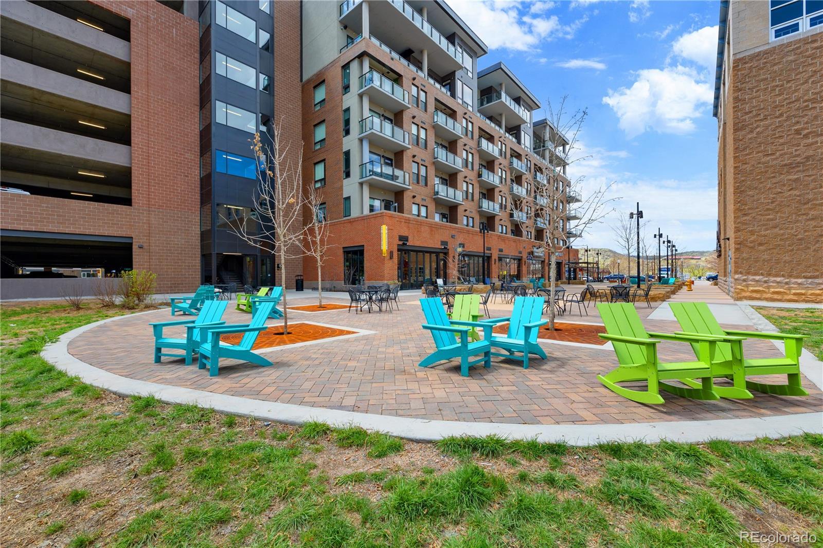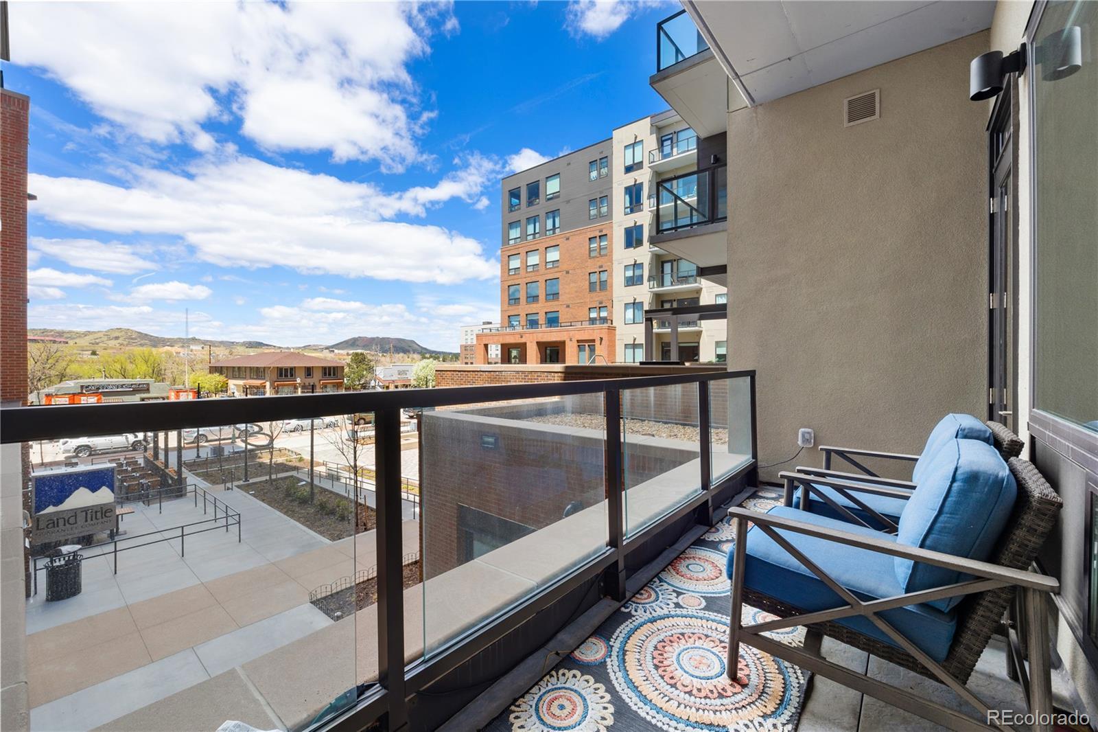 ** PRICED BELOW VALUE WITH HIGHLY MOTIVATED SELLER ** Imagine being steps to restaurants, shops, cafes, salons, and Festival Park -- where there are weekly events such as Farmer's Markets, Art Shows, and live music. A true downtown lifestyle in the highly-desirable Encore building, right in the heart of downtown Castle Rock. The newly-built condo building features a contemporary and sophisticated design and offers amazing amenities that cater to everyone. This 2nd floor unit has an ideal, west-facing direction overlooking the courtyard with scenic, hilltop views. Stylishly designed and beautifully updated with upgrades, the condo features premium, Hunter Douglas electronic blinds, Google smart home technology, newly installed laundry room storage, and includes two deeded parking spaces. The open floorplan has coveted 10-foot ceilings and is oriented around generously-sized windows with views. The stunning kitchen showcases slab quartz countertops, stainless-steel KitchenAid appliances, and a large center island with seating, plus the adjacent dining area is large enough for entertaining. The spacious primary bedroom features an ensuite luxury bathroom, equipped with frameless glass shower, quartz countertops, and double vanity. Living at the Encore is truly a lifestyle. The amenities include a well-equipped fitness center, clubhouse with kitchen and pool table, 25-person jacuzzi, lounge with golf simulator, dog park, pet spa, outdoor lounging areas with fire pits and grills, and sleek common areas for working or relaxing. Onsite security and key fob entry keeps the building safe and secure and the units have smart, keypad locks for easy access, and two deeded parking spaces come with the unit. The location offers an easy commute to Denver, DTC, or Colorado Springs and there’s so much to do right at your fingertips. This is the best of luxury and low-maintenance living. Don’t miss this opportunity!