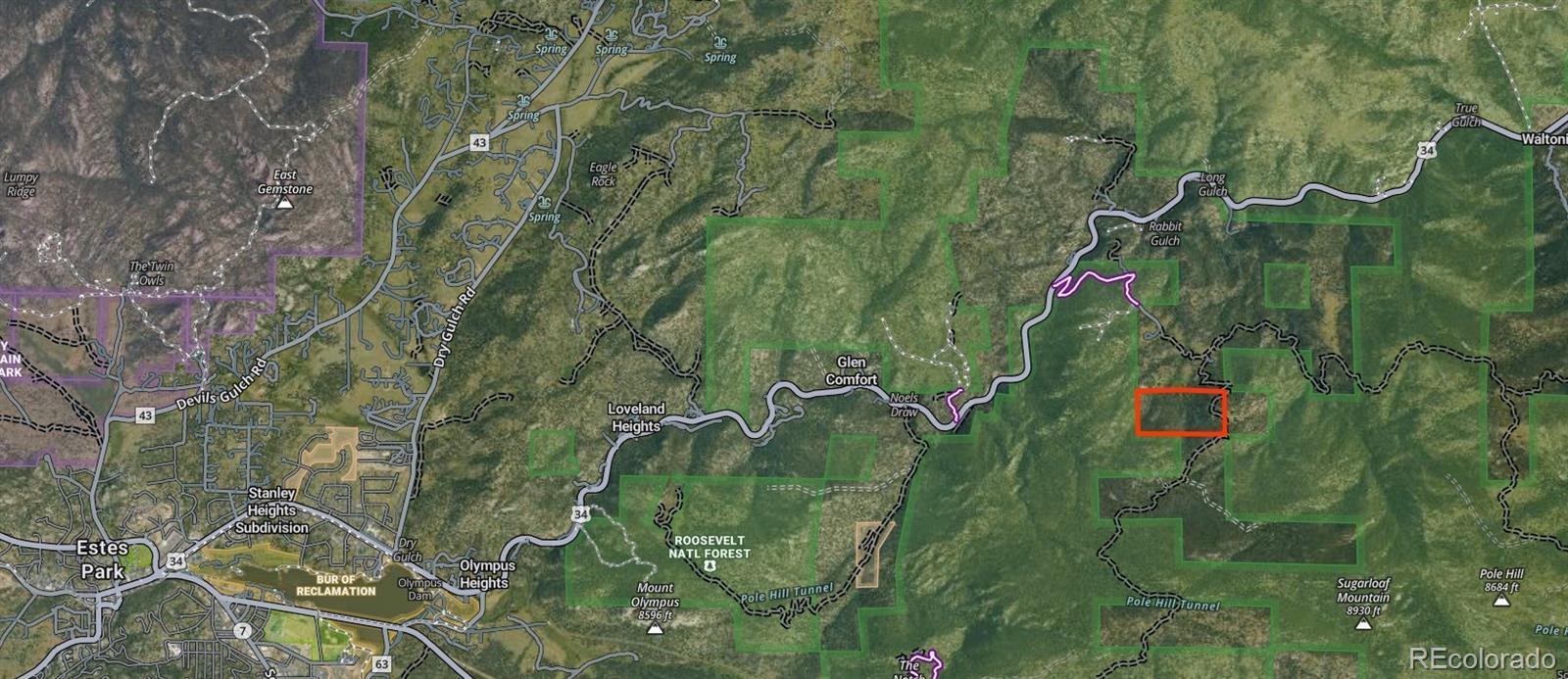 Just seven miles east of Estes Park, Colorado, this secluded 80-acre property offers the perfect off-grid mountain retreat. Accessed through a locked gate, it provides total privacy and direct access to hundreds of thousands of acres of Roosevelt National Forest—much of which is inaccessible to the general public. The land features a beautiful mix of terrain, from lush meadows and ponderosa pines at the base to lodgepole pines and scattered aspens at higher elevations, creating a rich and varied mountain landscape. Wildlife is abundant, with regular sightings of elk, mule deer, moose, black bear, turkeys, and grouse. The property lies within GMU 20, a highly desirable hunting unit where cow elk, deer, and bear tags can currently be drawn with no preference points. Turkey tags are available over-the-counter, and bull elk tags typically require 4 to 7 preference points for residents. Moose tags can also be drawn via a lottery system. Beyond hunting, the property serves as a prime basecamp for outdoor recreation. It borders expansive public lands ideal for hiking and backpacking, and the Big Thompson River—located at the entrance to the community—offers great fishing. Combined with proximity to Estes Park and Rocky Mountain National Park, the area provides limitless opportunities for adventure. Improvements on the property are minimal, including an old outhouse, a fire pit with a grill grate, and a few lawn chairs. However, multiple excellent building sites near the top of the property offer panoramic views and strong potential for a custom off-grid cabin or retreat. With no access to grid power, solar and propane are the most practical energy options. This rare and rugged property offers unmatched privacy, natural beauty, and recreational access—all just minutes from one of Colorado’s most iconic mountain towns. Note that this property doesn't have a permanent address, so the address number is the parcel number. 4-wheel drive clearance is recommended for access.