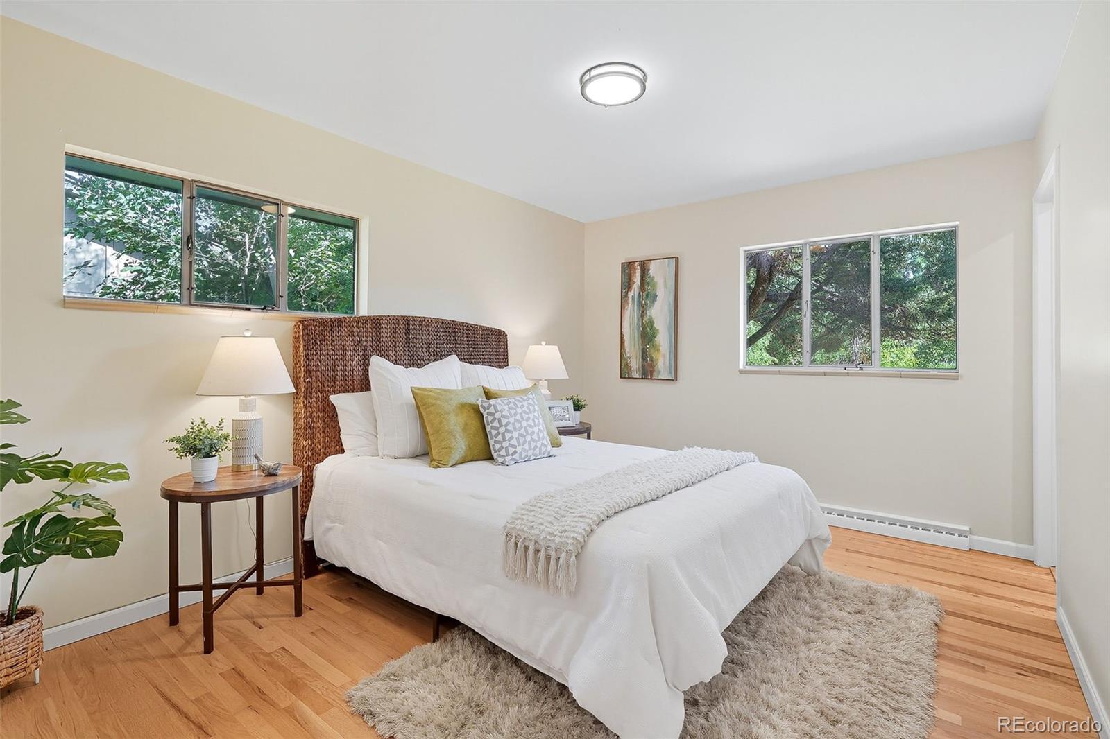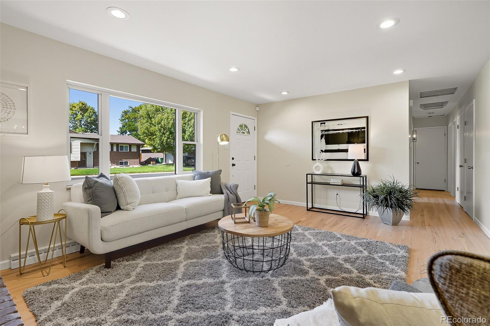 Welcome to timeless charm and modern comfort. This classic 1965 brick home offers the perfect blend of character, updates, and space—inside and out. With over 2,400 square feet of living area on a generous 9,550 sq. ft. lot, it’s designed for both everyday living and easy entertaining. Step inside to refinished real hardwood floors that flow seamlessly across the main level, glowing with a natural finish and complemented by fresh paint throughout. The spacious living areas feel warm and inviting, while the kitchen adds practicality with durable tile flooring and a clean, functional layout. Three comfortable bedrooms and two bathrooms complete the main floor, offering plenty of room for family or guests. Downstairs, the full basement nearly doubles your living space. Brand new carpet and fresh paint make it move-in ready, while a large rec room with a wood-burning fireplace and bar invites game nights, movie marathons, or casual gatherings. A fourth bedroom and a flexible bonus room make this level especially versatile—perfect for an office, hobby room, or gym. A convenient half bathroom and a generous laundry room (with washer and dryer included) add everyday ease, while extra storage keeps things organized. Comfort comes easy with central air conditioning plus a whole house attic fan for fresh breezes. Outside, enjoy Colorado evenings on the covered patio, overlooking a private, fully fenced backyard that’s ready for summer barbecues, pets, or simply relaxing. A 2-car attached garage adds even more convenience. This home is move-in ready with all the right updates—yet still carries the solid craftsmanship of its era. Whether you’re looking to settle into a neighborhood classic, host friends and family, or simply enjoy a spacious lot with room to breathe, this one checks all the boxes.