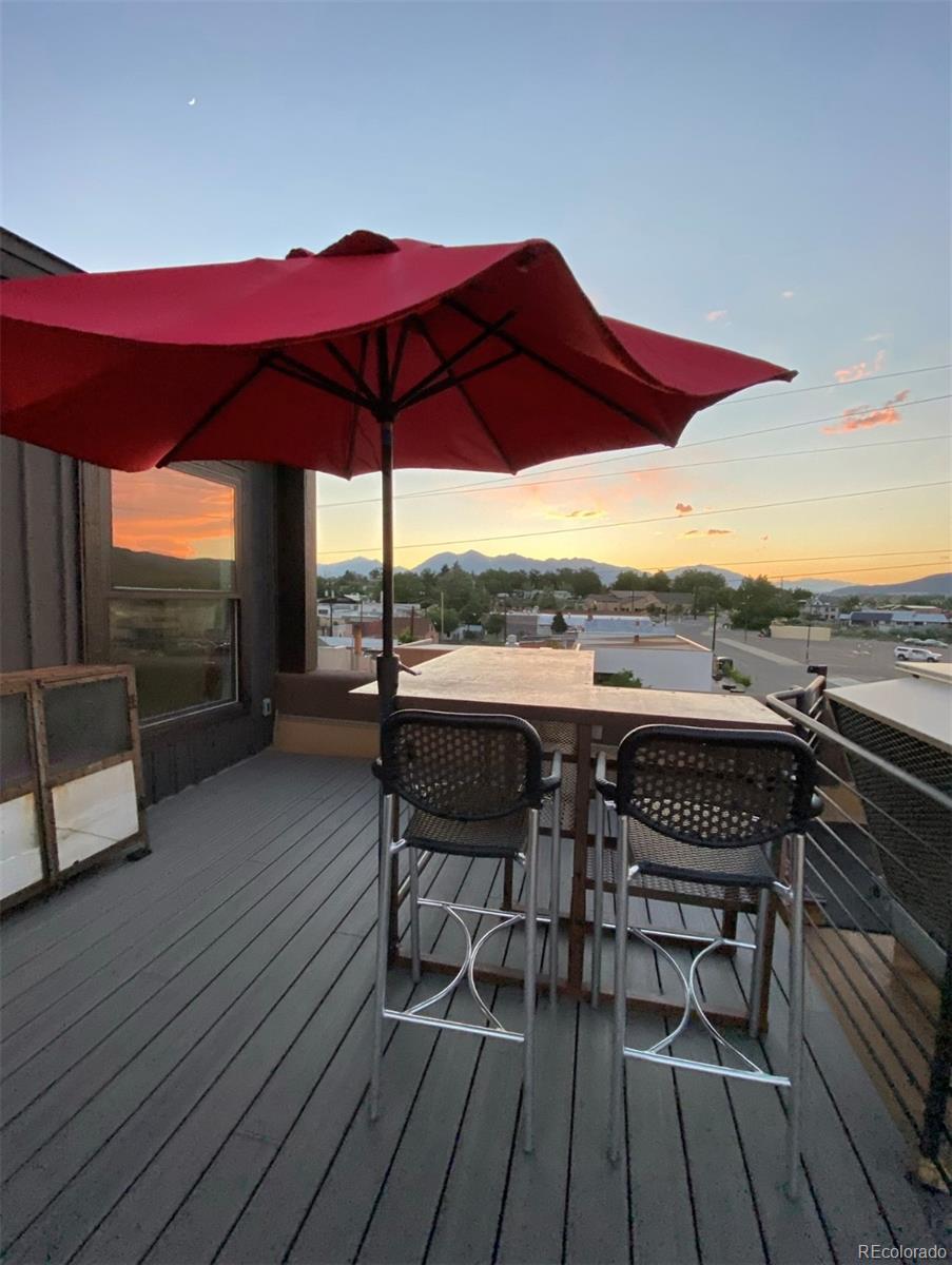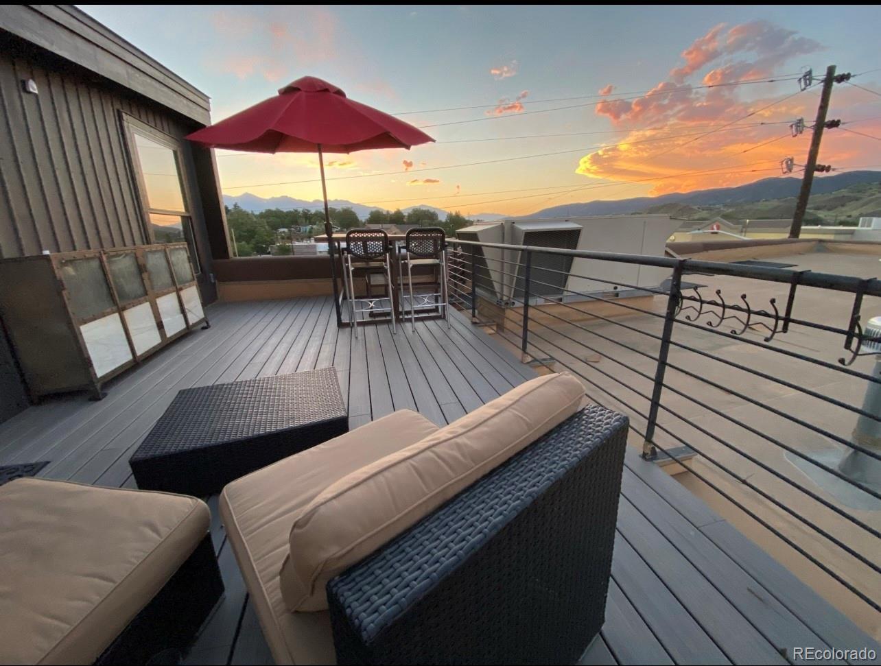 950 s/ft Penthouse Condo Studio For Rent. Available immediately. Flexible lease term (4 months to a year). This newly built Penthouse features a full kitchen, washer and dryer, full bath, air conditioning and large windows for views of the Sangre de Cristo & Collegiate Peak Mountain Ranges. This unit also offers a designated parking spot, private entrance, private rooftop deck, and is furnished (towels and linens not provided). Located downtown, steps away from downtown shopping and grocery stores. Across the street from Safeway and Natural Grocers, 1 block from the bike path, 1 block from downtown. Owner pays all utilities other than wifi. No pets please.
