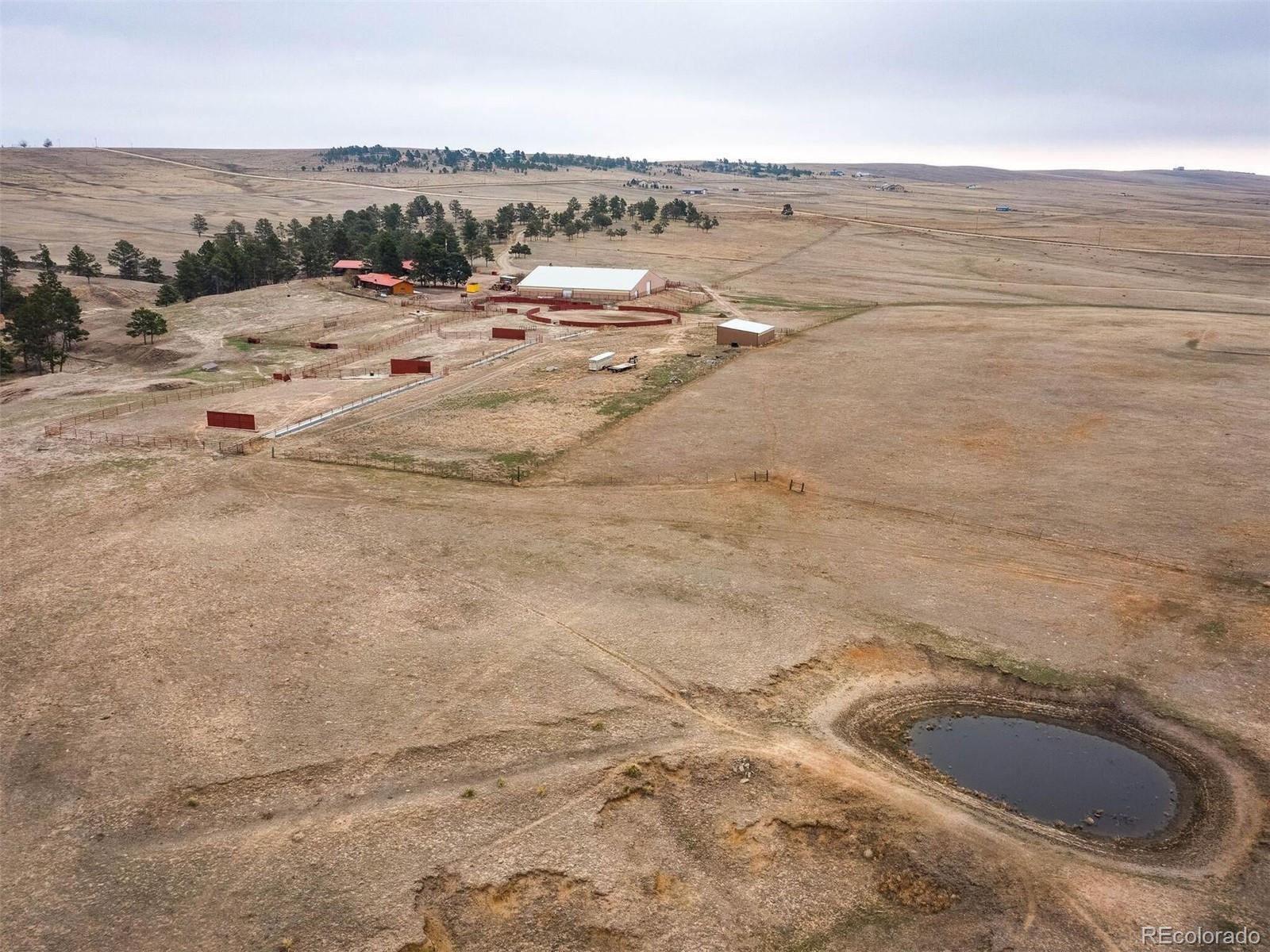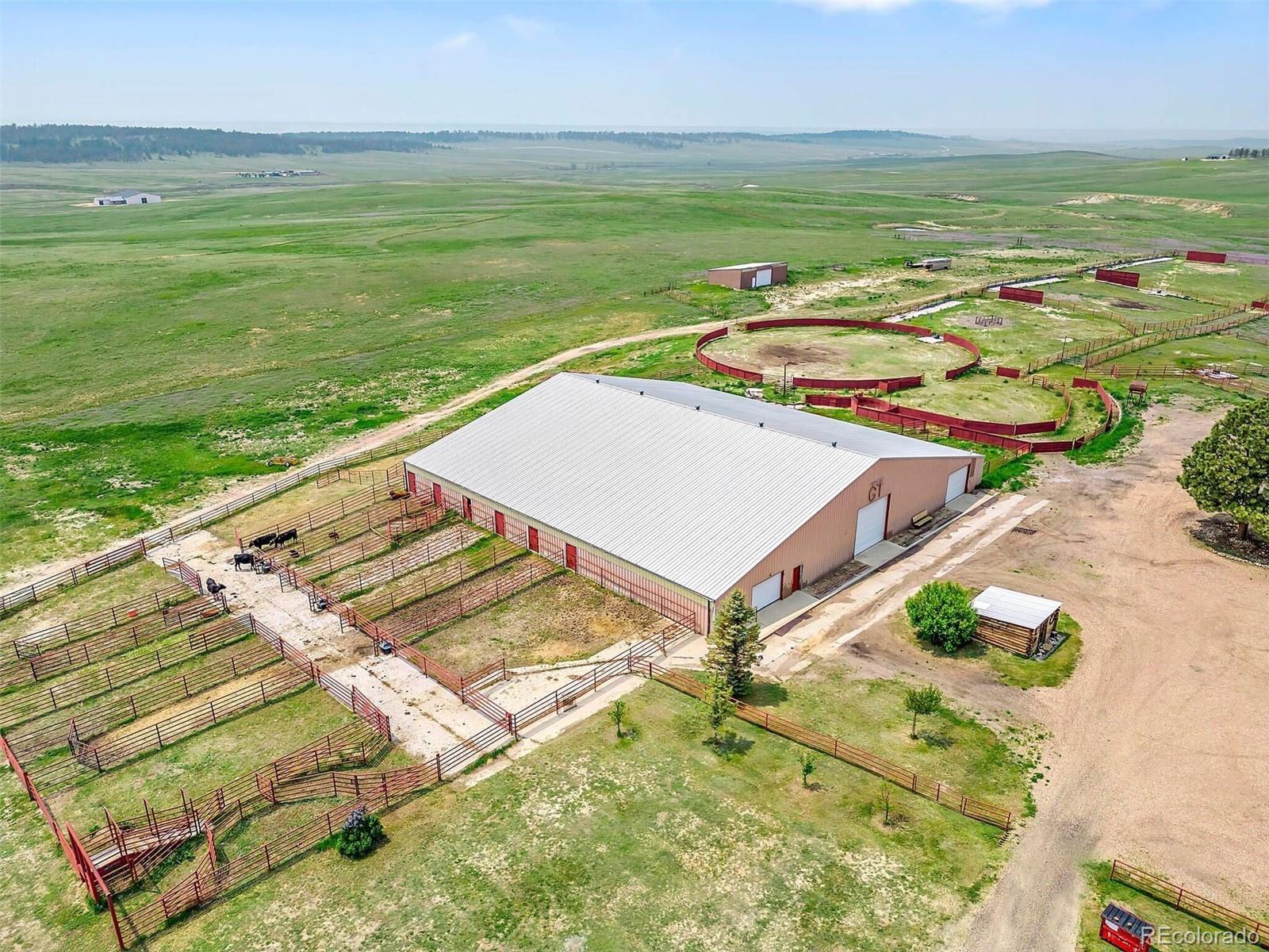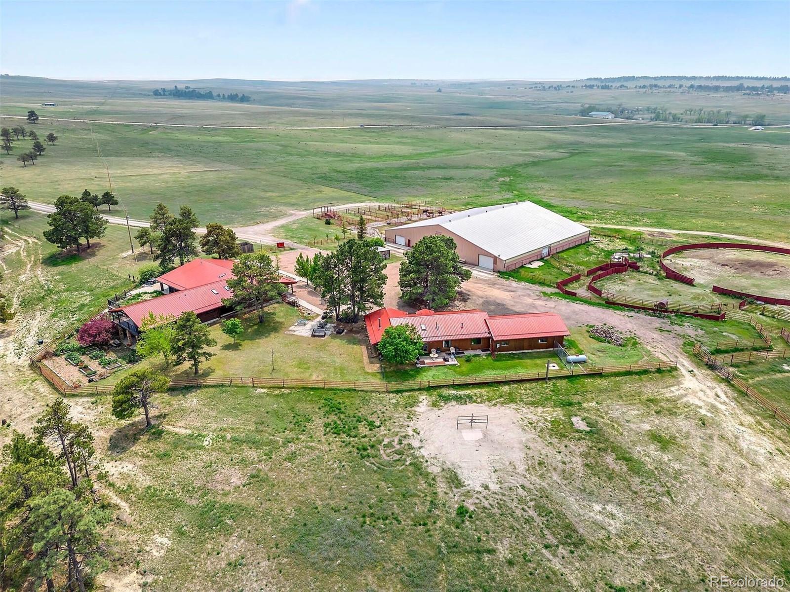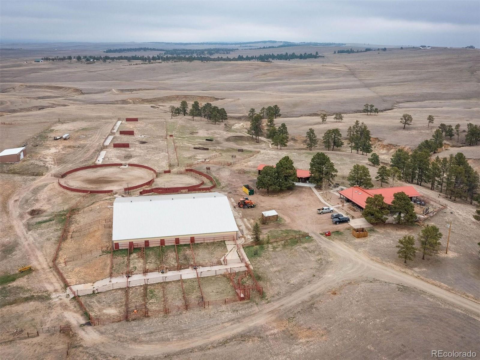 This amazing equestrian estate features a custom show stable with attached 16,000 square foot indoor arena, eight horse stalls, stadium seating for 60-80 people, tack room and large shop. This immaculate horse complex is on 321.86 picturesque acres that includes three 100-acre pastures with water facilities. There are also three ponds sprinkled in the rolling hills with incredible views of the Rocky Mountain Front Range, including Pikes Peak; and eleven corrals with open alleys to the arena and a large round pen for horse training. All pens and corrals are made with pipe fencing, ideal for horses. The large 4500 sq. ft. log home is perfect for family gatherings or entertaining. While in the kitchen you can enjoy the view of the horses grazing in their paddocks. This ranch-style home features a generous living room with wood burning stove, three bedrooms, four baths, a huge home office, formal dining room, walk-out basement with family room, bar and plenty of storage. There is a second ranch-style home with 1,800 sq. ft., perfect for your ranch manager, guest or a sweet little rental. You can ride any time in your top-of-the-line show stable with attached indoor arena, or outside in the dry creek bed just steps away, also an ideal shooting range. Eight stalls line the aisles, which give flexibility to use facility for boarding, training, or private use. The heated shop means you can work on your equipment out of the weather. Whether you're in the house, stable, or the paddocks, take in the views of the surrounding fields or distant mountains. Convenient drive to Kiowa, Elizabeth or Parker and only 1 hour to DIA. Significant Water Rights to the Denver, Arapahoe and Laramie Fox Hill aquifers are included and all water has been adjudicated. There is a total of 359.4 acre feet of water that will transfer with the property. The State Water Board Authority has determined that the annual production rate will last more than 100 years.