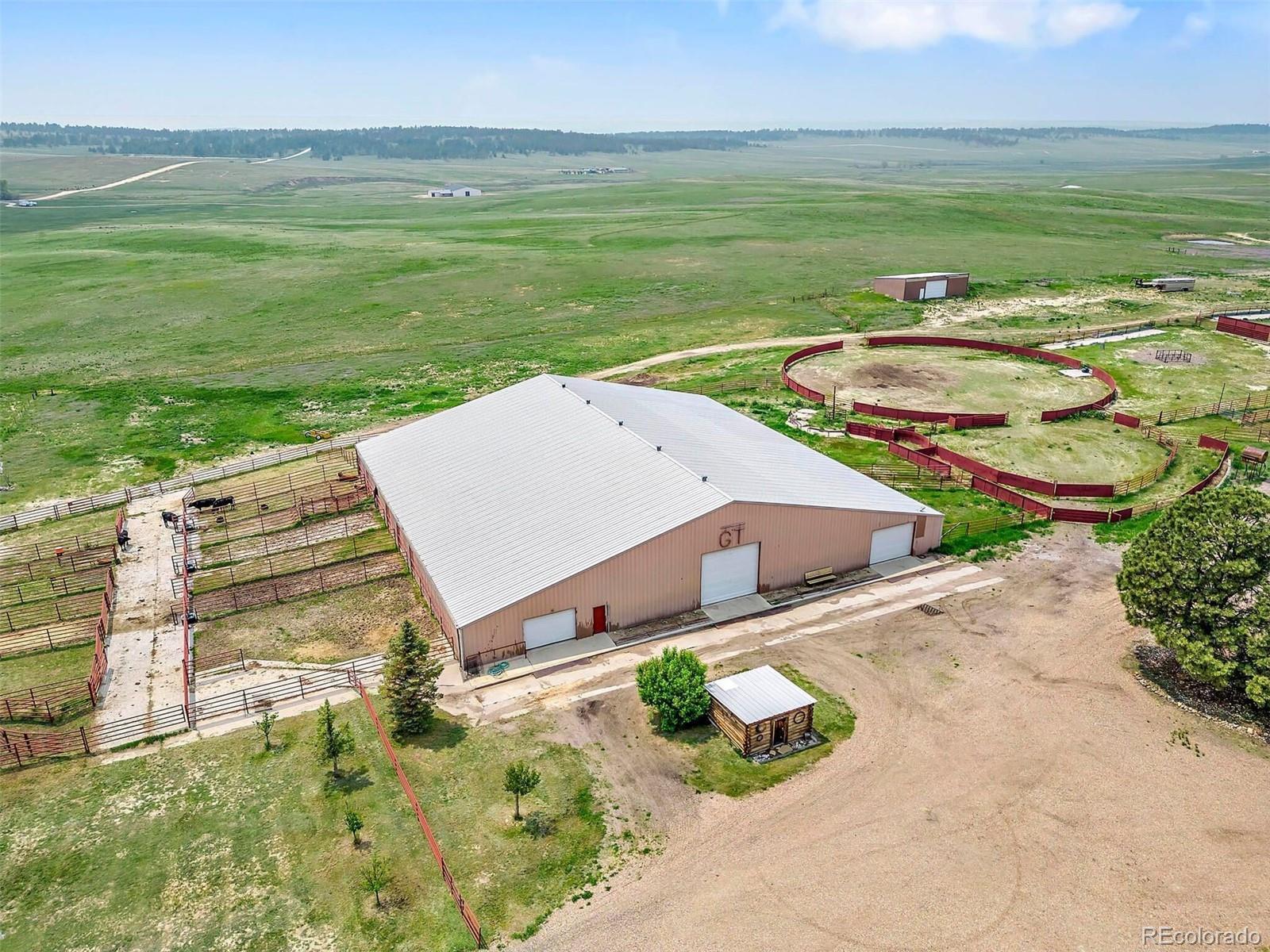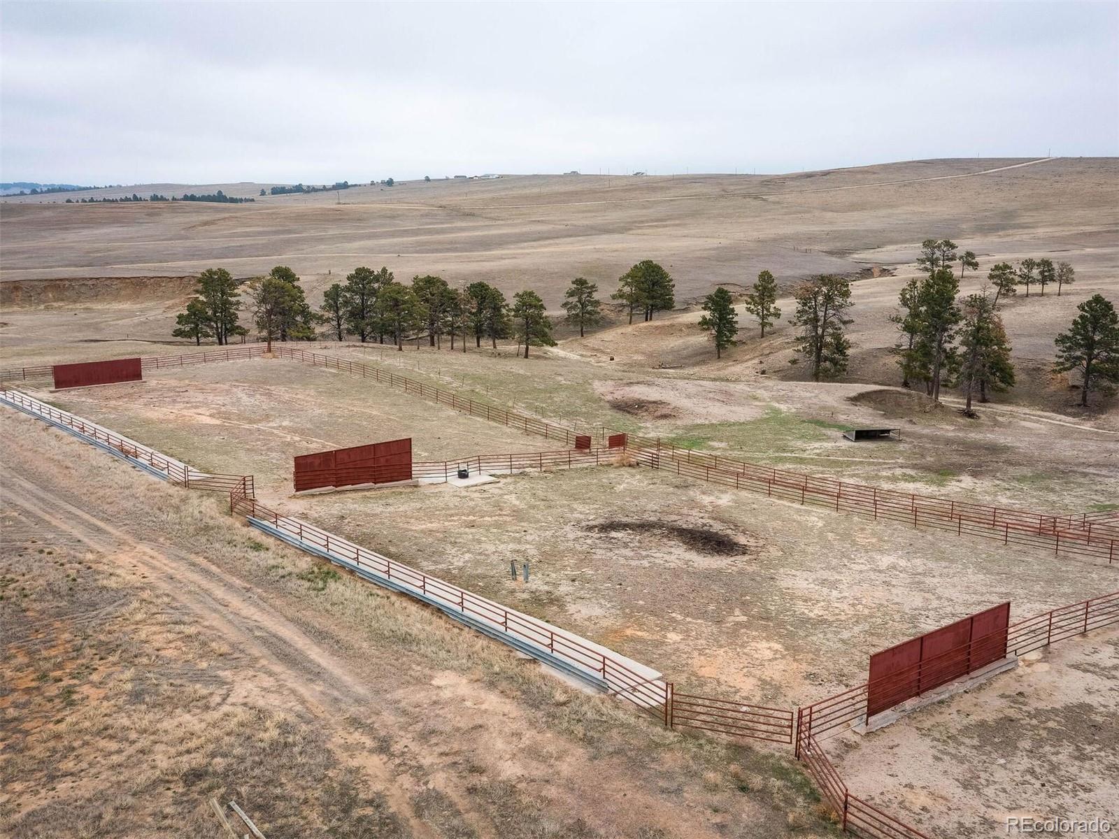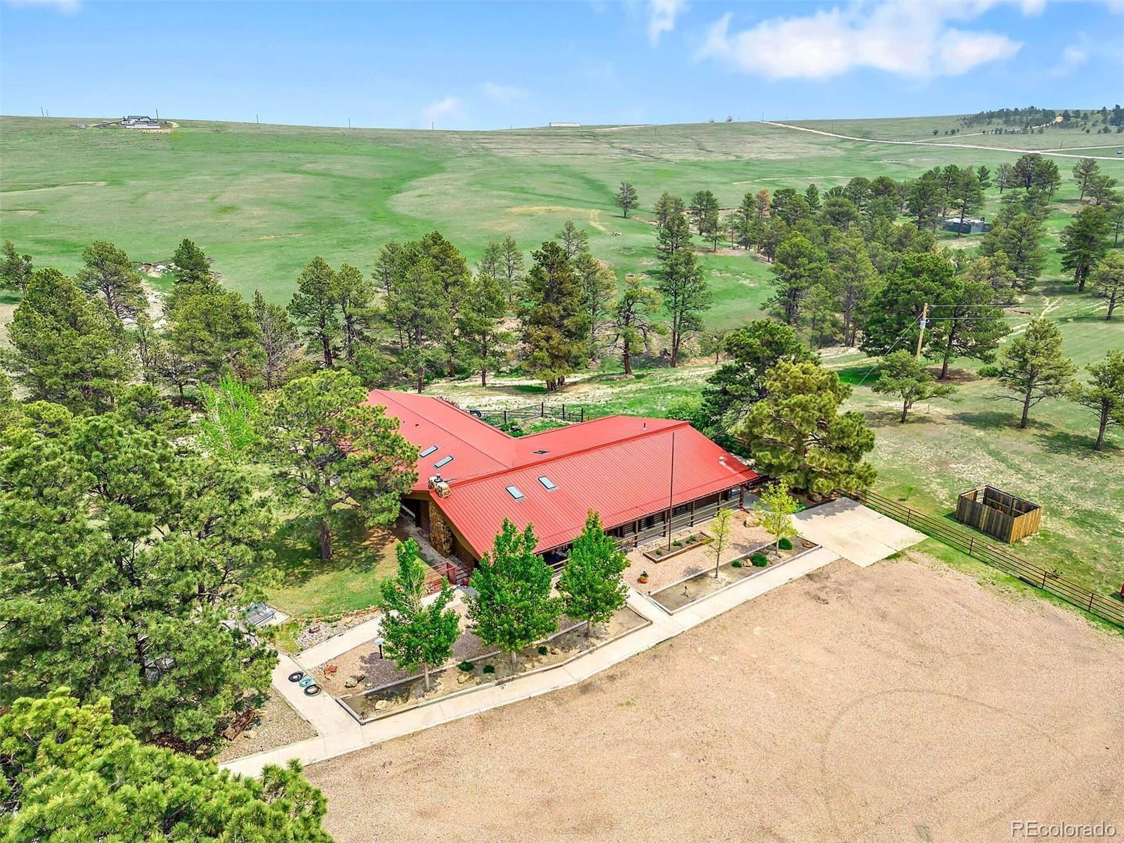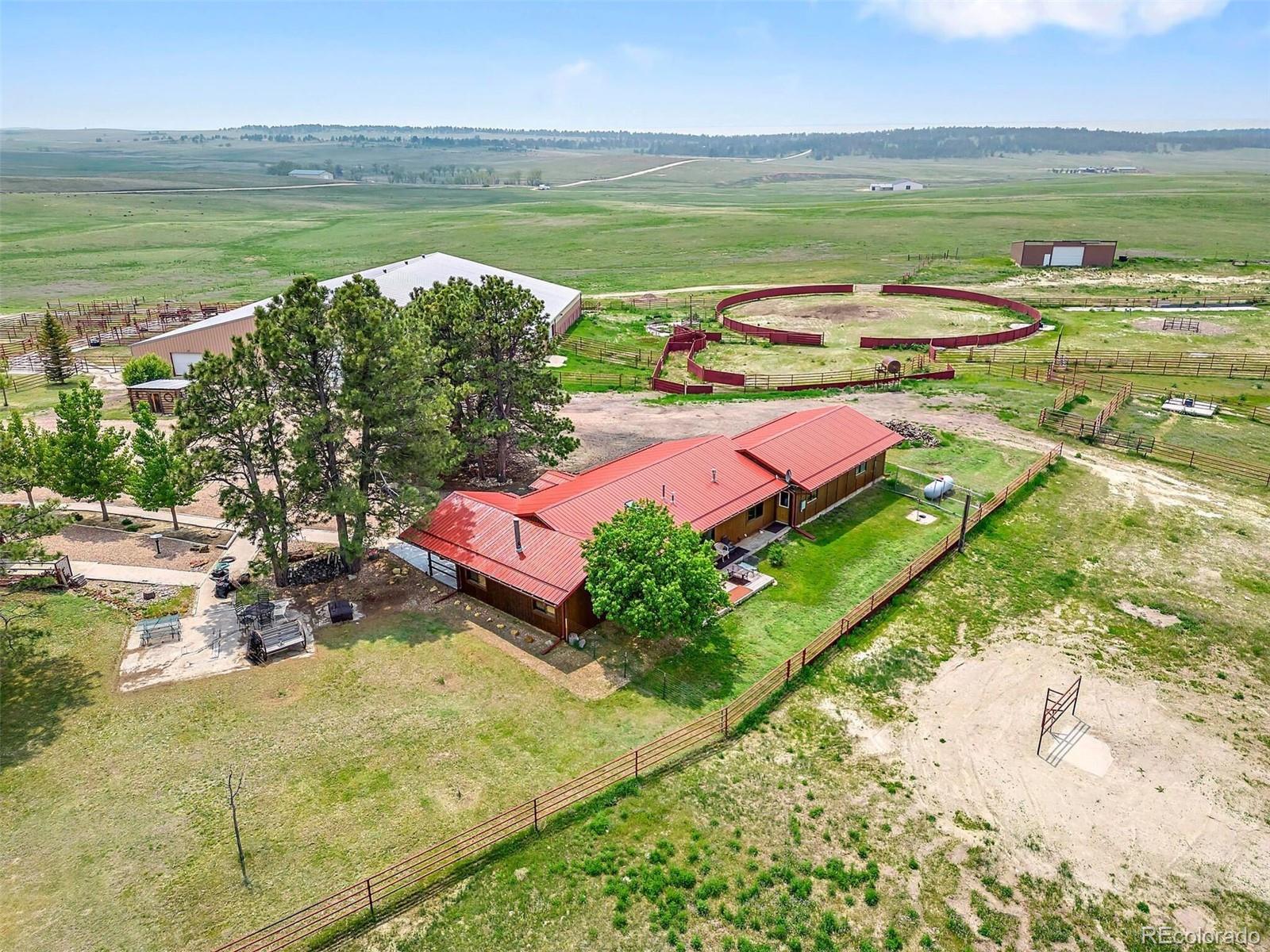 This amazing equestrian estate features a custom show stable with attached 16,000 square foot indoor arena, eight horse stalls, stadium seating for 60-80 people, tack room and large shop. This immaculate horse complex is on 321.86 picturesque acres that includes three 100-acre pastures with water facilities. There are also three ponds sprinkled in the rolling hills with incredible views of the Rocky Mountain Front Range, including Pikes Peak; and eleven corrals with open alleys to the arena and a large round pen for horse training. All pens and corrals are made with pipe fencing, ideal for horses. The large 4500 sq. ft. log home is perfect for family gatherings or entertaining. While in the kitchen you can enjoy the view of the horses grazing in their paddocks. This ranch-style home features a generous living room with wood burning stove, three bedrooms, four baths, a huge home office, formal dining room, walk-out basement with family room, bar and plenty of storage. There is a second ranch-style home with 1,800 sq. ft., perfect for your ranch manager, guest or a sweet little rental. You can ride any time in your top-of-the-line show stable with attached indoor arena, or outside in the dry creek bed just steps away, also an ideal shooting range. Eight stalls line the aisles, which give flexibility to use facility for boarding, training, or private use. The heated shop means you can work on your equipment out of the weather. Whether you're in the house, stable, or the paddocks, take in the views of the surrounding fields or distant mountains. Convenient drive to Kiowa, Elizabeth or Parker and only 1 hour to DIA. Significant Water Rights to the Denver, Arapahoe and Laramie Fox Hill aquifers are included and all water has been adjudicated. There is a total of 359.4 acre feet of water that will transfer with the property. The State Water Board Authority has determined that the annual production rate will last more than 100 years.