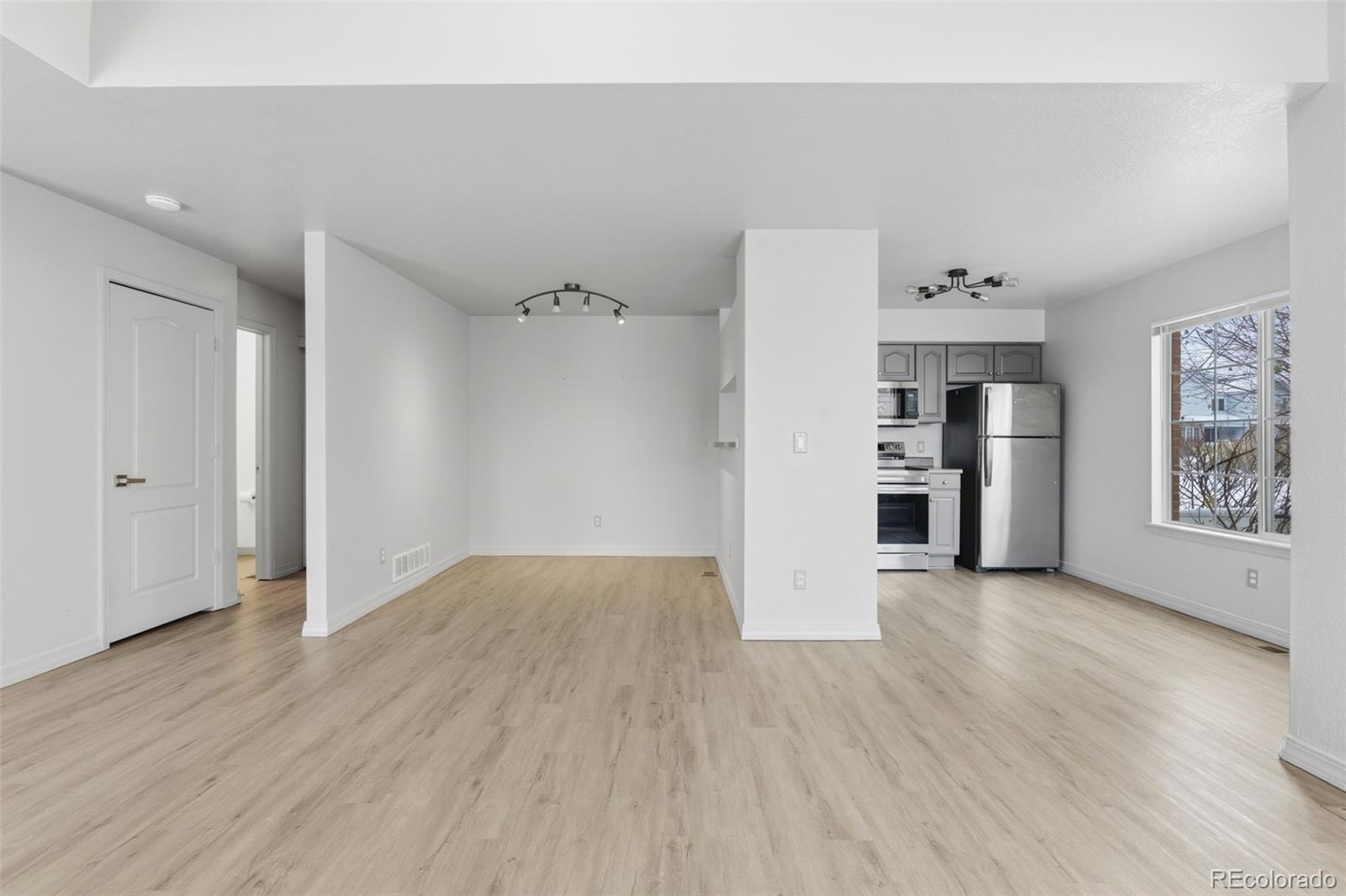 Tucked quietly at the back of the community on a private road, this beautifully updated townhome offers the perfect blend of low-maintenance living, privacy, and convenience in the heart of Parker. Inside, the open and airy floor plan is filled with natural light and enhanced by vaulted ceilings, fresh paint, updated flooring, and a cozy gas fireplace that anchors the main living space. The kitchen has been refreshed with new stainless steel appliances and flows seamlessly into the dining and living areas, ideal for everyday living or hosting friends. The upper level features two spacious bedrooms, including a generous primary suite with a large closet and shared en-suite bath. Downstairs, the fully finished basement adds valuable flexibility with an additional large living space and in-unit laundry—perfect for a home office, workout area, or second lounge. Step outside to a fenced private patio backing to open green space, offering rare privacy and a great setup for pets, outdoor dining, or quiet mornings. The home also includes a detached one-car garage and recent major upgrades with a newly replaced furnace and A/C. The HOA covers exterior and structural maintenance, insurance, water, trash, snow removal, and grounds—making this an ideal option for buyers seeking truly low-maintenance living. Enjoy easy access to E-470 and I-25 for commuting, walkability to shopping, and direct access to the Cherry Creek Trail, all while being just minutes from downtown Parker. Private, move-in ready, and priced to sell—this one checks all the boxes.