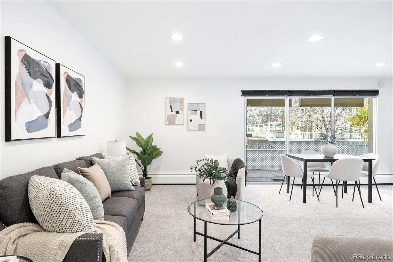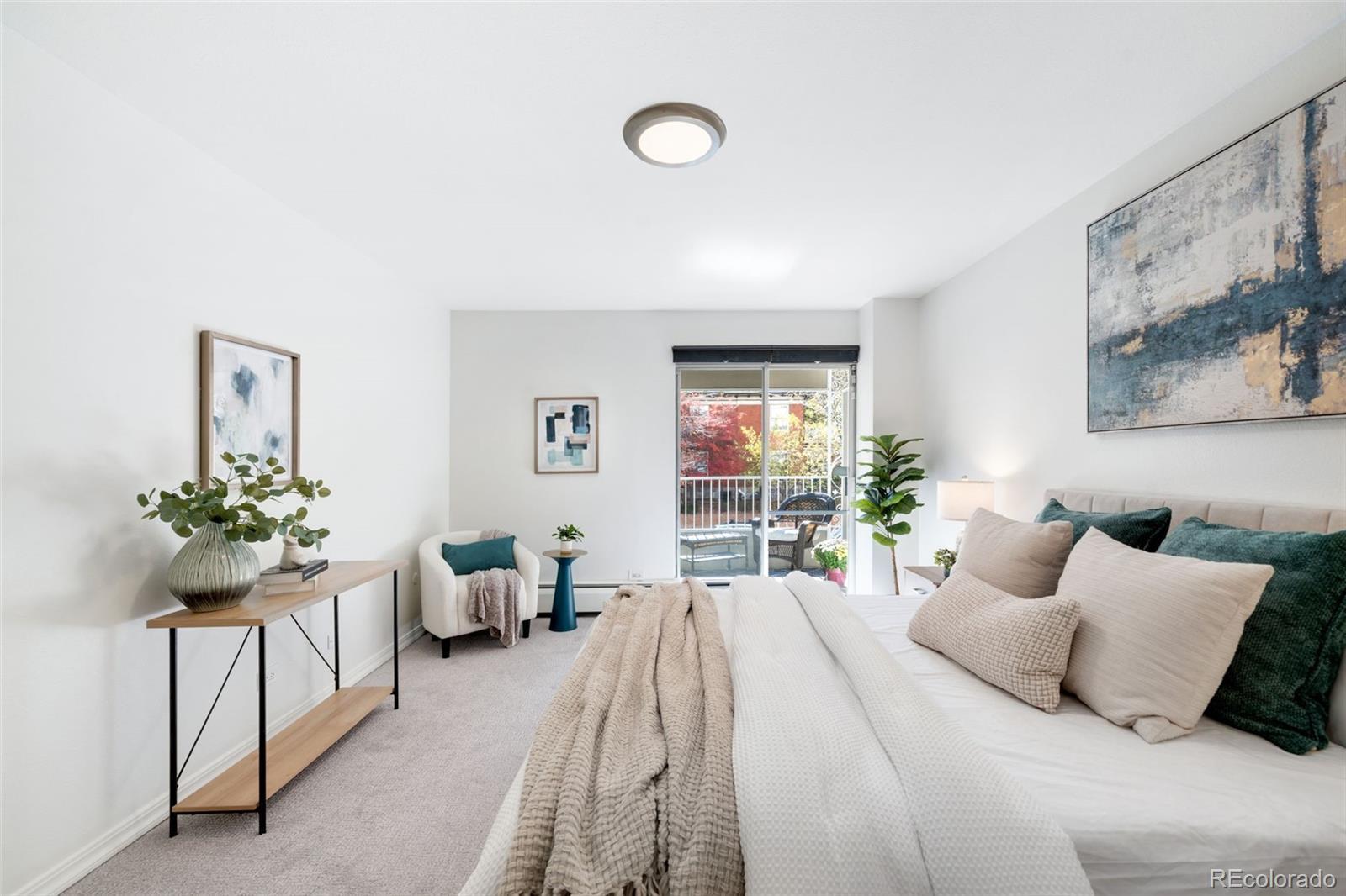 NEW PRICE! Nestled beside the iconic Cheesman Park in Denver, this lovely corner-unit condo features two bedrooms, two bathrooms and two outdoor spaces. With fresh paint and new carpet, this condo offers an inviting open floor plan with a modern kitchen that seamlessly flows into the spacious living and dining areas, complemented by an oversized, expansive covered patio perfect for relaxation or entertaining. The primary suite is a true retreat with dual walk-in closets, an updated en-suite bathroom, and a private southeast-facing balcony ideal for enjoying morning sunrises over Cheesman Park. This unit also includes a covered parking space (space #75) and access to a private storage closet. Residents can enjoy a suite of building amenities, including an indoor swimming pool, fitness center, community room with a kitchenette for entertaining, and a rentable guest suite for visitors. Experience the best of Denver living in this charming, centrally located, lock-and-leave residence.