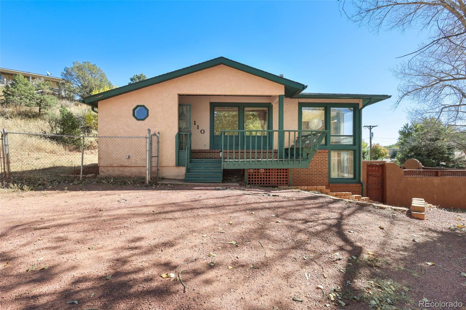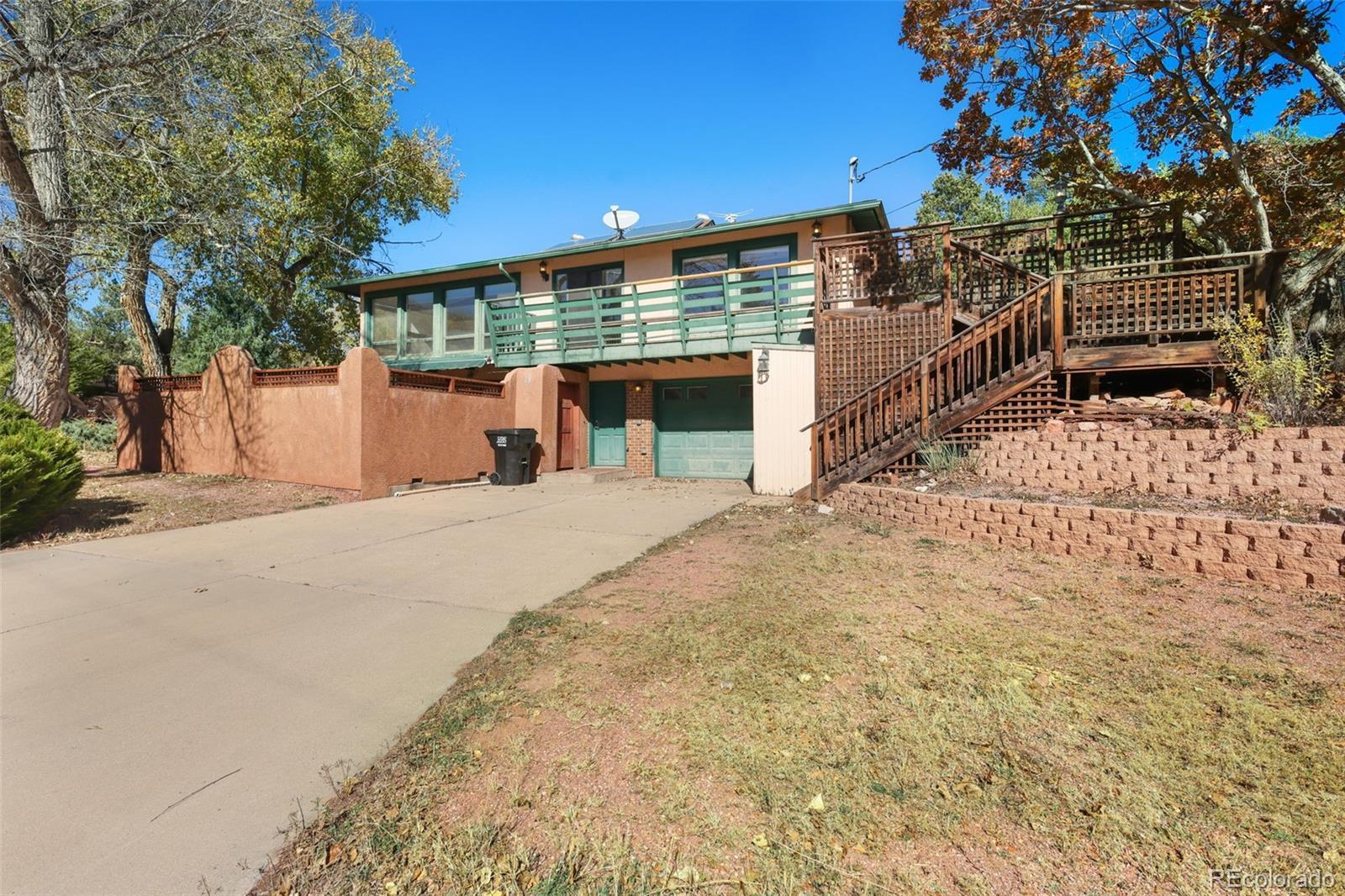 Unbeatable Location Near Garden of the Gods! Just a short walk from the stunning Garden of the Gods—with its picnic areas, hiking trails, and breathtaking scenery—this Manitou Springs home offers a truly special setting. Featuring 2 bedrooms and 3 baths, the upper level includes a spacious primary suite with an adjoining bath, a large living area, kitchen and dining space, and a bright sunroom to enjoy year-round. The lower level provides additional flexibility with a bedroom, bath, and kitchenette—ideal for multi-generational living or guests. Outdoor living spaces include a private courtyard and a large deck with beautiful mountain views, perfect for relaxing or entertaining. Plenty of off street parking for convenience. This home is ready for someone to make it their own and take advantage of its incredible location and charm.