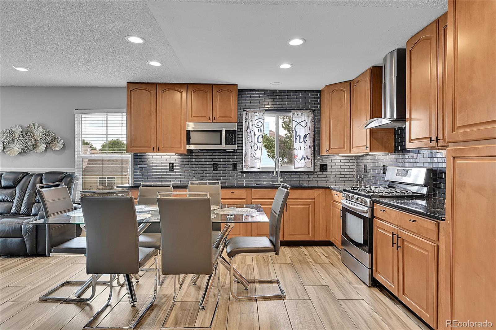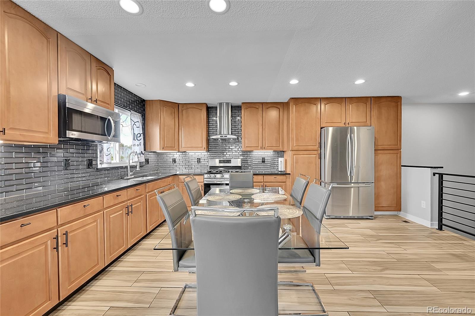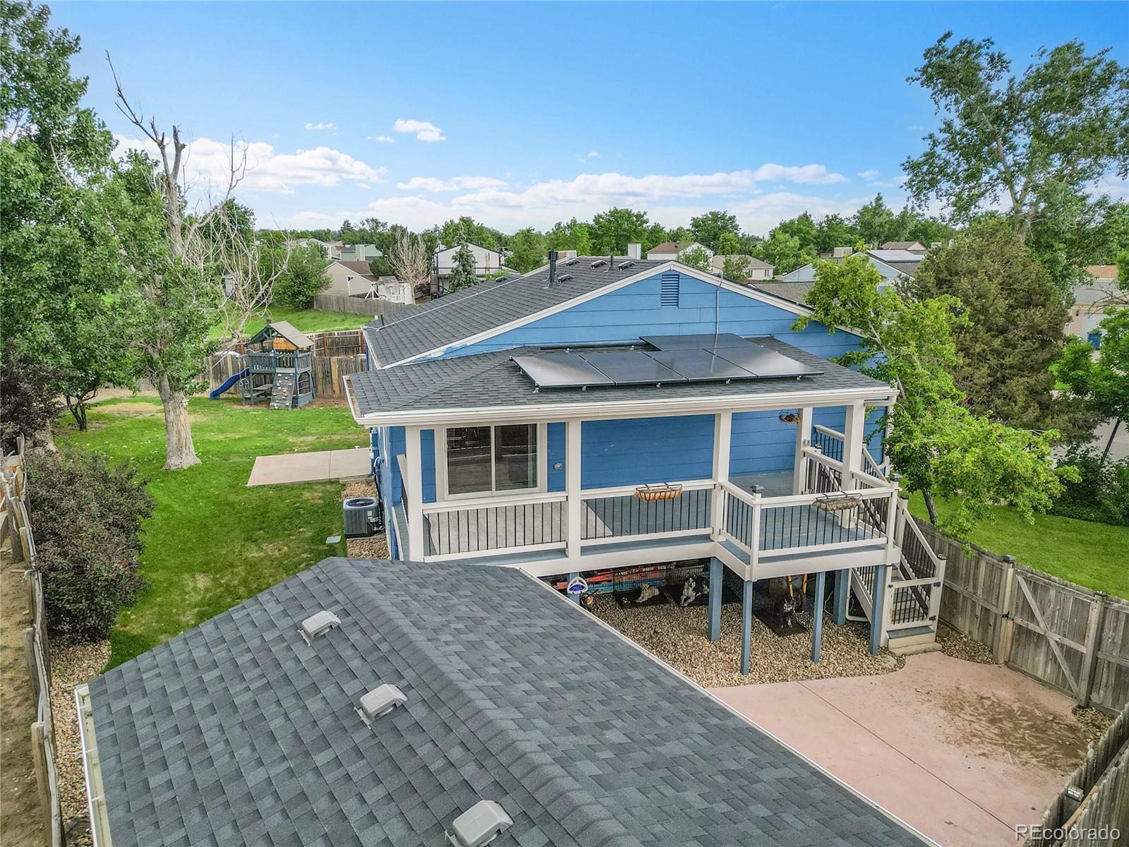 Gorgeous home, fully remodeled! This 4-bedroom, 2-bathroom home offers a spacious open floor plan, newer upgrades throughout—perfectly blending style and functionality. The remodeled kitchen features top-of-the-line cabinetry, high end granite countertops, stainless steel appliances with over the stove tasteful vent hood plus a microwave mounted oven—ideal for both everyday cooking and entertaining. Enjoy cozy evenings in the main living area. All four bathrooms have been tastefully renovated, and the home includes newer flooring and fresh interior paint. Major upgrades include a new roof, gutters, and solar panels installed two years ago, easy to assume by the buyer (see supplements), a new water heater (2021), and a new AC unit (2018). The lower level features bonus finished spaces—perfect for a home gym, game room, or other hobbies. Step outside to a large covered deck patio overlooking beautiful mature trees and the mountain range, an expansive fenced backyard, ideal for year-round outdoor living and entertaining. A 1 car garage and additional off-street parking for over six automobiles, and storage options. Located in a prime area, this home is just a short drive to both Denver International Airport and Downtown Denver—perfect for commuters and city enthusiasts alike. This move-in-ready gem combines comfort, space, and an unbeatable location near Anzchutz Medical, VA and Children's Hospitals, DTC, Aurora Mall, Central Park, Northfield and much more—don’t miss your chance to make it yours! Click the Virtual Tour link to view the 3D walkthrough.