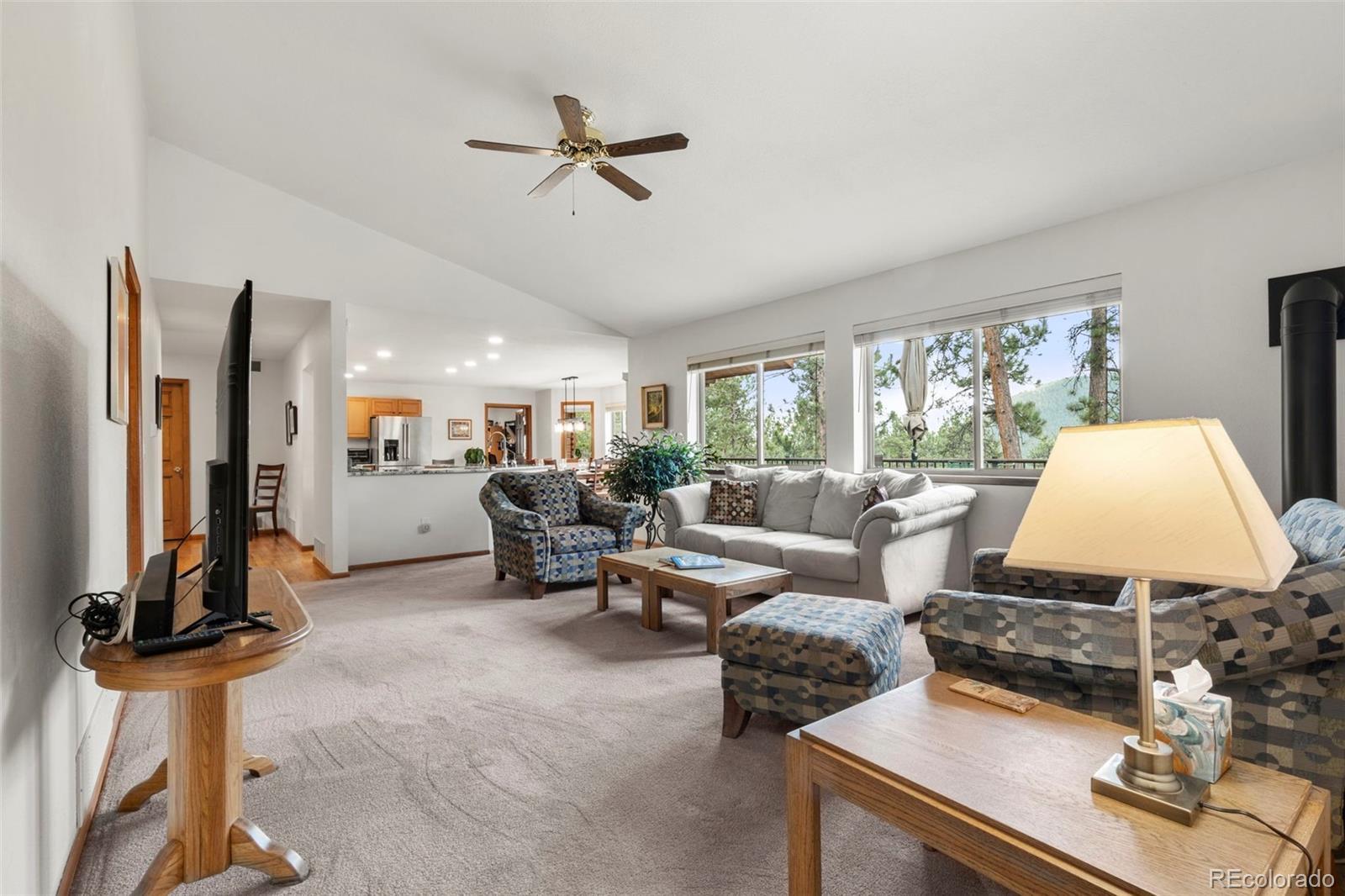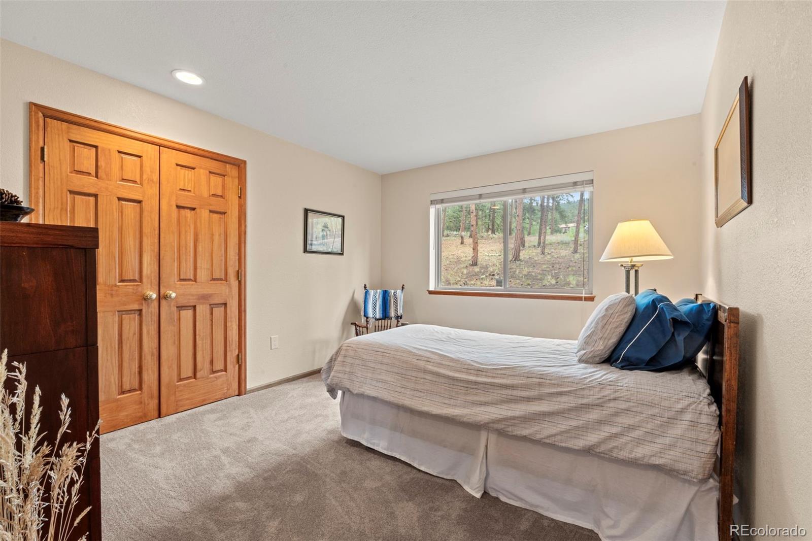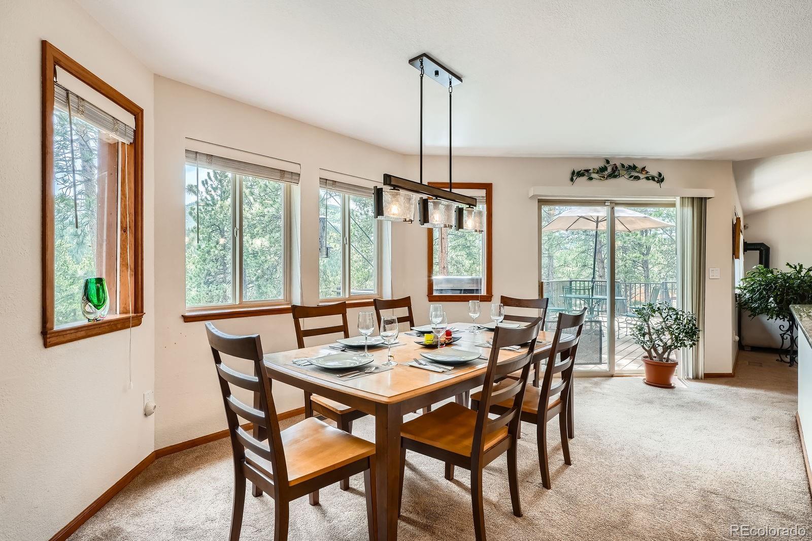 You do not want to miss this stunning, one-of-a-kind mountain retreat that blends natural beauty with modern convenience and is just minutes from Mt. Evans Wilderness trailheads. Pride of ownership shines throughout the beautiful open layout. The updated kitchen has it all, featuring granite counters, soft-close cabinets, undercabinet lighting, double oven, range hood, and high-end stainless steel appliances. Enjoy pure water with a Culligan softener and reverse osmosis system. A spacious bonus room offers endless opportunities to be used as an office, gym, second living area, or more. There is an abundance of storage space with a stand-up crawl space and cold storage room. Outside, relax on the new composite deck, gather around the fire pit, or enjoy the professionally fire-mitigated lot. Additional features include a sealed asphalt driveway, Leaf Filter gutters, Starlink internet, Brinks security, a spacious driveway and parking for a trailer or boat. A natural gas stove adds cozy charm, and private lake access stocked with trout completes the lifestyle.