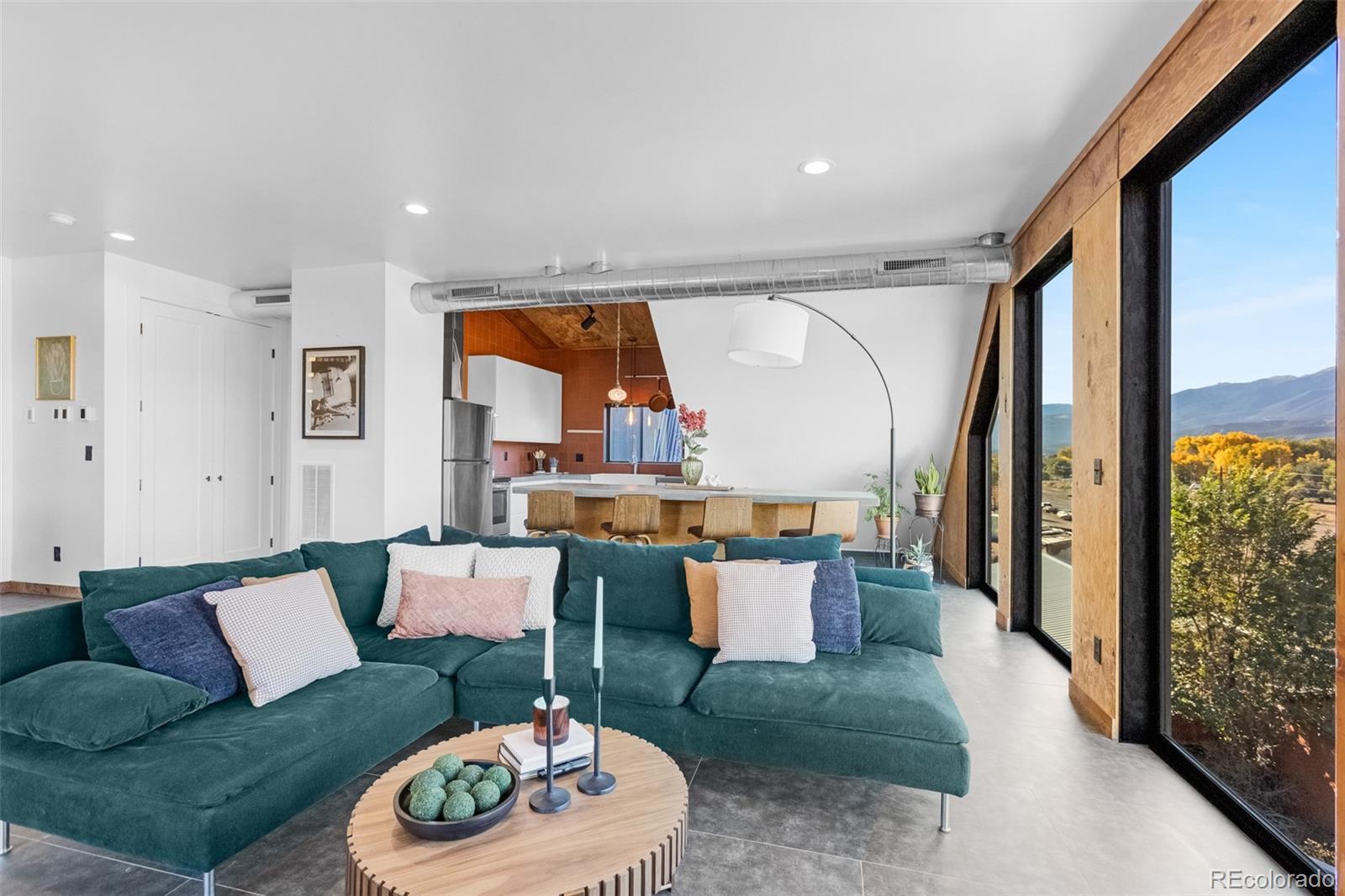Welcome to your mountain retreat perfectly situated at the base of S Mountain, where river views, downtown convenience, and outdoor adventure come together. This beautifully maintained home offers comfort and charm just a two-minute walk from F Street and the Riverside Park. The perfect location for peaceful living on the edge of downtown or an ideal investment opportunity. Built in 2021, this detached condominium blends modern design with a relaxed mountain-town feel. The main level features a bright and open floorplan with views galore. The kitchen boasts custom concrete countertops with a considerable amount of storage. The bar seats up to eight, making it the perfect centerpiece for entertaining. The laundry area and a convenient three quarter bath for guests. The primary bedroom is bright with extra storage and attached to the full primary bathroom in a picturesque setting. Upstairs, you’ll find the second bedroom with extra space, perfect for a cozy reading nook or extra storage. Along with another three-quarter bath. The views don't disappoint in the loft space, complete with smart curtains, making it ideal for a home office, entertainment area, or an extra bedroom. Enjoy every season from your Trex deck patio, where you can take in sweeping views of the mountains with the river just steps away. Trails begin literally at your doorstep—perfect for mountain biking enthusiast, morning hikes, dog lovers, or evening strolls by the water. Two large basement storage areas with exterior access offer plenty of space, one side could be a studio, with storage on the other side for bikes, skis, and all your outdoor gear, along with two dedicated parking spaces. Beautifully set right on the edge of downtown, this home offers the best of all worlds—peaceful living surrounded by nature, with Salida’s restaurants, shops, and the river, mountain biking trails, and entertainment just steps away. Schedule a showing now to take it all in.
