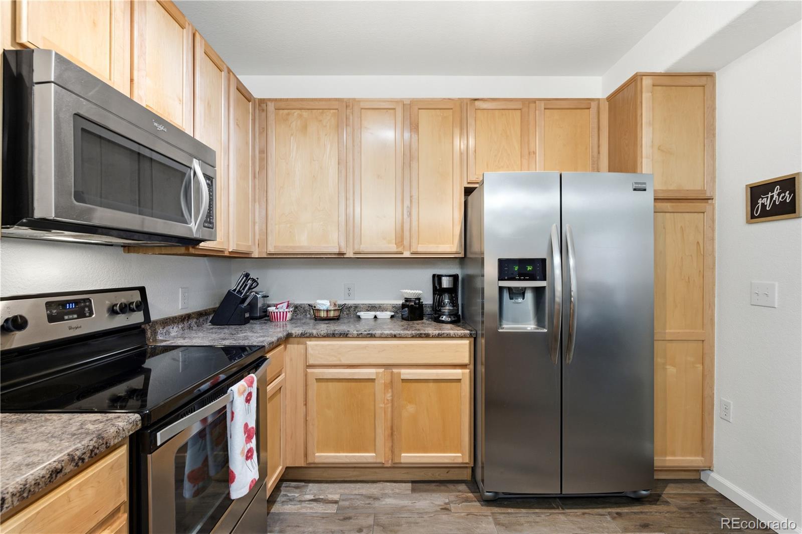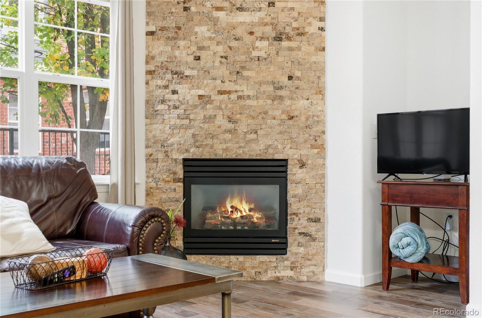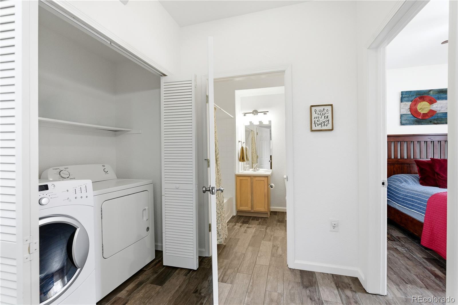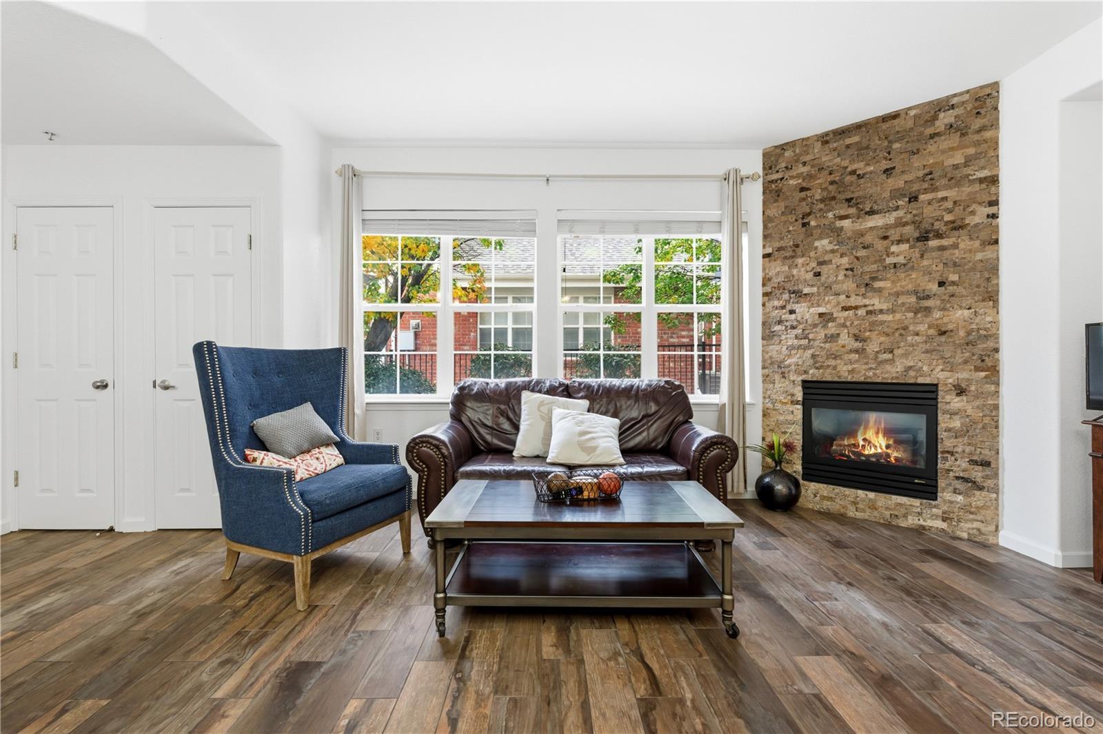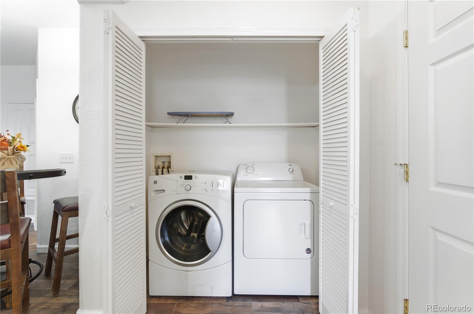 Welcome to this charming 2-bedroom, 2-bathroom condo in the desirable Colony at Cherry Creek community! This well-maintained 956 sq ft end unit offers comfortable main floor living with an open concept layout. Built in 2004, the home features a cozy gas fireplace in the great room, laminate and tile flooring throughout, ceiling fans, and a spacious walk-in closet in the primary bedroom with private full bath. The bright, open kitchen boasts stainless steel appliances (all included - dryer, microwave, range, refrigerator, and washer), ample counter space, and plenty of natural light from large east-facing windows. Both bedrooms are located on the main level, each with ceiling fans, along with 2 full bathrooms for added convenience. Located at 16340 E Fremont Avenue #6 in Aurora's River Run subdivision, this property is perfectly situated in the highly-rated Cherry Creek School District 5 - Red Hawk Ridge Elementary, Liberty Middle School, and Grandview High School. Enjoy convenient access to shopping, dining, the Cherry Creek Trail, and major highways including Parker Road and C-470. The professionally managed Colony at Cherry Creek Homeowners Association ($285/month) includes maintenance grounds, maintenance structure, sewer, snow removal, and water. Community amenities feature a pool and hot tub. One detached garage space plus ample open parking right outside your door. This affordable housing property offers excellent value for first-time buyers or investors. Conventional, FHA, and Cash financing options welcome. Don't miss this opportunity!