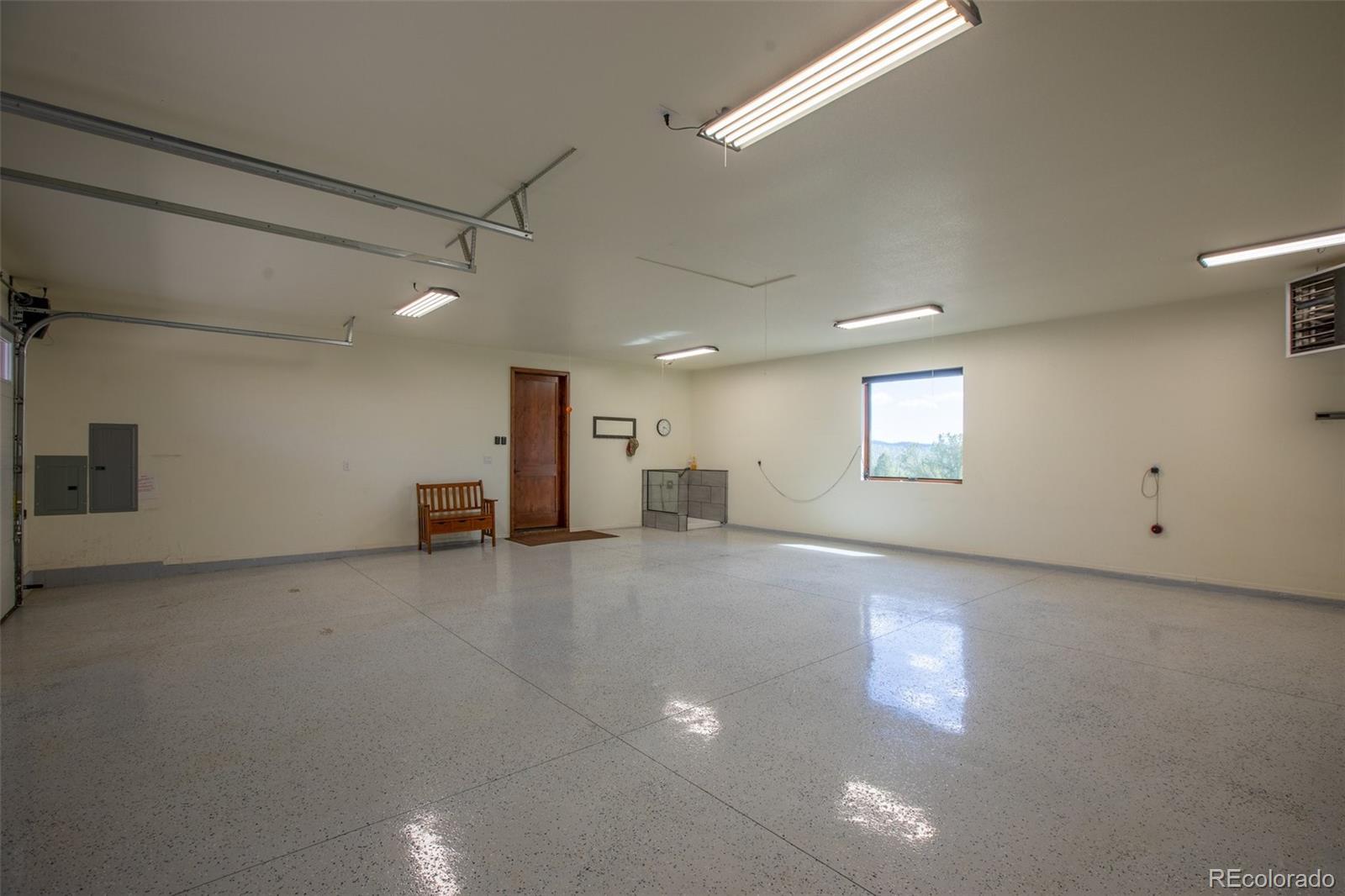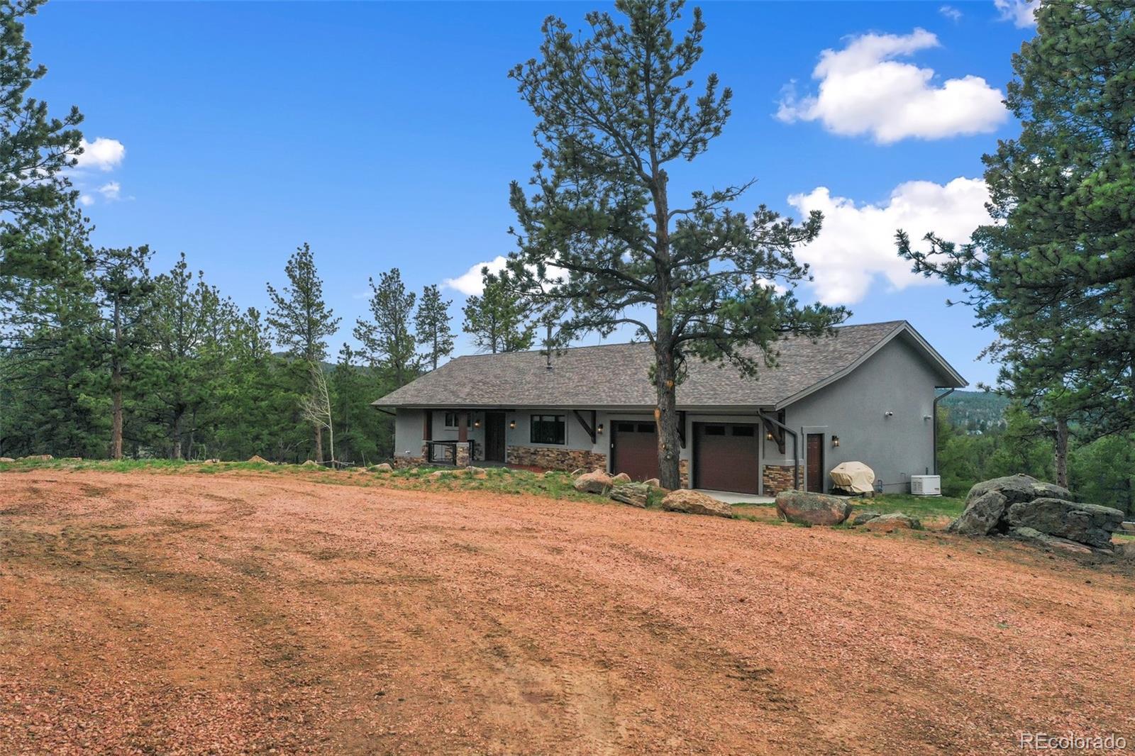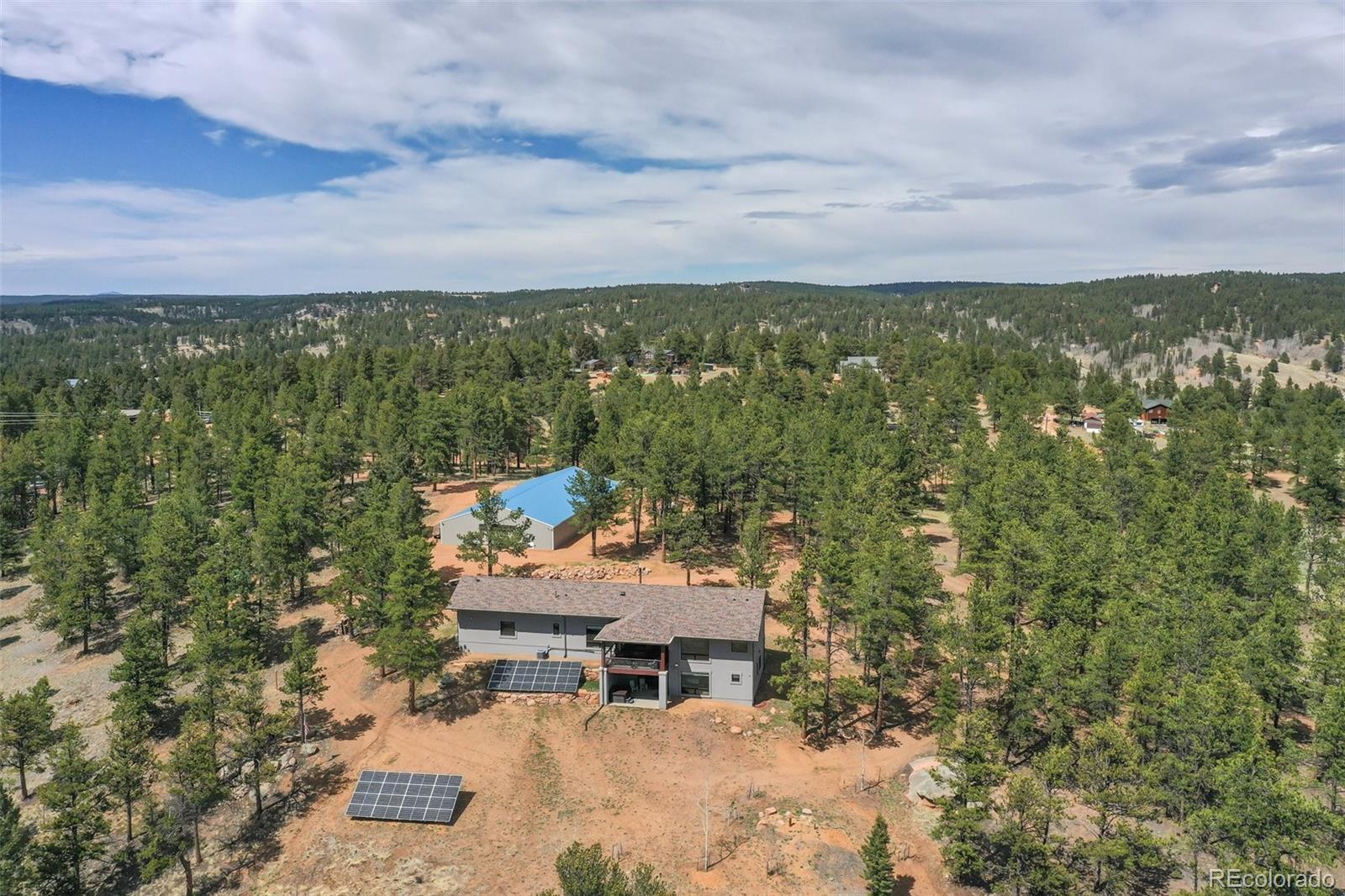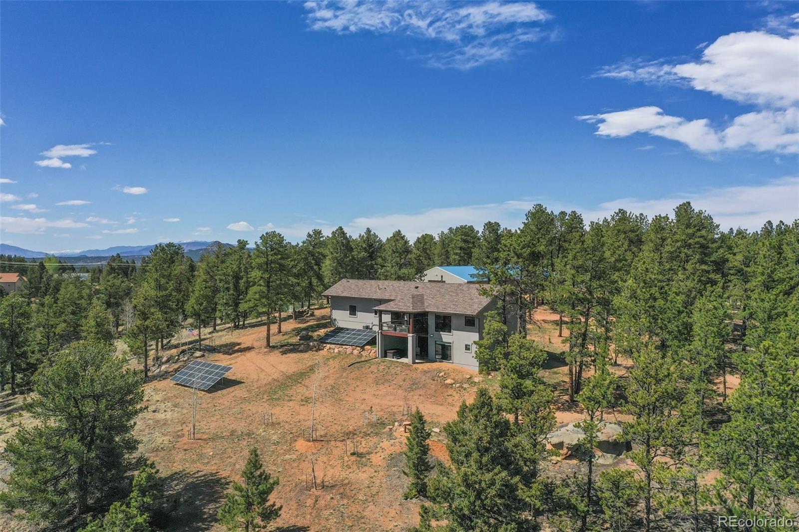 Experience luxury living in this nearly new mountainside home in rustic Florissant! Designed for ultimate serenity and security, this high-end retreat boasts two spacious primary suites, a home theater, and state-of-the-art smart home features throughout. Wake up to full mountain views from every room, highlighted by premium finishes and thoughtful design. This home showcases intricate attention to detail, including extra thick stucco, lifetime guarantee gutters with leaf filters, touch faucets, a dual fuel range, built-in surround sound, automated blinds, and a whole house humidifier and water filter system. Custom Pella windows and doors ensure quality and beauty, while a wireless security system and voice-activated controls for lights, blinds, appliances, and more elevate convenience and peace of mind. A full solar array and generator provides off-grid capabilities as well. A large workshop is ideal for hobbies or business use, fully insulated and heated with a 6" concrete floor, RV hookup, and an additional 1-bedroom living area. The garage features an epoxy cover and heater for comfort and durability. Stay fully powered with solar, city electricity, or a diesel generator—supported by solar batteries to ensure uninterrupted power. Set on 38 acres of forest and rolling hills, this property offers unparalleled privacy, breathtaking scenery, and a rare opportunity for luxury mountain living.