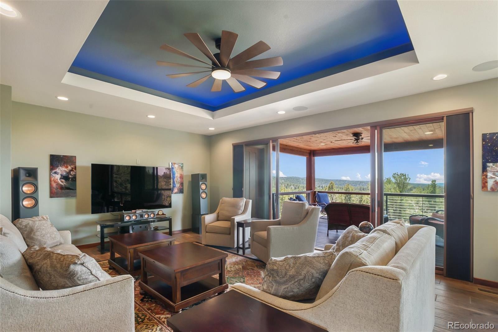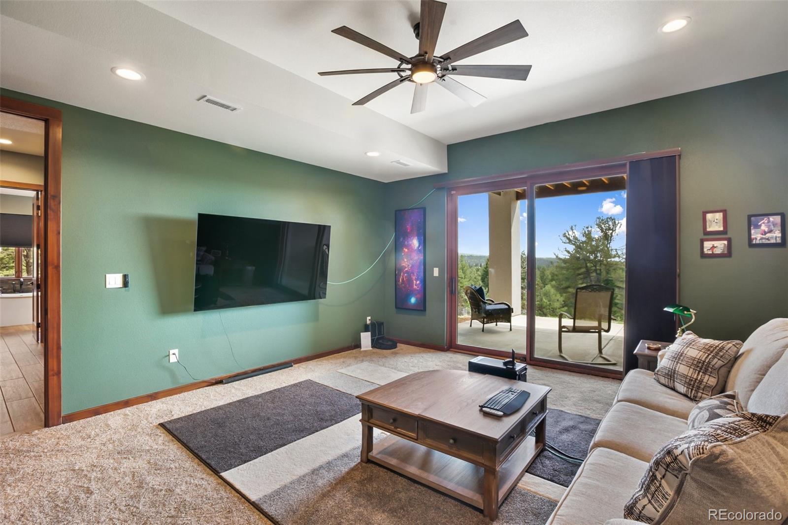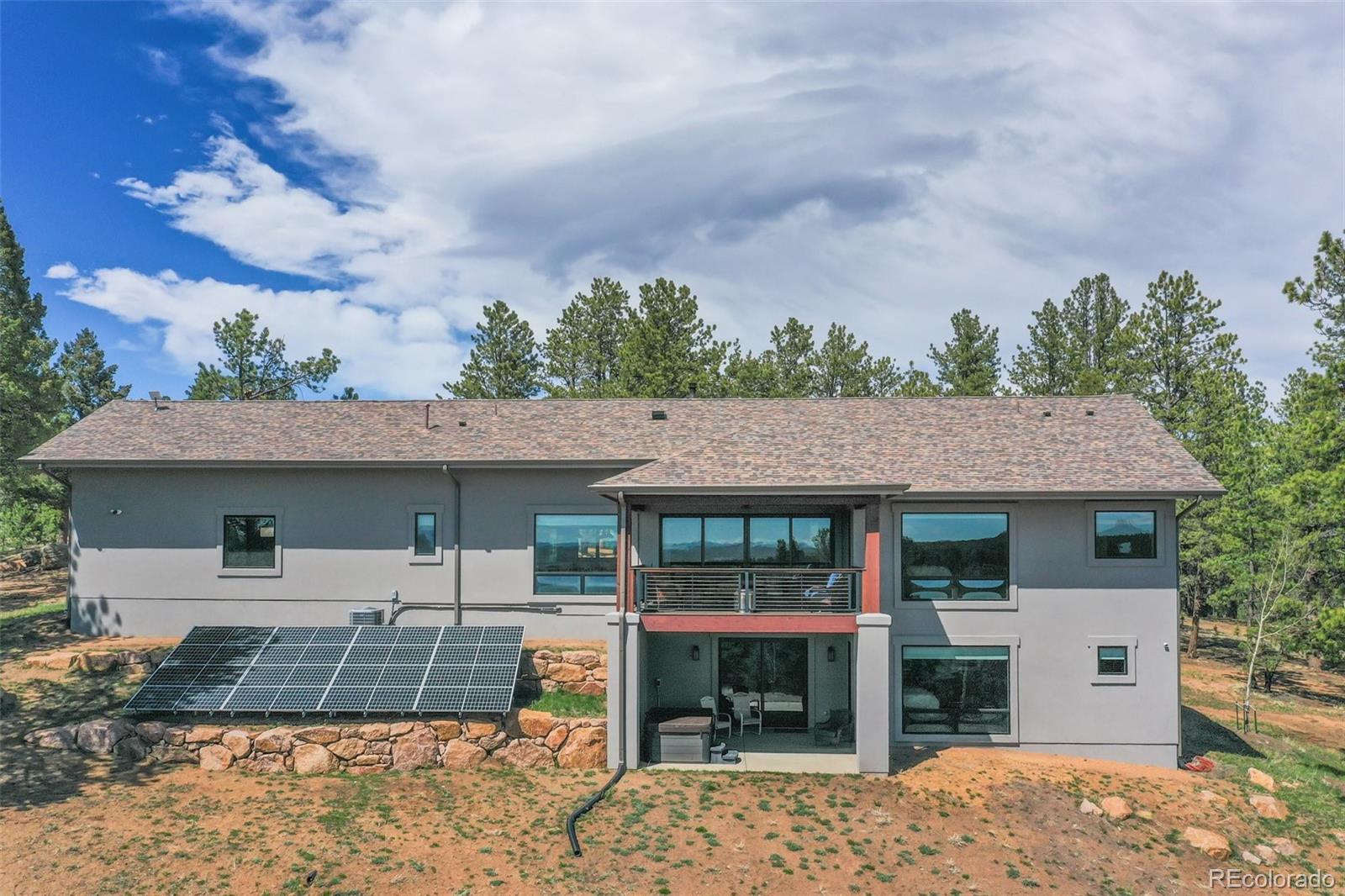Experience luxury living in this nearly new mountainside home in rustic Florissant! Designed for ultimate serenity and security, this high-end retreat boasts two spacious primary suites, a home theater, and state-of-the-art smart home features throughout. Wake up to full mountain views from every room, highlighted by premium finishes and thoughtful design. This home showcases intricate attention to detail, including extra thick stucco, lifetime guarantee gutters with leaf filters, touch faucets, a dual fuel range, built-in surround sound, automated blinds, and a whole house humidifier and water filter system. Custom Pella windows and doors ensure quality and beauty, while a wireless security system and voice-activated controls for lights, blinds, appliances, and more elevate convenience and peace of mind. A full solar array and generator provides off-grid capabilities as well. A large workshop is ideal for hobbies or business use, fully insulated and heated with a 6" concrete floor, RV hookup, and an additional 1-bedroom living area. The garage features an epoxy cover and heater for comfort and durability. Stay fully powered with solar, city electricity, or a diesel generator—supported by solar batteries to ensure uninterrupted power. Set on 38 acres of forest and rolling hills, this property offers unparalleled privacy, breathtaking scenery, and a rare opportunity for luxury mountain living.