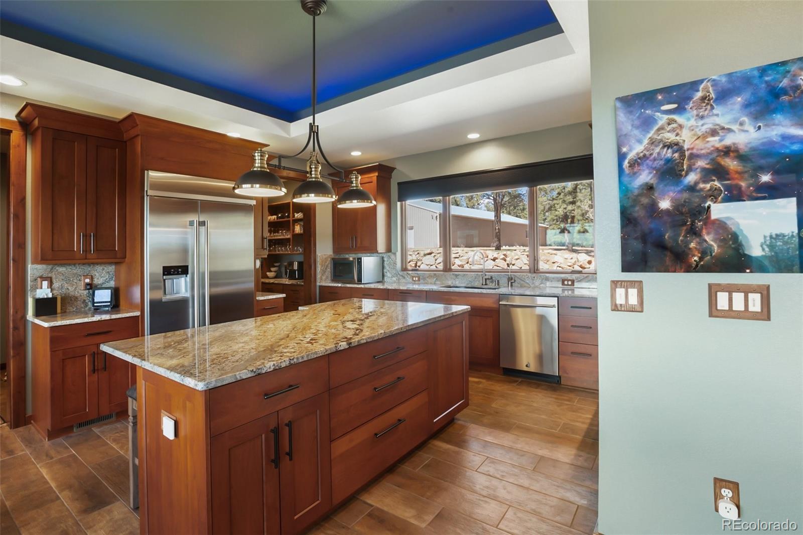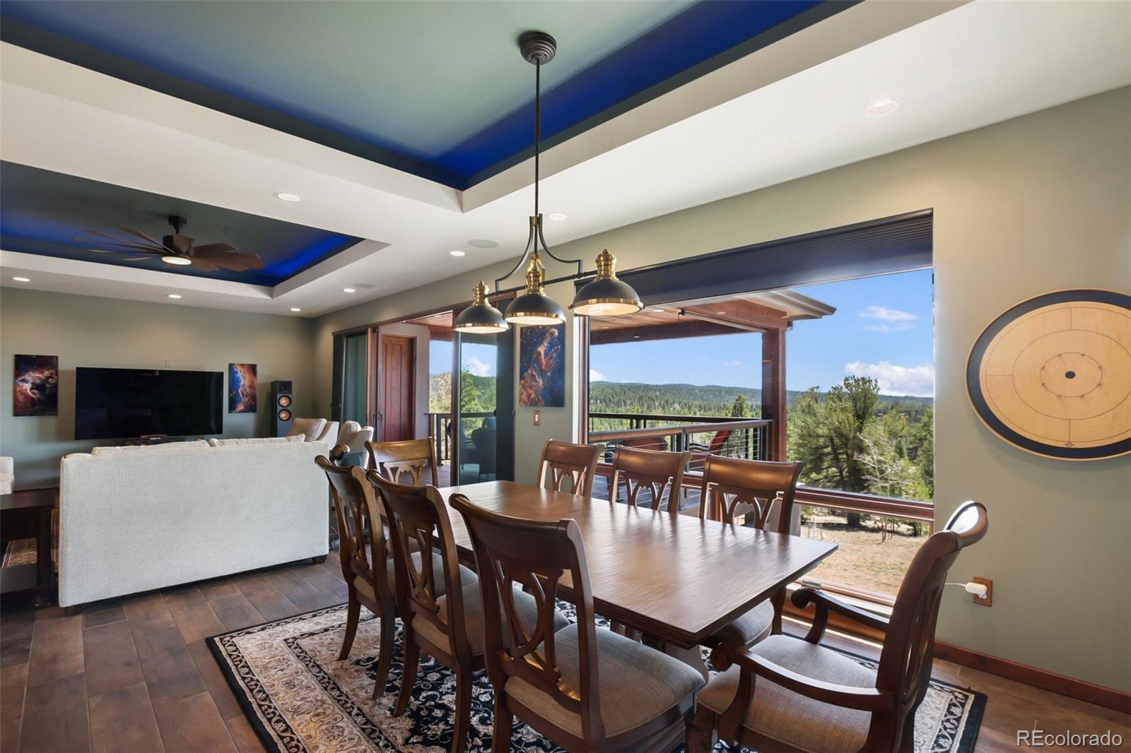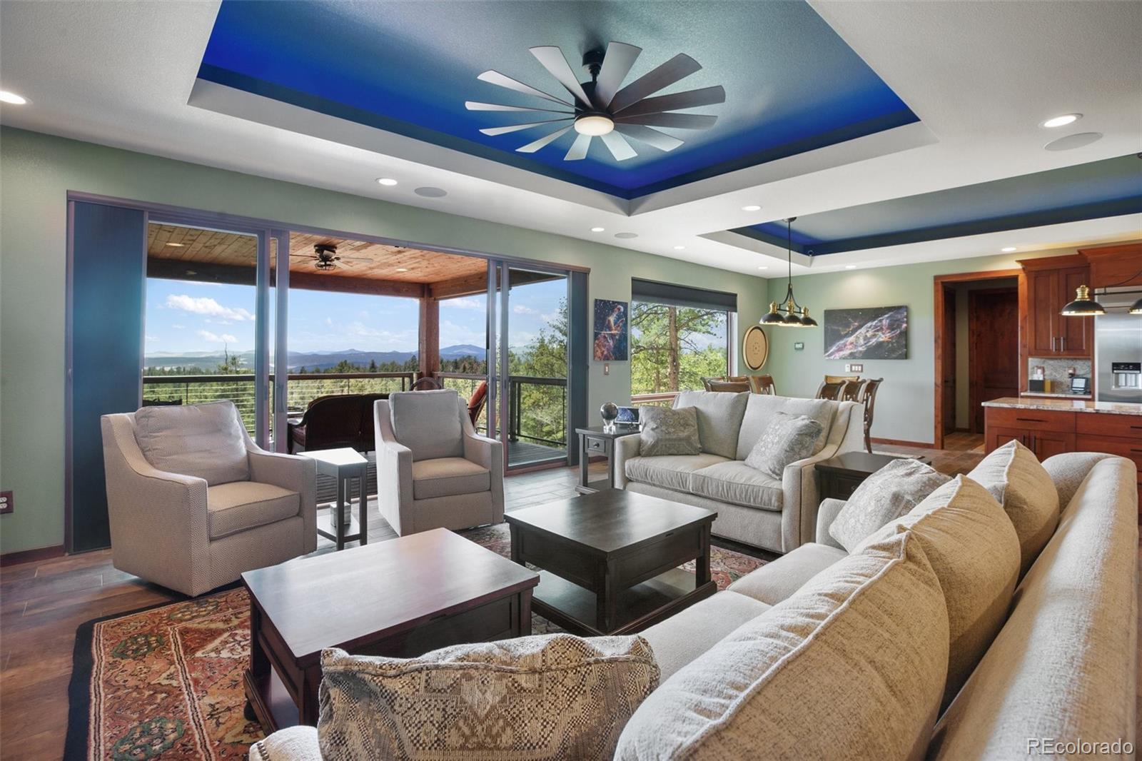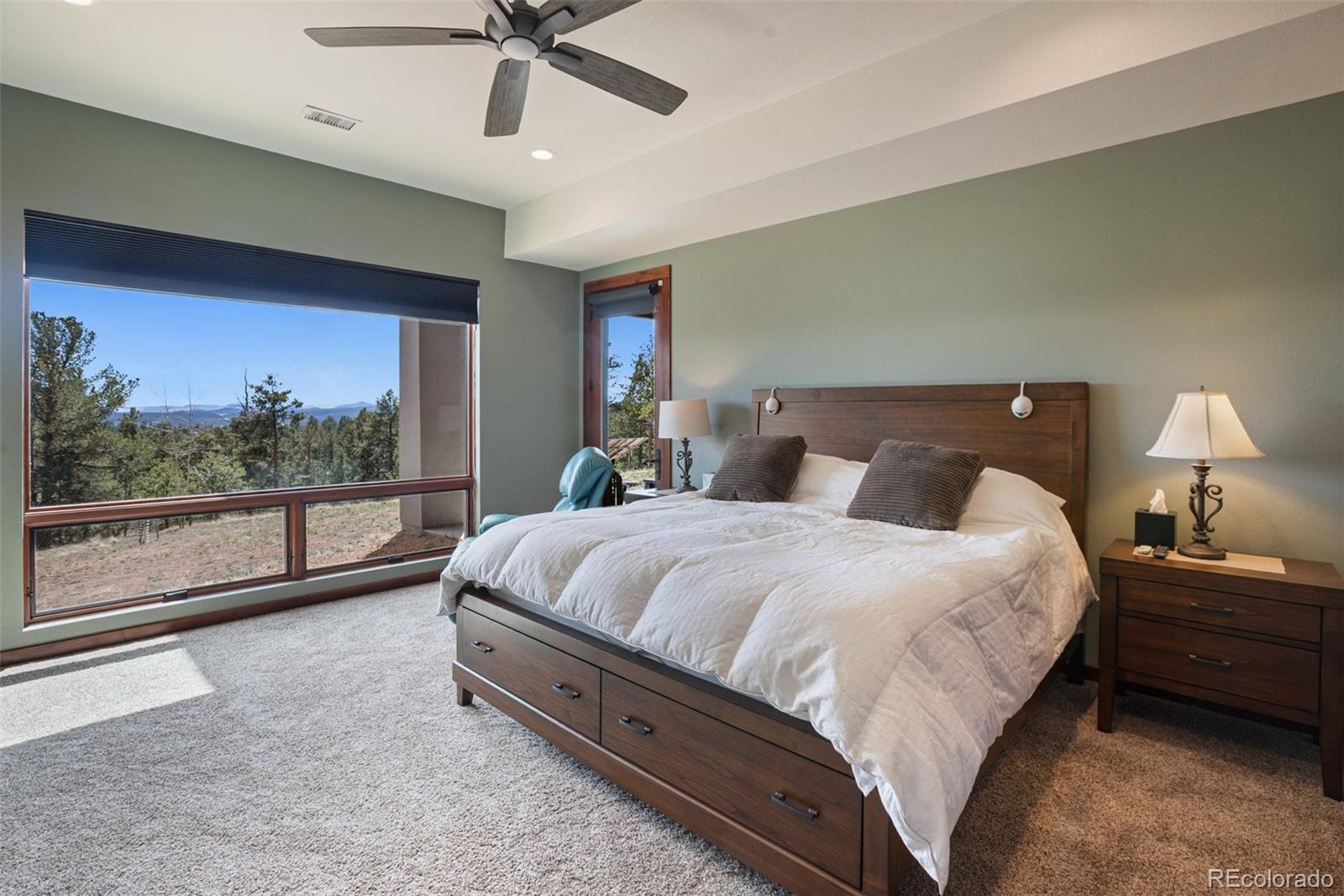 Experience luxury living in this nearly new mountainside home in rustic Florissant! Designed for ultimate serenity and security, this high-end retreat boasts two spacious primary suites, a home theater, and state-of-the-art smart home features throughout. Wake up to full mountain views from every room, highlighted by premium finishes and thoughtful design. This home showcases intricate attention to detail, including extra thick stucco, lifetime guarantee gutters with leaf filters, touch faucets, a dual fuel range, built-in surround sound, automated blinds, and a whole house humidifier and water filter system. Custom Pella windows and doors ensure quality and beauty, while a wireless security system and voice-activated controls for lights, blinds, appliances, and more elevate convenience and peace of mind. A full solar array and generator provides off-grid capabilities as well. A large workshop is ideal for hobbies or business use, fully insulated and heated with a 6" concrete floor, RV hookup, and an additional 1-bedroom living area. The garage features an epoxy cover and heater for comfort and durability. Stay fully powered with solar, city electricity, or a diesel generator—supported by solar batteries to ensure uninterrupted power. Set on 38 acres of forest and rolling hills, this property offers unparalleled privacy, breathtaking scenery, and a rare opportunity for luxury mountain living.