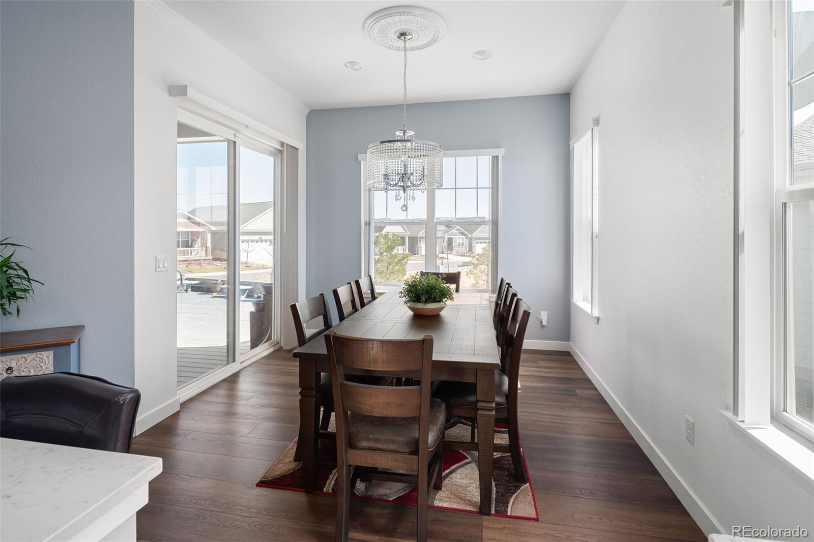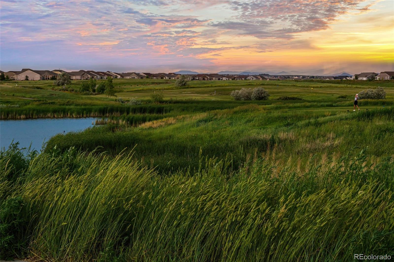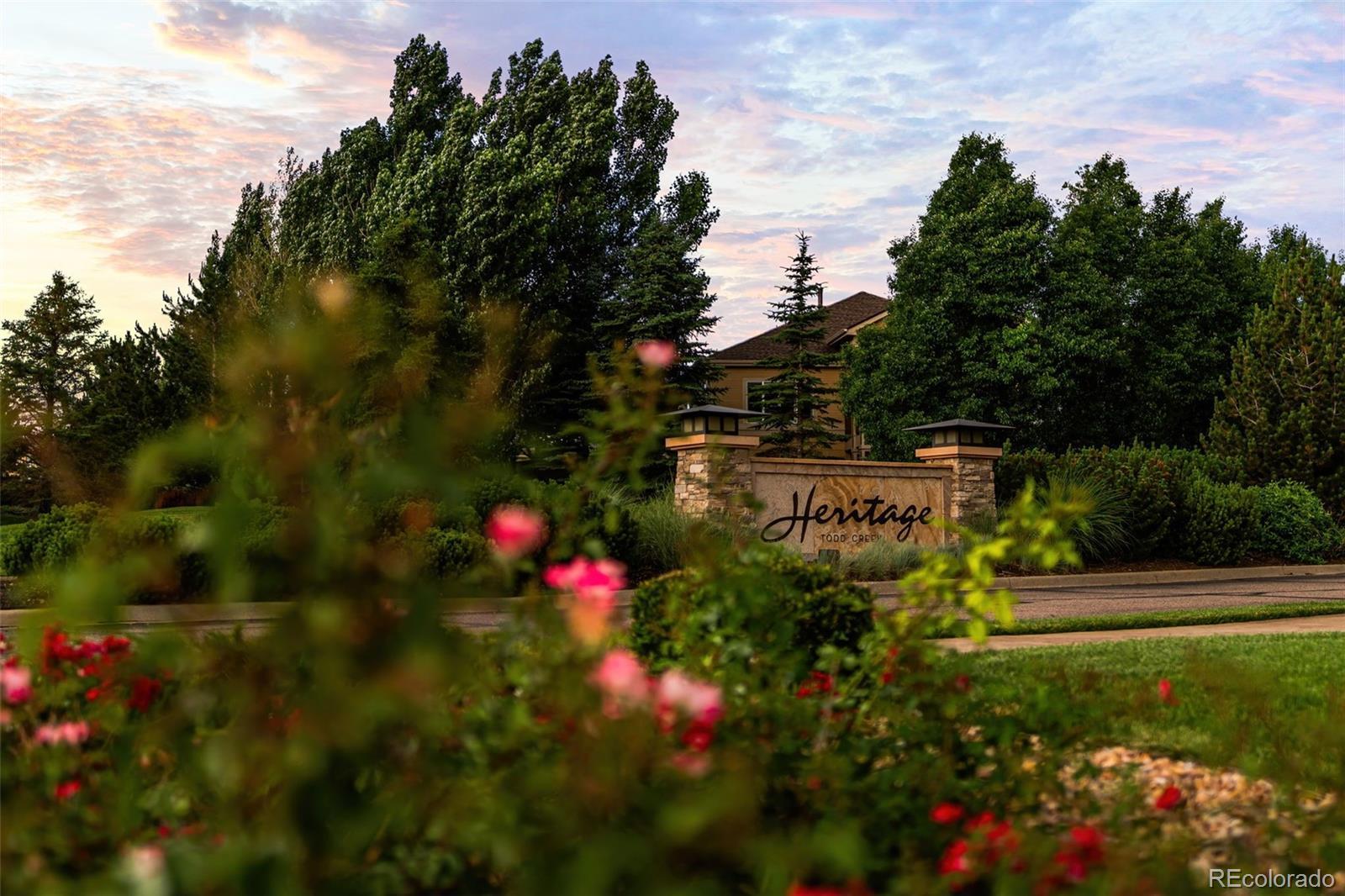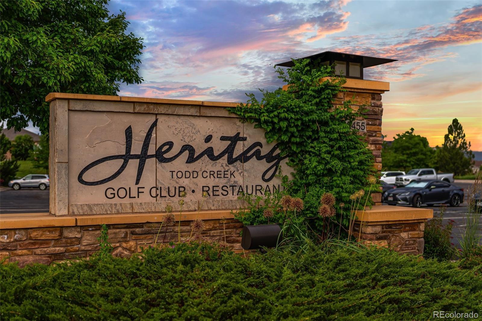 Todd Creek Golf Club • Corner Lot • Ranch Home • Finished Basement • Golf Course View Located in the gated, 55+ Heritage Todd Creek Golf Community, this 2022 Lennar-built ranch home offers 4 bedrooms, 4 full baths, an office, and nearly 4,723 finished sq ft including a full finished basement. Positioned on a 0.30-acre corner lot, the home captures golf-course views from the covered front porch and sunset views from its covered patio and landscaped yard. The open-concept floor plan features high ceilings, a spacious great room with gas fireplace, and a chef’s kitchen with granite and quartz surfaces, double ovens, cooktop, large island, pantry, and breakfast nook. The main-level primary suite includes a five-piece bath, dual vanities, quartz counters, and walk-in closet. A second main-level bedroom and full bath provide flexible living or guest space. The finished basement expands living options with a large great room, two additional bedrooms, and a full bath — ideal for hosting guests, recreation, or multi-generational living. Enjoy year-round comfort with central air, forced-air heat, and energy-efficient construction. A three-car attached garage provides ample parking and storage. The landscaped exterior includes garden accents and a covered front porch for outdoor relaxation. Residents enjoy resort-style amenities just 0.4 mi away — clubhouse, fitness center, pool, spa, tennis and pickleball courts, on-site restaurant, and championship golf course. HOA includes grounds maintenance, snow removal, and trash service. Convenient to CO-7, E-470, shopping, and dining. Experience elevated Colorado living in Heritage Todd Creek — where comfort, convenience, and community come together.