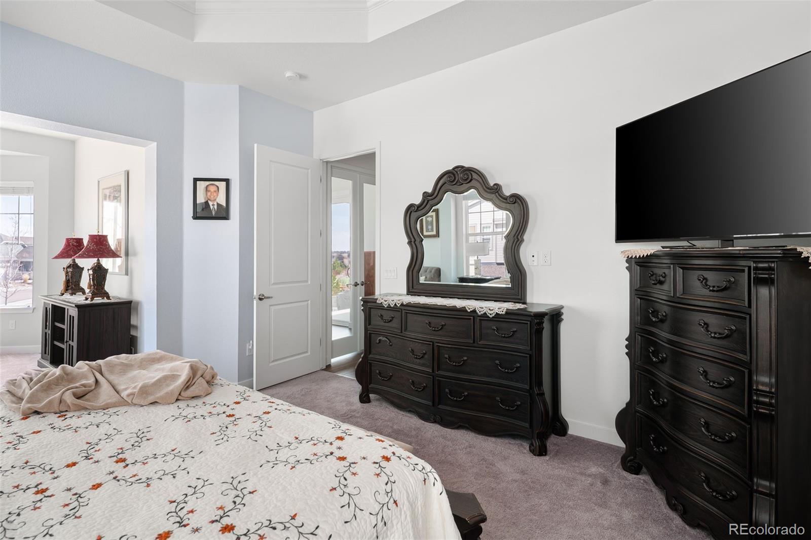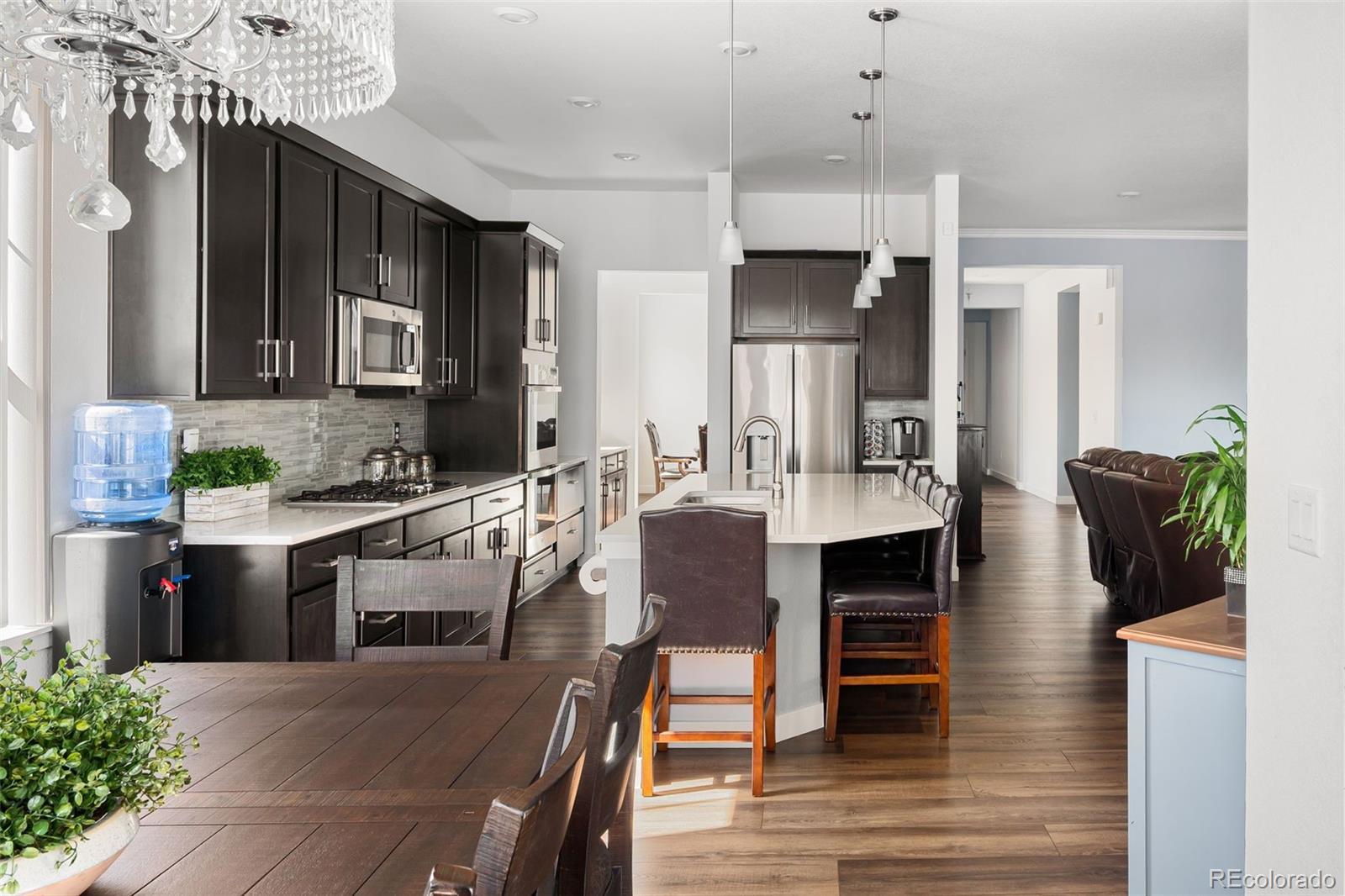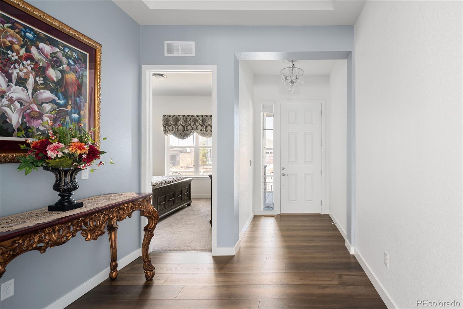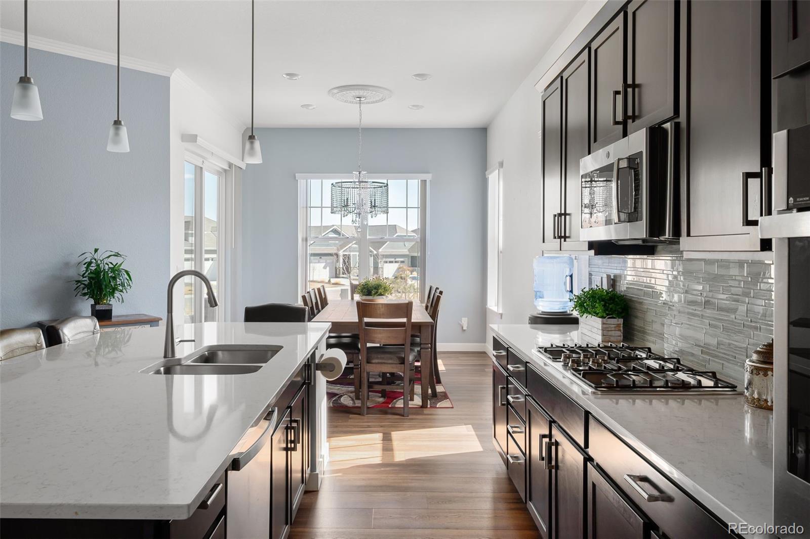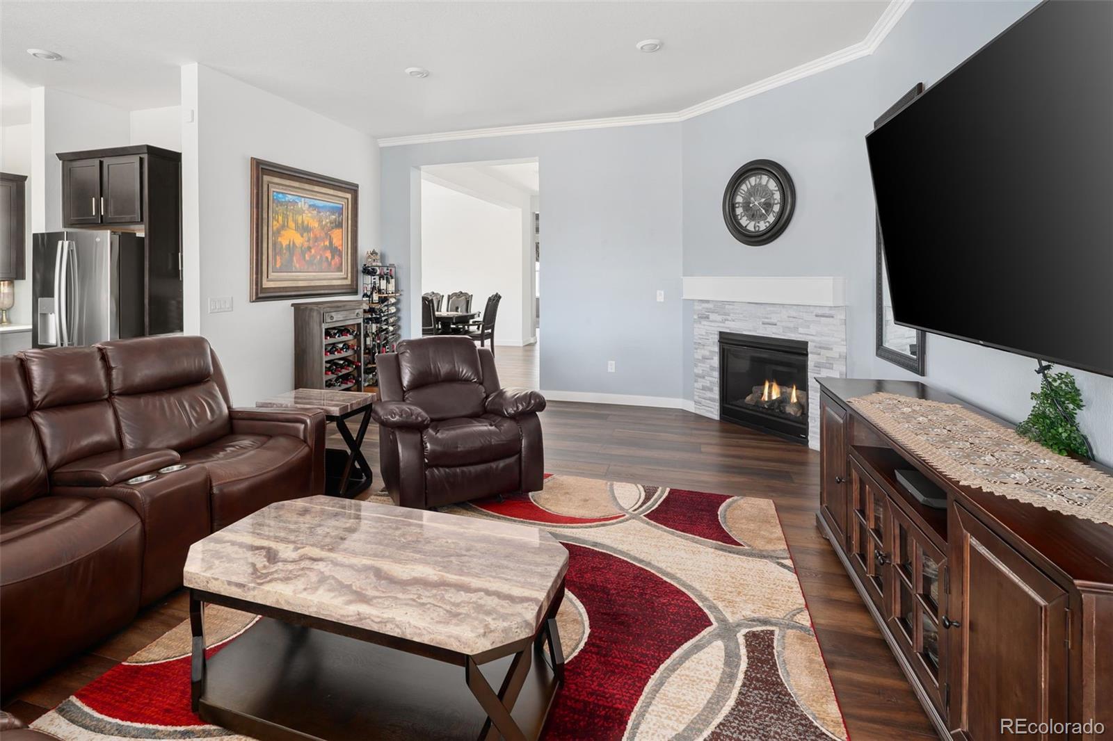 Todd Creek Golf Club • Corner Lot • Ranch Home • Finished Basement • Golf Course View Located in the gated, 55+ Heritage Todd Creek Golf Community, this 2022 Lennar-built ranch home offers 4 bedrooms, 4 full baths, an office, and nearly 4,723 finished sq ft including a full finished basement. Positioned on a 0.30-acre corner lot, the home captures golf-course views from the covered front porch and sunset views from its covered patio and landscaped yard. The open-concept floor plan features high ceilings, a spacious great room with gas fireplace, and a chef’s kitchen with granite and quartz surfaces, double ovens, cooktop, large island, pantry, and breakfast nook. The main-level primary suite includes a five-piece bath, dual vanities, quartz counters, and walk-in closet. A second main-level bedroom and full bath provide flexible living or guest space. The finished basement expands living options with a large great room, two additional bedrooms, and a full bath — ideal for hosting guests, recreation, or multi-generational living. Enjoy year-round comfort with central air, forced-air heat, and energy-efficient construction. A three-car attached garage provides ample parking and storage. The landscaped exterior includes garden accents and a covered front porch for outdoor relaxation. Residents enjoy resort-style amenities just 0.4 mi away — clubhouse, fitness center, pool, spa, tennis and pickleball courts, on-site restaurant, and championship golf course. HOA includes grounds maintenance, snow removal, and trash service. Convenient to CO-7, E-470, shopping, and dining. Experience elevated Colorado living in Heritage Todd Creek — where comfort, convenience, and community come together.
