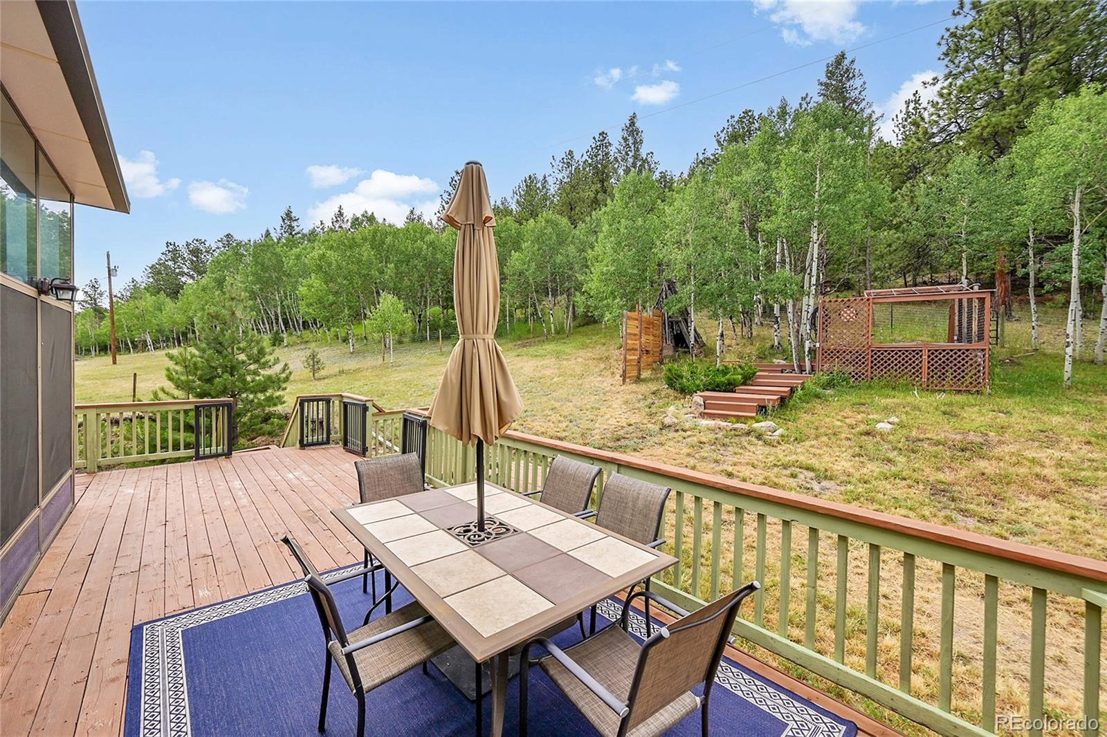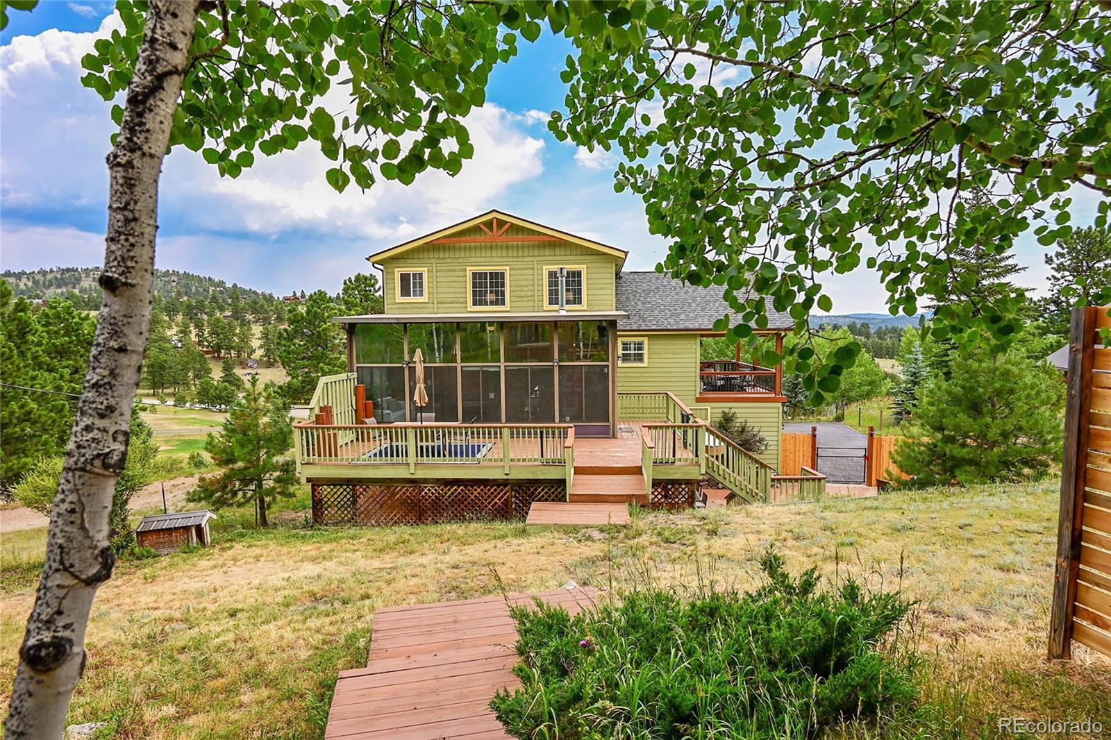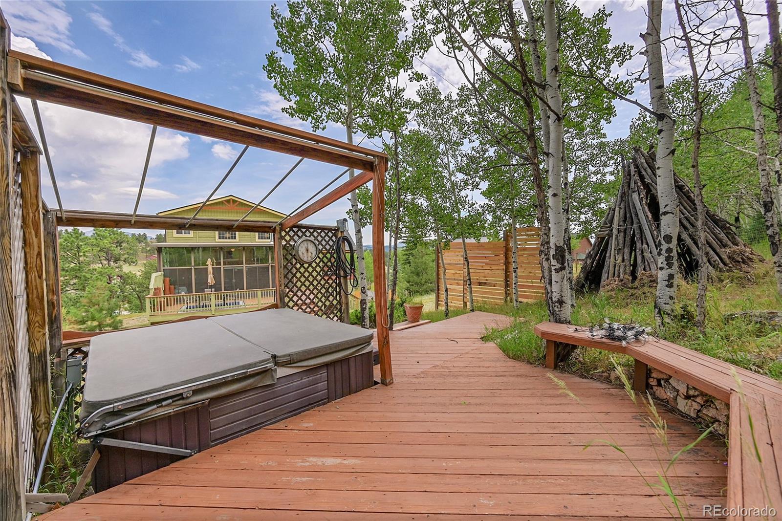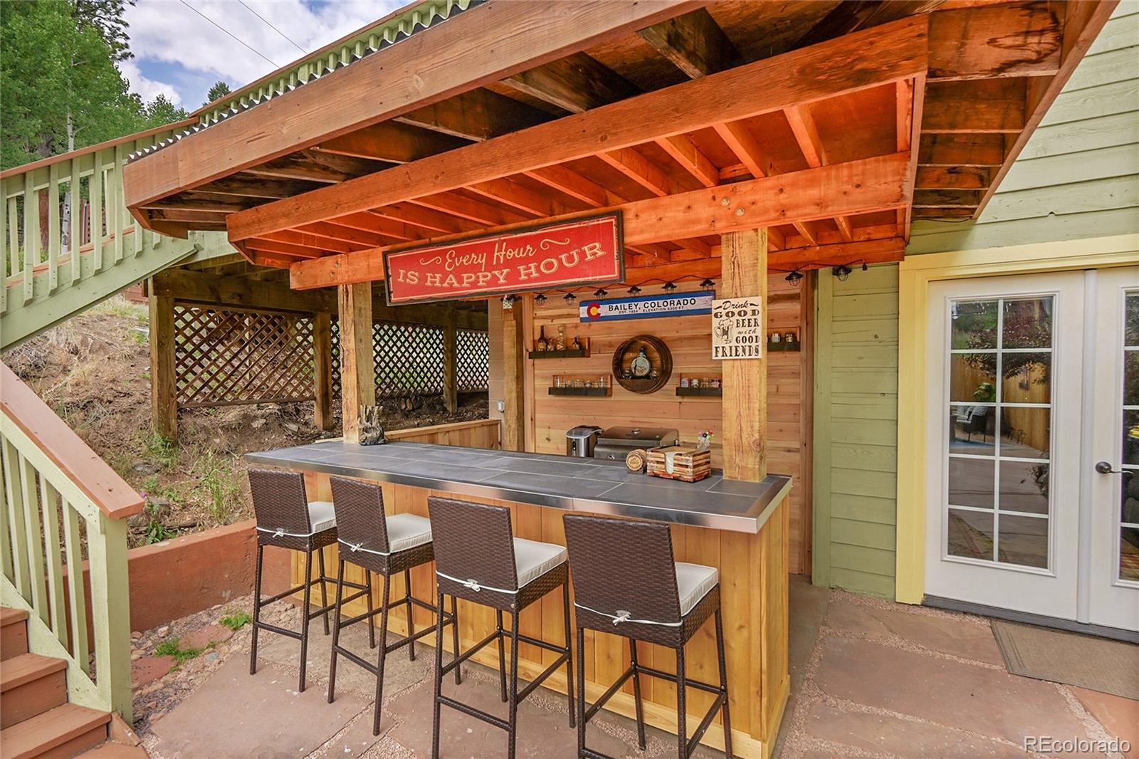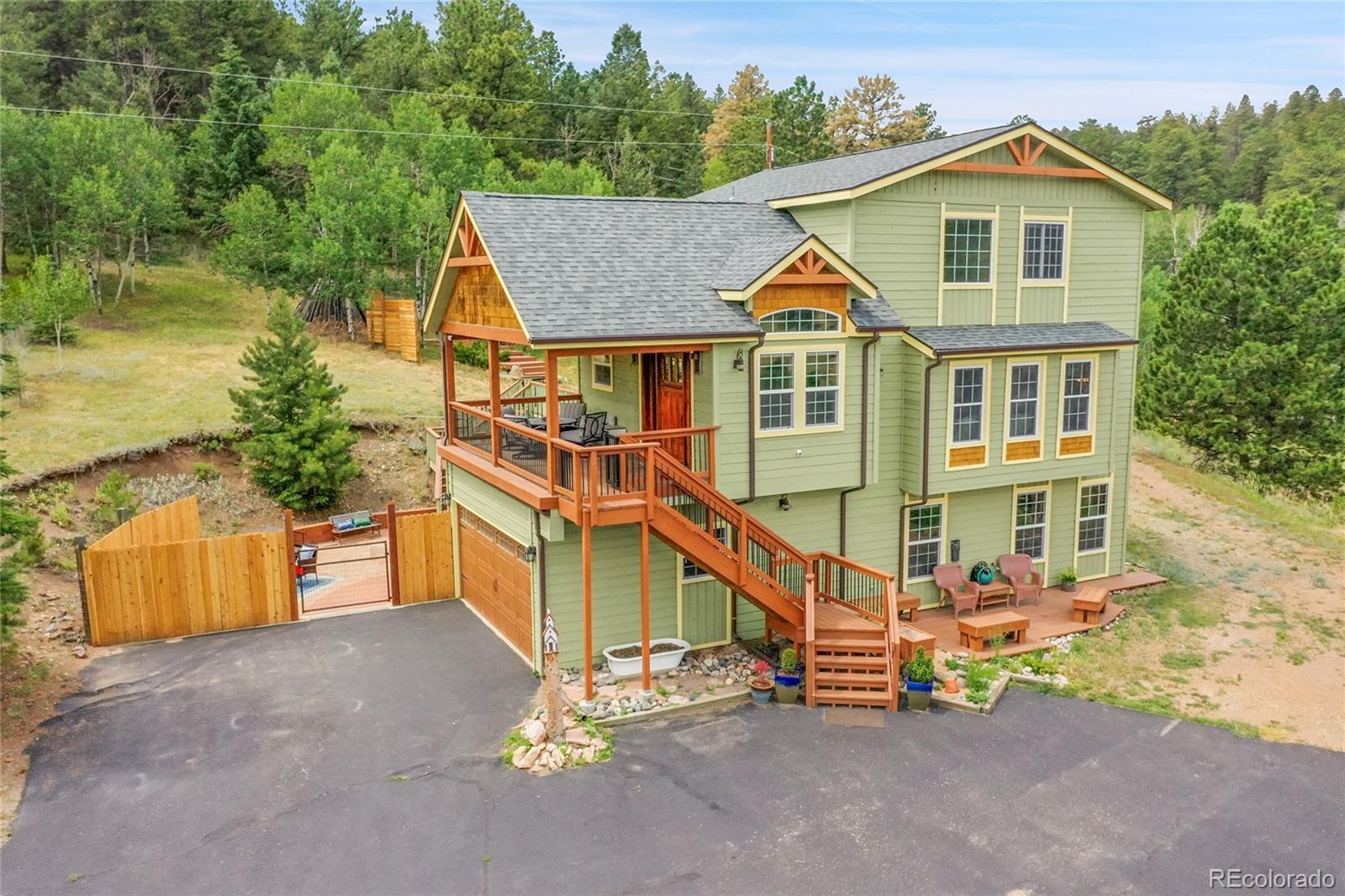 Experience modern mountain living at its finest—where comfort meets convenience! This exceptional property offers the peace and beauty of a private retreat while being just minutes from shopping, dining, grocery stores, and more. Outdoor lovers will appreciate quick access to some of Colorado’s best hiking destinations, including Staunton State Park, Pine Valley Ranch, Meyer Ranch Park, and Mount Bailey Trailhead—all just a short drive away. Nestled on 4.25 flat, usable acres, this property is designed for outdoor entertaining and everyday enjoyment. With a gated entrance, tons of parking, and a fully fenced lot—plus a large, partially fenced dog run and space for animals—it’s the perfect blend of functionality and freedom. Enjoy your custom outdoor oasis featuring a built-in bar, hot tub, multiple seating areas, and fire-mitigated grounds, plus your own private hiking trail. The charming ADU cabin was completely gutted and renovated in 2025, with over $150,000 in upgrades, featuring beautiful mountain rustic finishes, 2 bedrooms, 1 bath, and all new appliances and flooring. Furniture is negotiable—perfect for extended family, guests, or a residential income opportunity. The spacious main home boasts an open-concept layout, vaulted ceilings, and a glass-enclosed bonus dining area that brings the outdoors in, making it perfect for year-round relaxation. A new 1,500-gallon septic system was installed in 2023, and both the main home and cabin are equipped with whole-house water filtration systems, offering pure mountain well water throughout. Whether you're looking for a full-time residence, vacation home, or investment property, this one-of-a-kind retreat delivers versatility, charm, and a true Colorado lifestyle—all with easy access to Hwy 285 and everyday amenities. There is a new 1500 gallon septic tank and two leach fields but septic size unknown for total bedroom count.
