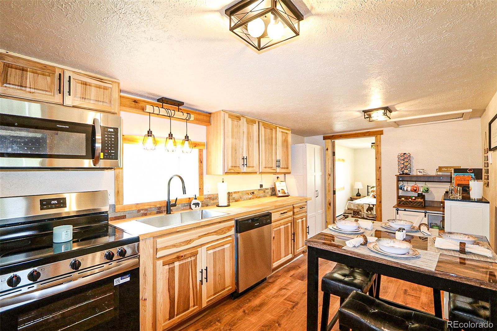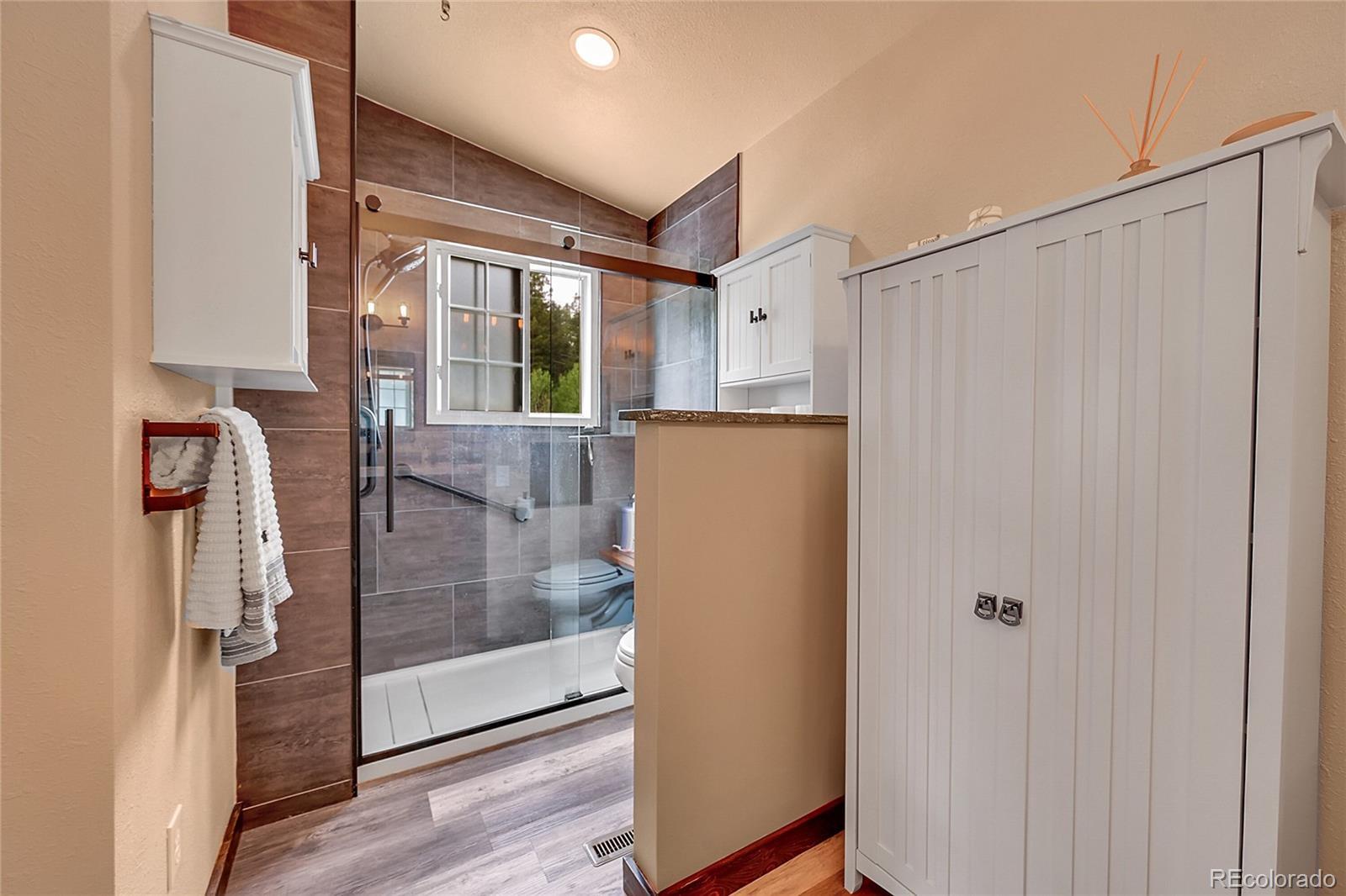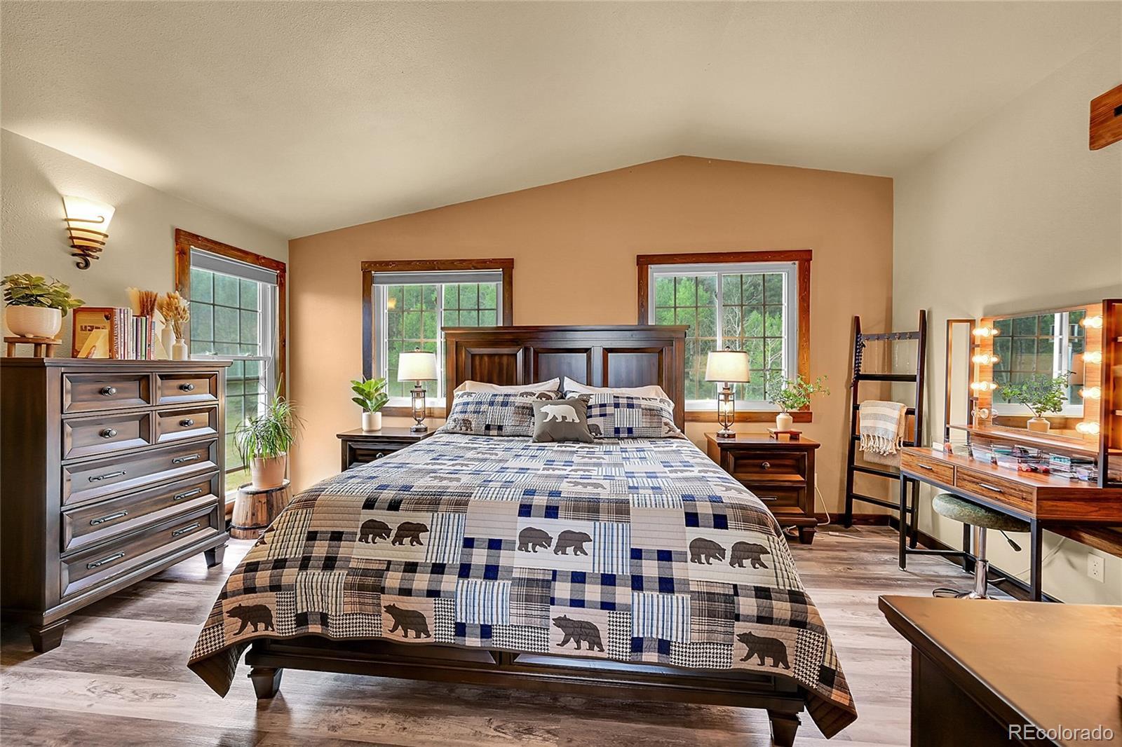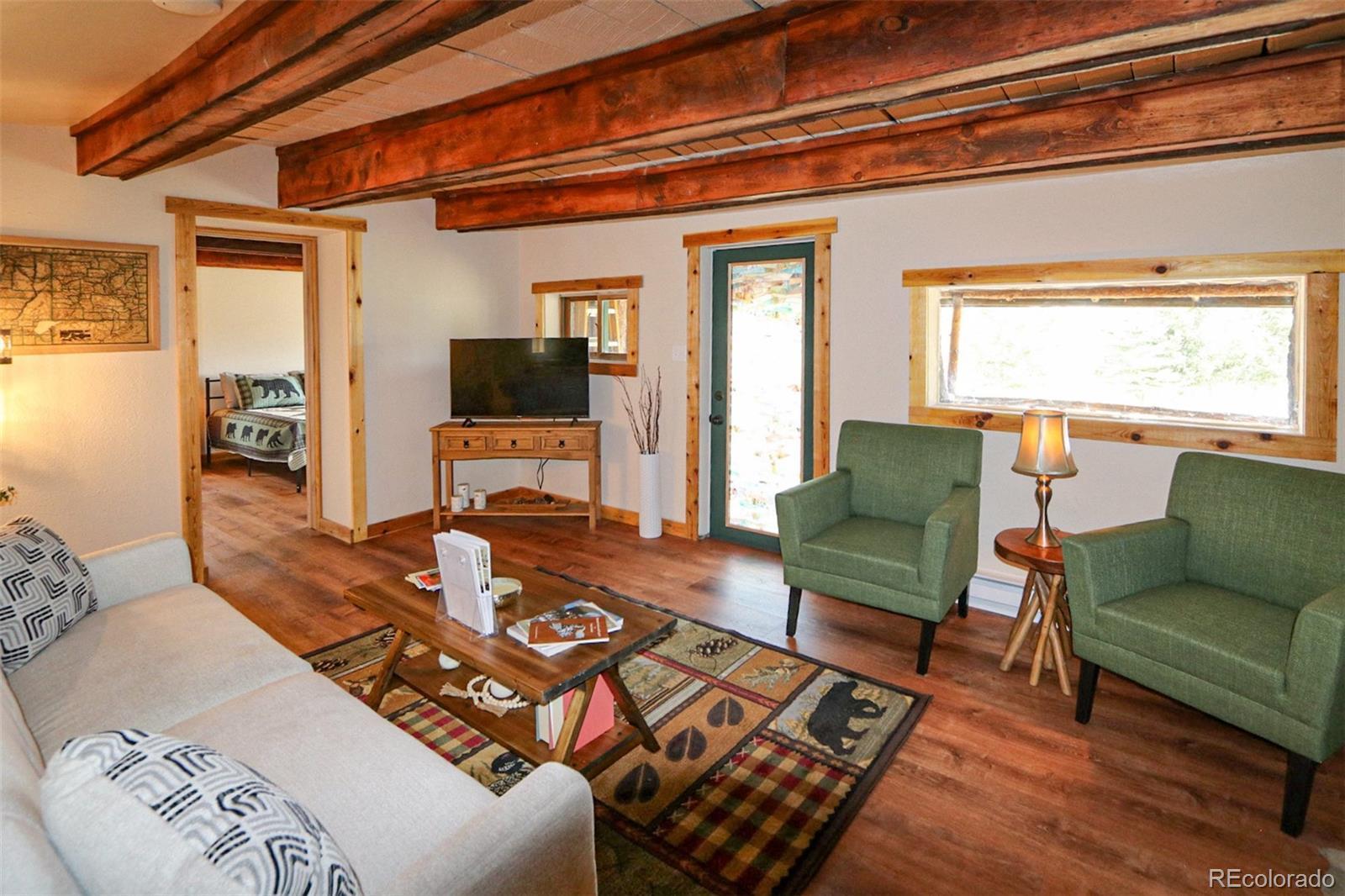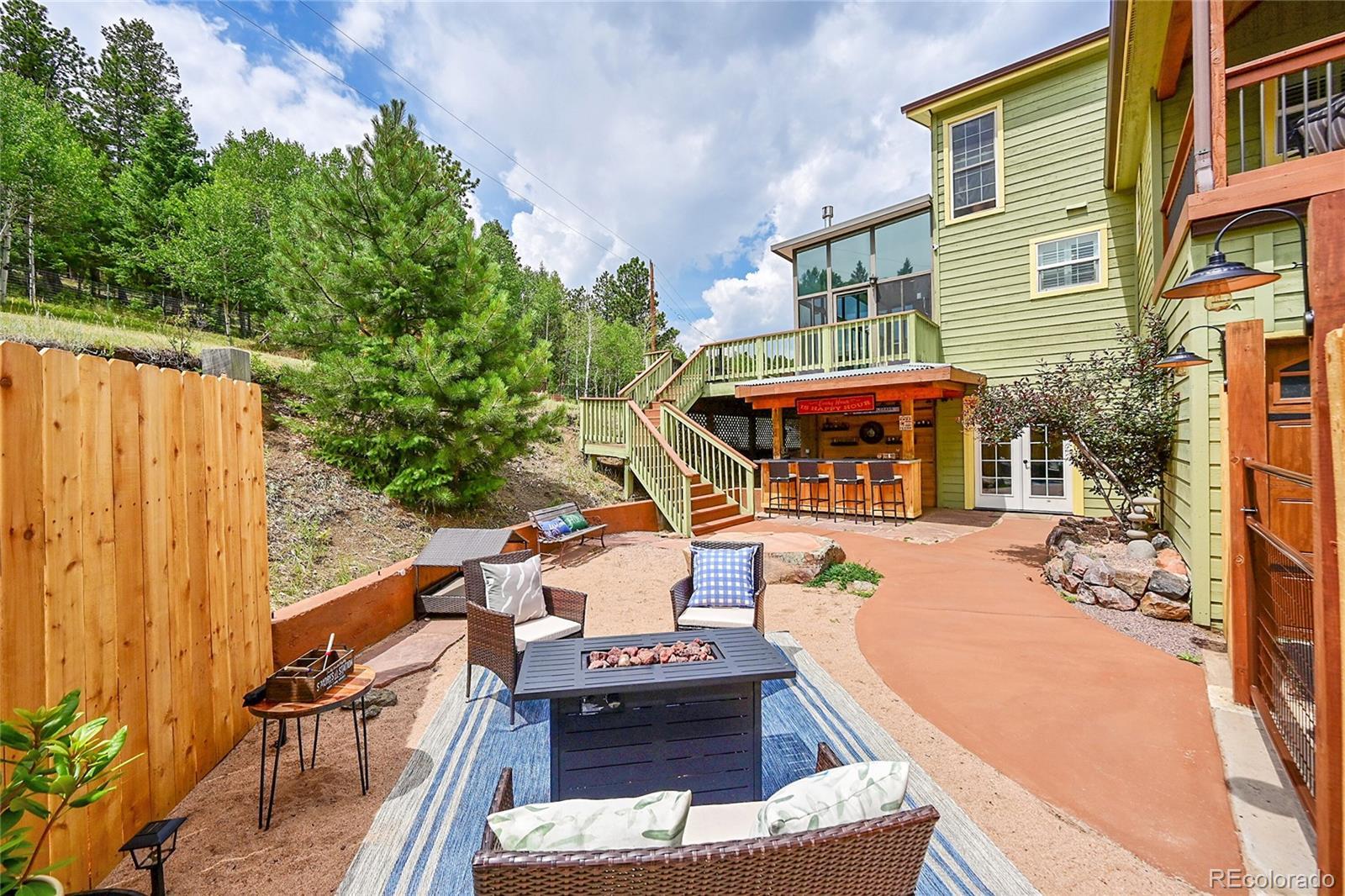 Experience modern mountain living at its finest—where comfort meets convenience! This exceptional property offers the peace and beauty of a private retreat while being just minutes from shopping, dining, grocery stores, and more. Outdoor lovers will appreciate quick access to some of Colorado’s best hiking destinations, including Staunton State Park, Pine Valley Ranch, Meyer Ranch Park, and Mount Bailey Trailhead—all just a short drive away. Nestled on 4.25 flat, usable acres, this property is designed for outdoor entertaining and everyday enjoyment. With a gated entrance, tons of parking, and a fully fenced lot—plus a large, partially fenced dog run and space for animals—it’s the perfect blend of functionality and freedom. Enjoy your custom outdoor oasis featuring a built-in bar, hot tub, multiple seating areas, and fire-mitigated grounds, plus your own private hiking trail. The charming ADU cabin was completely gutted and renovated in 2025, with over $150,000 in upgrades, featuring beautiful mountain rustic finishes, 2 bedrooms, 1 bath, and all new appliances and flooring. Furniture is negotiable—perfect for extended family, guests, or a residential income opportunity. The spacious main home boasts an open-concept layout, vaulted ceilings, and a glass-enclosed bonus dining area that brings the outdoors in, making it perfect for year-round relaxation. A new 1,500-gallon septic system was installed in 2023, and both the main home and cabin are equipped with whole-house water filtration systems, offering pure mountain well water throughout. Whether you're looking for a full-time residence, vacation home, or investment property, this one-of-a-kind retreat delivers versatility, charm, and a true Colorado lifestyle—all with easy access to Hwy 285 and everyday amenities. There is a new 1500 gallon septic tank and two leach fields but septic size unknown for total bedroom count.