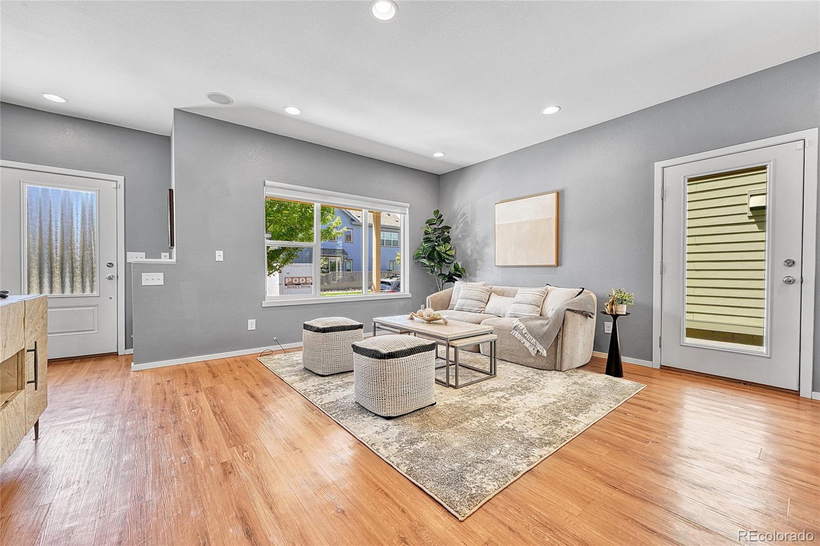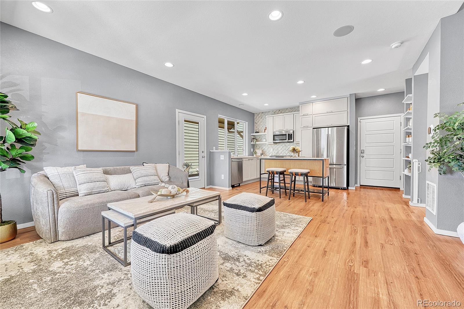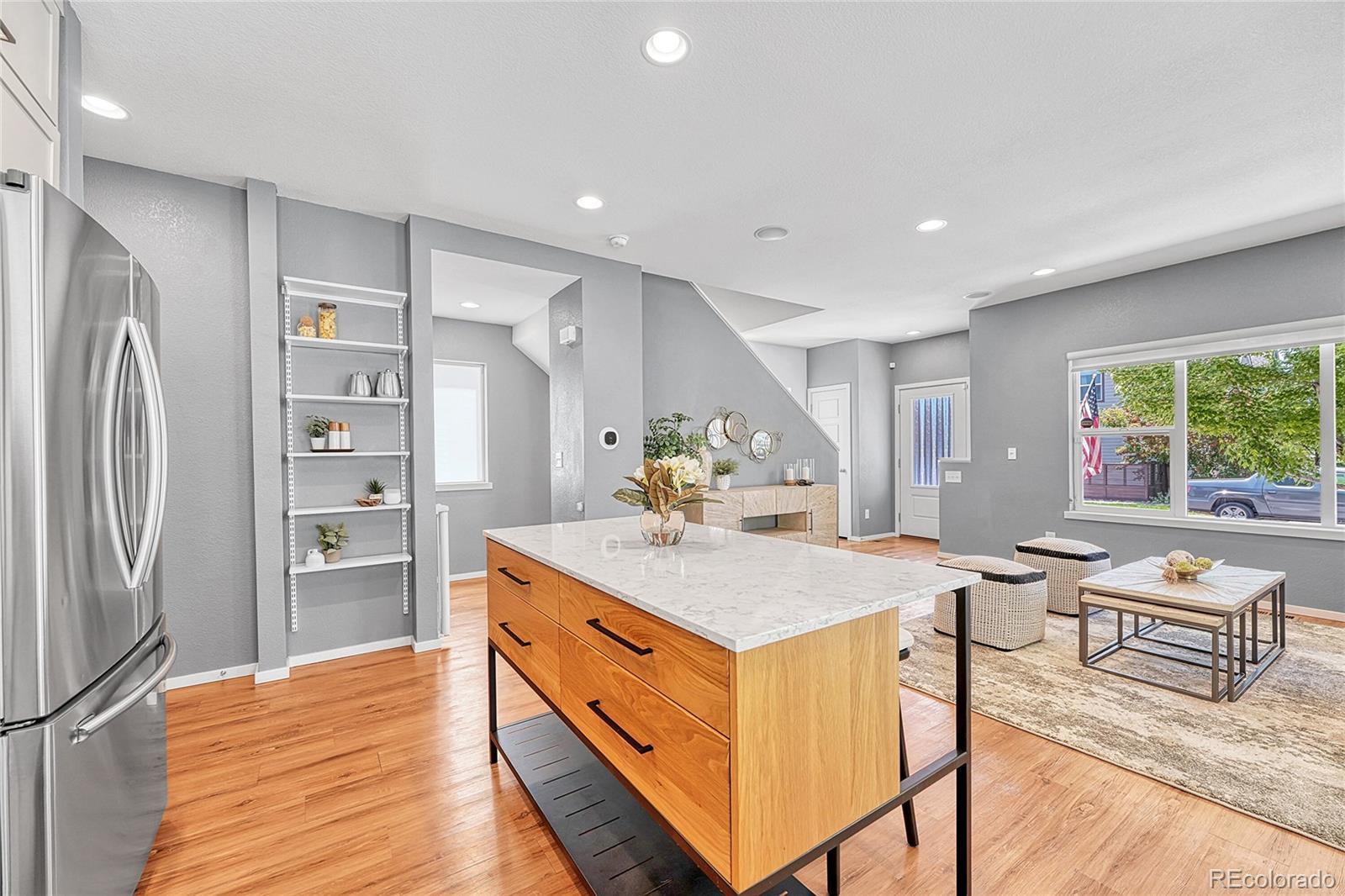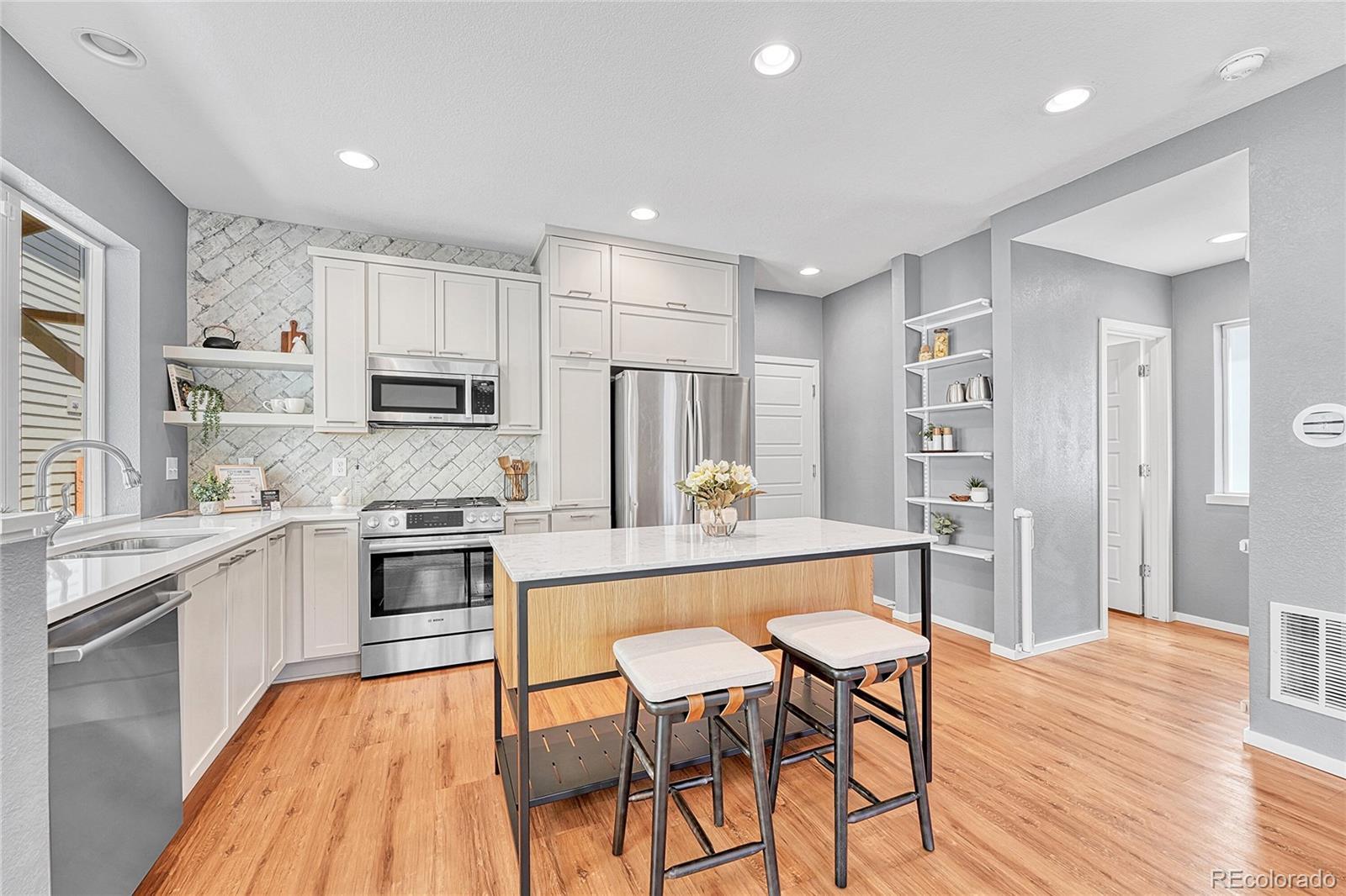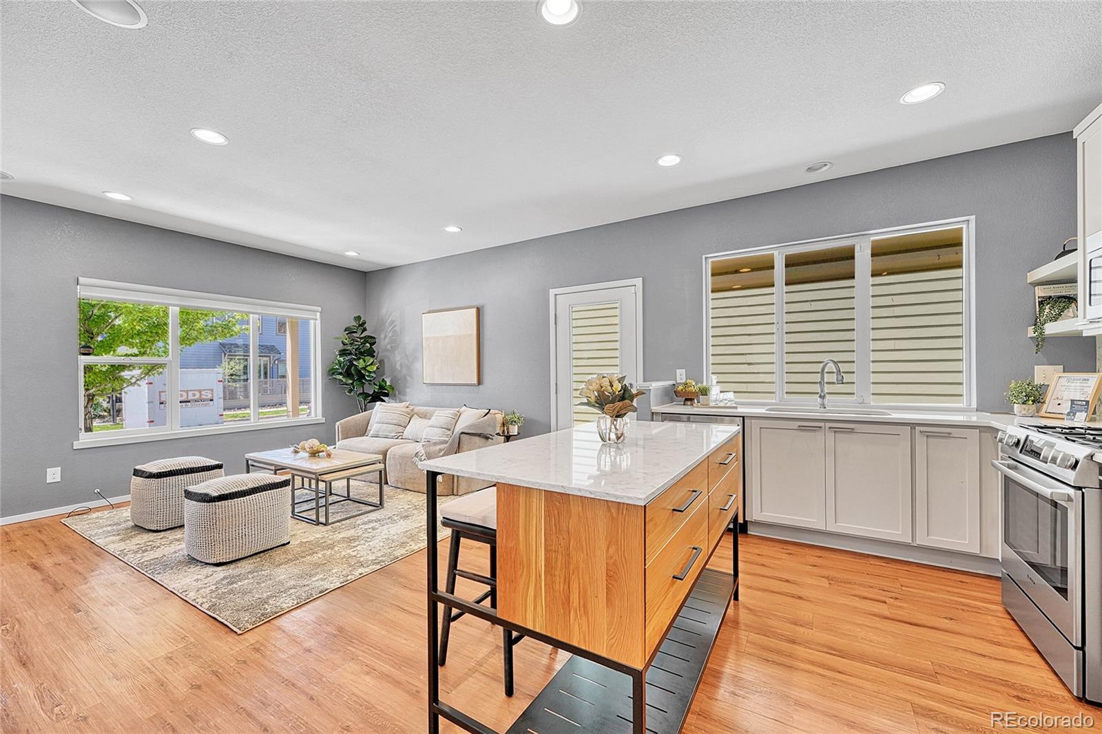 Welcome to this stunning 3-bedroom, 4-bathroom modern home nestled in the highly sought-after Midtown neighborhood of Denver. This beautifully designed residence features an open main level floorplan—perfect for entertaining or relaxing at home. Soaring ceilings and expansive windows fill the home with natural light, while sleek, modern finishes throughout create a sophisticated and welcoming atmosphere. The gourmet kitchen is a chef’s dream, complete with stainless steel appliances, quartz countertops, a large center island, and ample cabinetry. Each of the three spacious bedrooms includes its own ensuite bathroom, offering privacy and comfort for all. The primary suite is a luxurious retreat with a spa-like bathroom and generous walk-in closet. A convenient half bath on the main level adds to the functional layout, and the attached garage provides secure parking and extra storage. Enjoy Colorado’s sunshine from the private outdoor spaces—whether you're sipping coffee on the front porch or private primary balcony, or hosting friends on the deck. This move-in-ready home offers the perfect balance of indoor and outdoor living. Located just minutes from Downtown Denver, this home offers quick access to major highways, making commutes a breeze. You'll love the proximity to local schools, parks, and Midtown’s popular splash pad, along with fantastic restaurants, coffee shops, and a beloved neighborhood brewery all within walking distance. With style, space, and location, this is urban living at its best. Don’t miss your chance to own a home in one of Denver’s most vibrant and connected communities! NOTE: This home qualifies for the community reinvestment act potentially providing 1.75% of the loan amount with a cap of $7,000 as a credit towards buyer’s closing costs, pre-paids and discount points. Contact listing agent for more details.