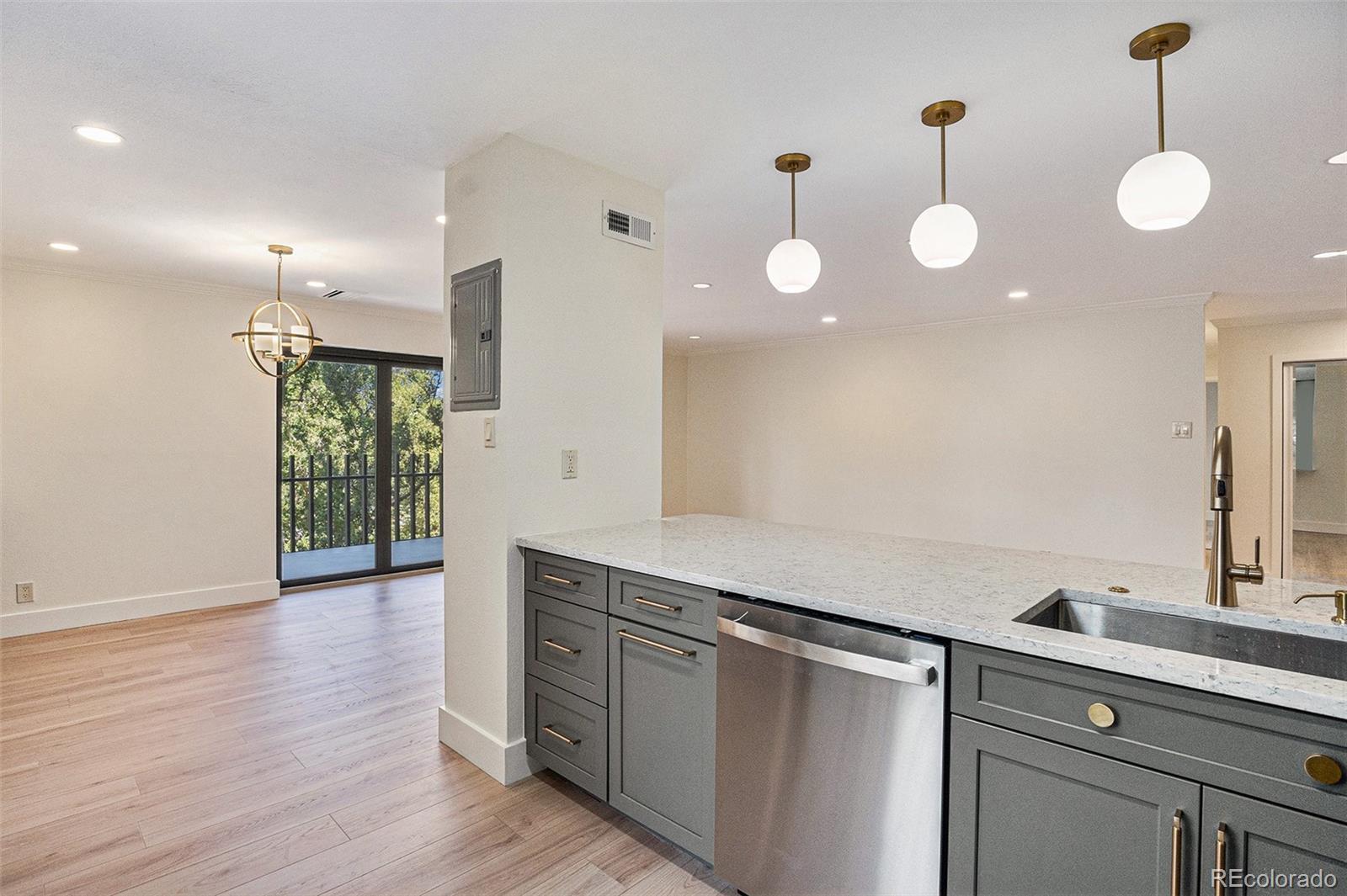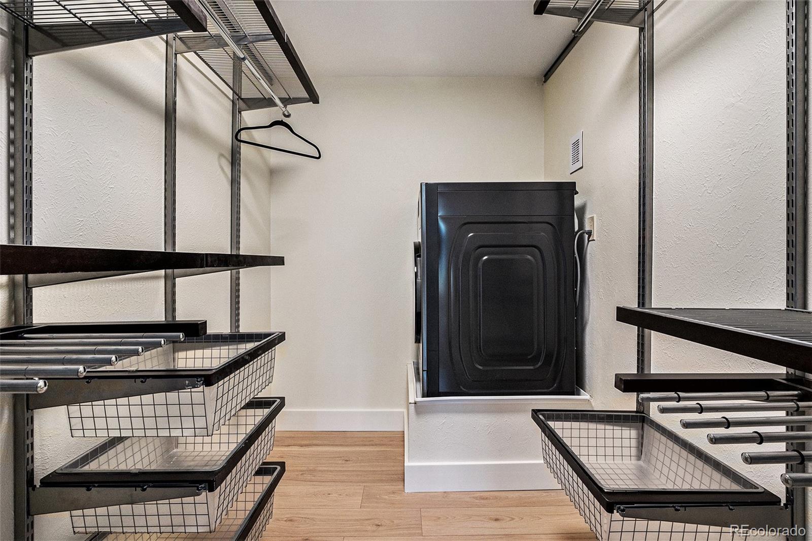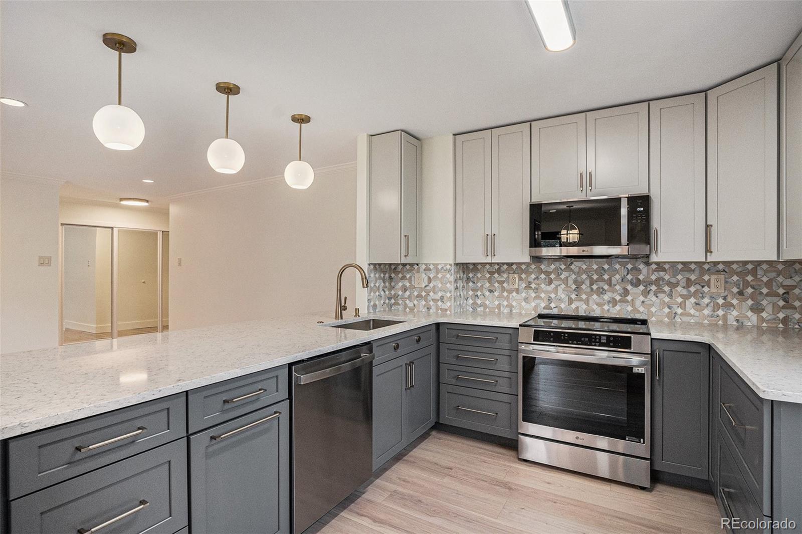 Renovated and Remodeled, this west-facing end unit Washington Park condo is not only in a highly desirable area, it also features a whole new interior. Everything is New. Starting with the beautiful Nu Core waterproof flooring and 5-inch baseboards.Quartz Counters, Gorgeous Backsplash, New kitchen cabinets, and all New Stainless appliances featuring an LG Induction and Air fryer Stove/Oven. Large Balcony for your enjoyment facing Marion Parkway. Both Bathrooms have New Cabinets, Quartz counters, and a Remodeled Shower/Bathtub. New Electrical box and Plumbing have been updated to accommodate a Newly added Samsung Bespoke AI all-in-one washer-dryer combo. The Primary Bedroom Walk-in closet has Elfa shelves and storage. The Amenities are abundant. Concierge front desk service. Indoor and Outdoor pools. Hot tub and Sauna. Fitness center, Beautiful Party room with a complete kitchen, and a Big screen television. Game room with Foosball, Ping pong, and Pool tables. A library and business center provides a collaborative space with extensive resources, including Share a book or Borrow a book, and a Copier/Printer. Bicycle storage and 6 Private EV charging stations. Fees include central Heat/AC and unlimited Hot water. Just steps away from Wash Park, Old Gaylord street, Shopping, Coffee shops, and Dining options. Located between Lodo and Cherry Creek. This Home has it all.