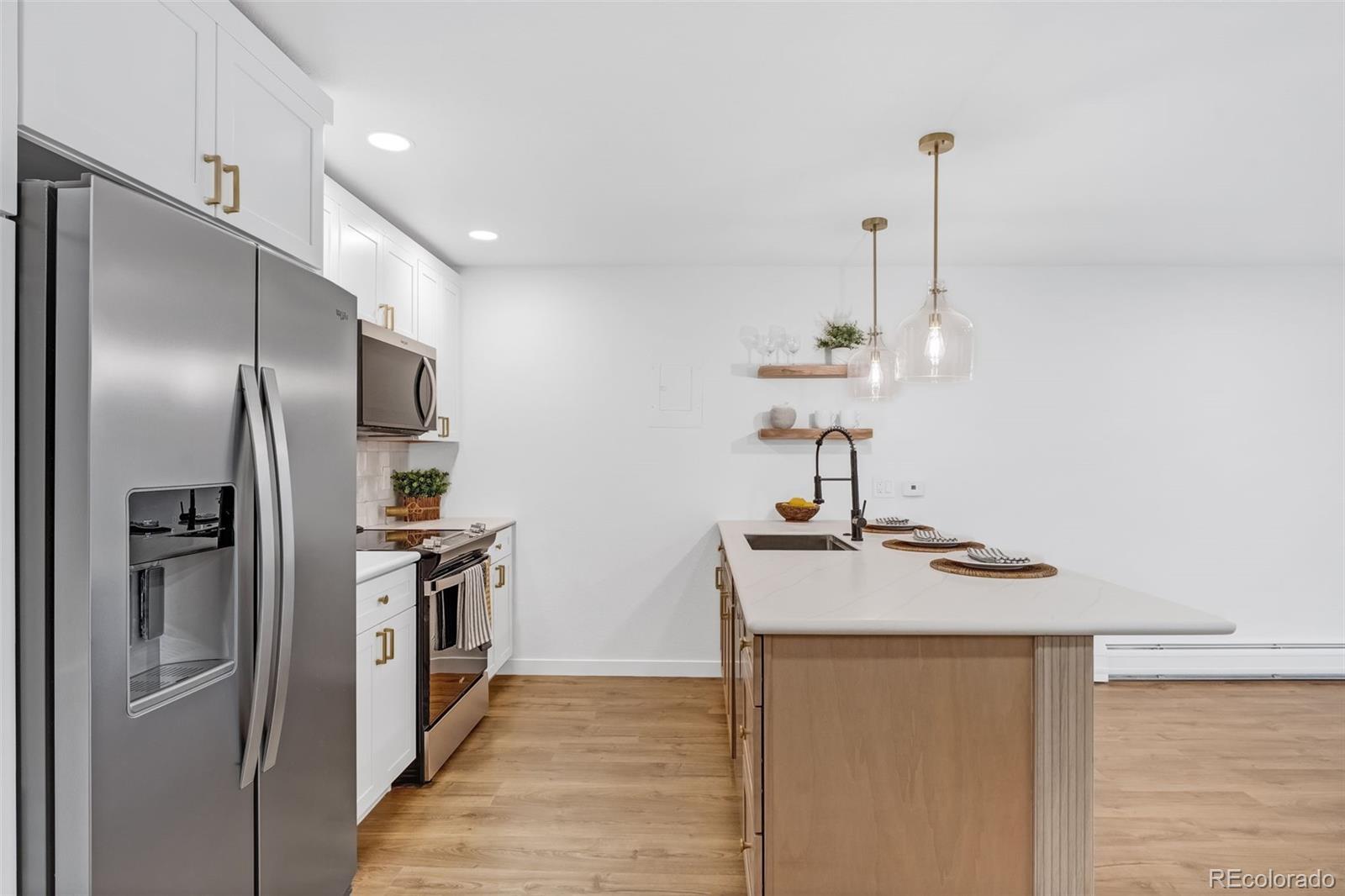 Welcome to your stunning new condominium at the base of the foothills in Golden, Colorado. From the moment you walk thru the new wood paneled entry door, you’ll see that no detail has been overlooked in this extensive remodel. Featuring upscale finishes in the latest design trends, the unit boasts beautiful new kitchen cabinets, countertops, appliances, laminate wood floors, interior doors, and bathroom fixtures. Distinctive touches such as a free-standing bathroom vanity, mosaic floor tile, unique lighting fixtures and hardware add to the chic look. The top-floor unit also has all-new paint and trim with plenty of recessed ceiling lighting to provide a bright, open feel with great views. Overlooking gorgeous Table Mountain, this prime location offers easy access to downtown Golden, the Light Rail Station, Colorado School of Mines, and I-70. Resort-style amenities include a private lake and garden, gym, indoor and outdoor pool, hot tub, sauna, volleyball/basketball courts, dog run, and large clubhouse. This beauty is move-in ready and will not last long!
