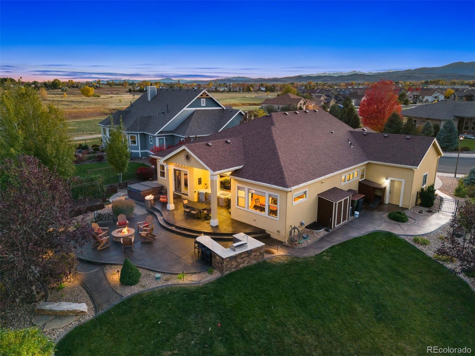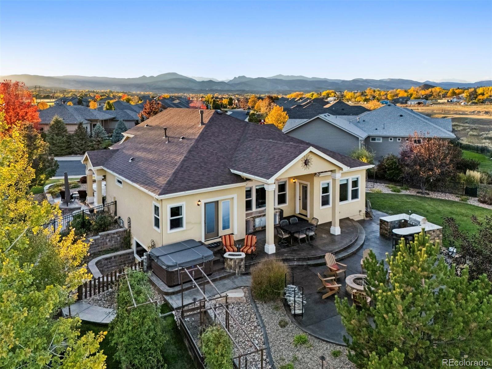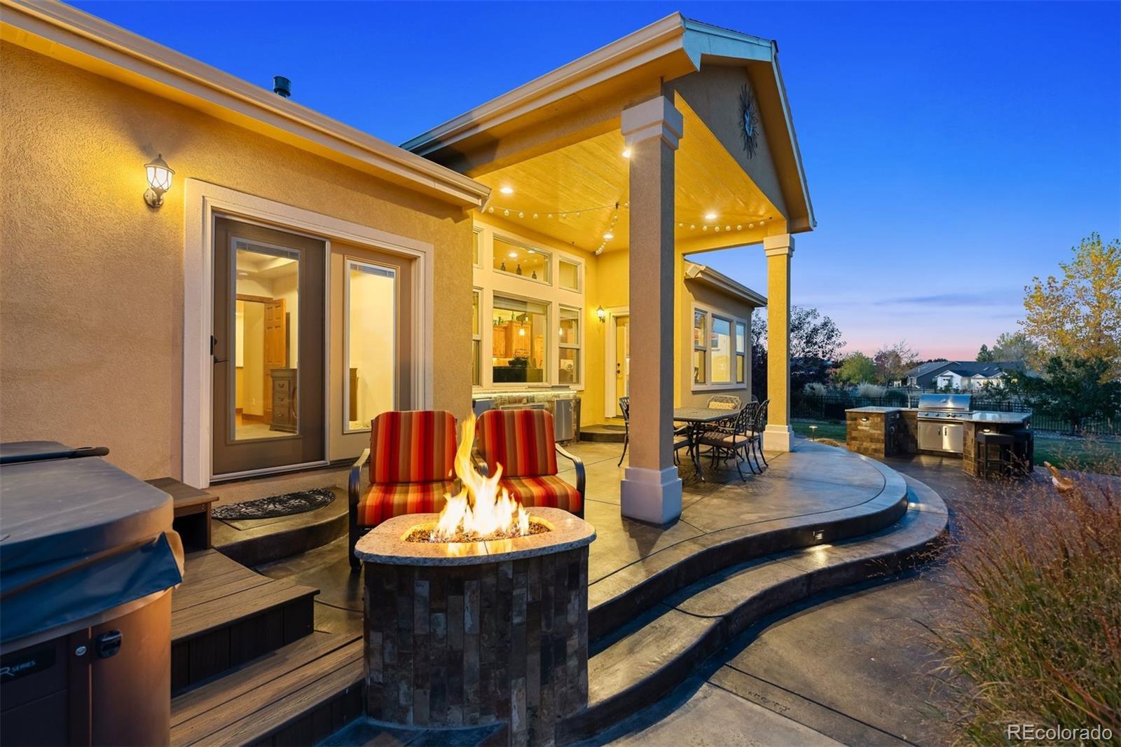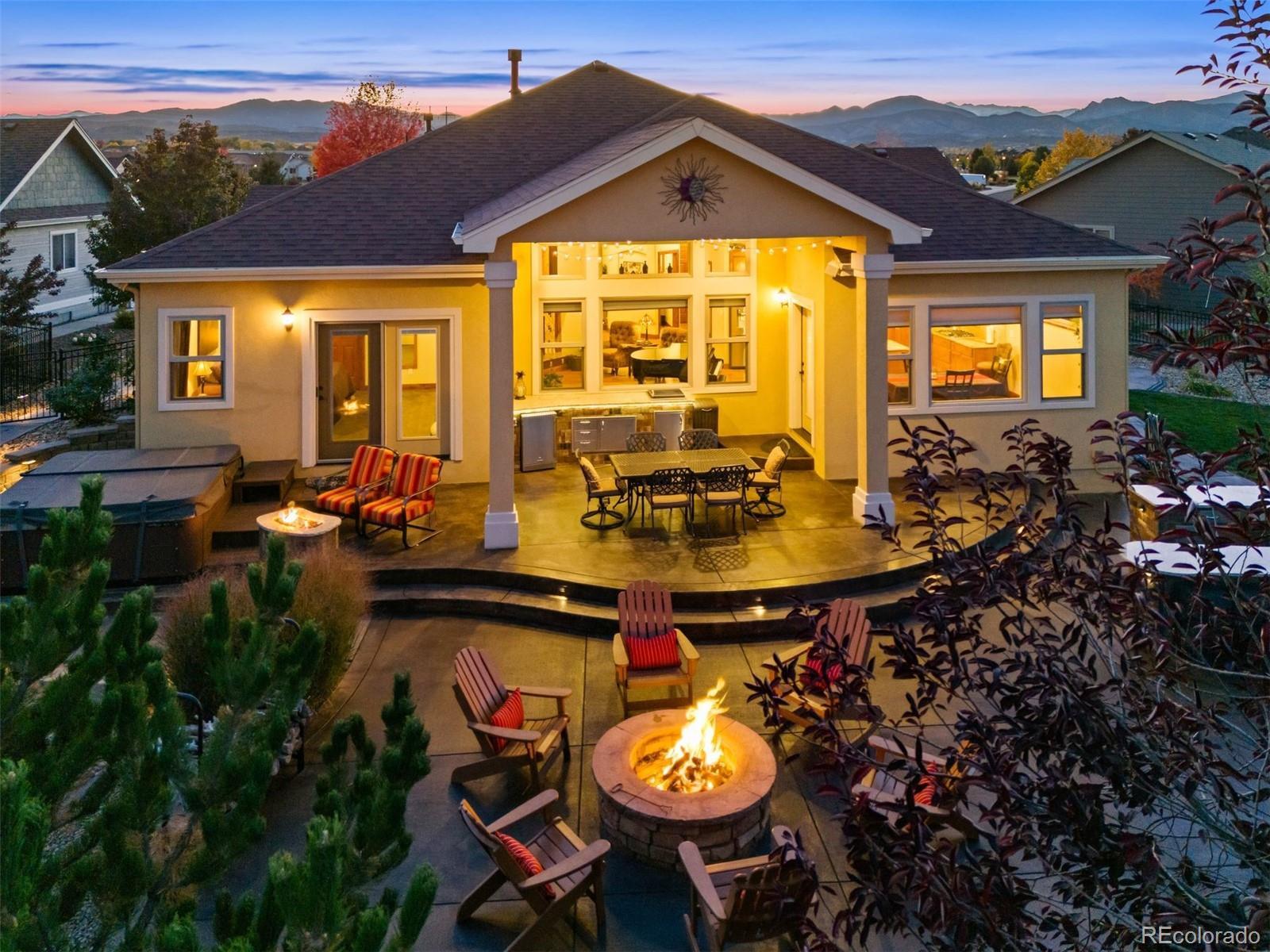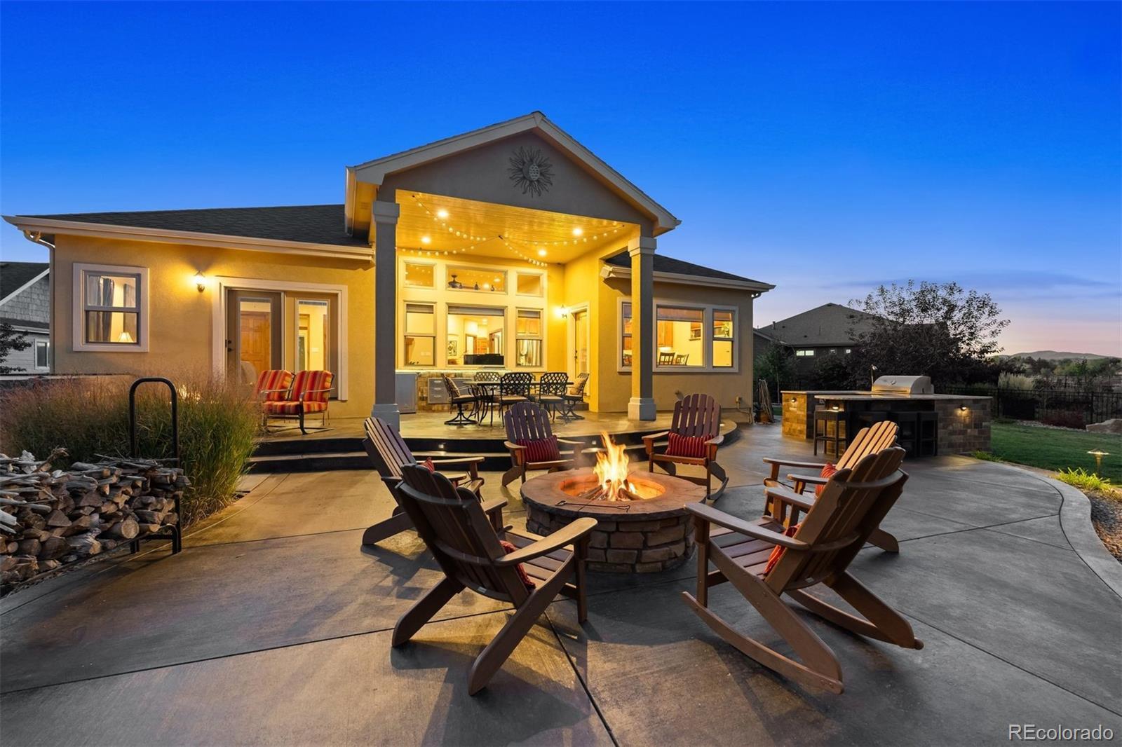 Where Quiet Meets Colorado Beauty. Experience elevated living in this spacious, light-filled home designed for comfort, versatility, and quiet luxury. The main level offers two private suites-ideal for multi-generational living or hosting guests with ease.The open-concept kitchen flows seamlessly into the dining and living areas, featuring granite countertops, hardwood floors, and stainless steel appliances and a beautiful office with French doors. Between the basement and main level, soundproof insulation ensures a peaceful environment, minimizing noise transfer and enhancing everyday comfort.The finished basement extends the home's livable space with a dedicated gym tucked behind sliding barn doors, and flexible room configurations. A central music system connects eight zones throughout the home, indoors and out, creating a seamless audio experience for entertaining or unwinding.Step outside to a beautifully landscaped backyard retreat with two fire pits (one gas, one wood-burning), a large patio, and hardwired dusk-to-dawn lighting. Backing to open space with tranquil water views, this outdoor sanctuary offers the perfect setting for sunset gatherings or peaceful mornings. With three bedrooms, four bathrooms, and thoughtful upgrades throughout, this home delivers both style and substance.