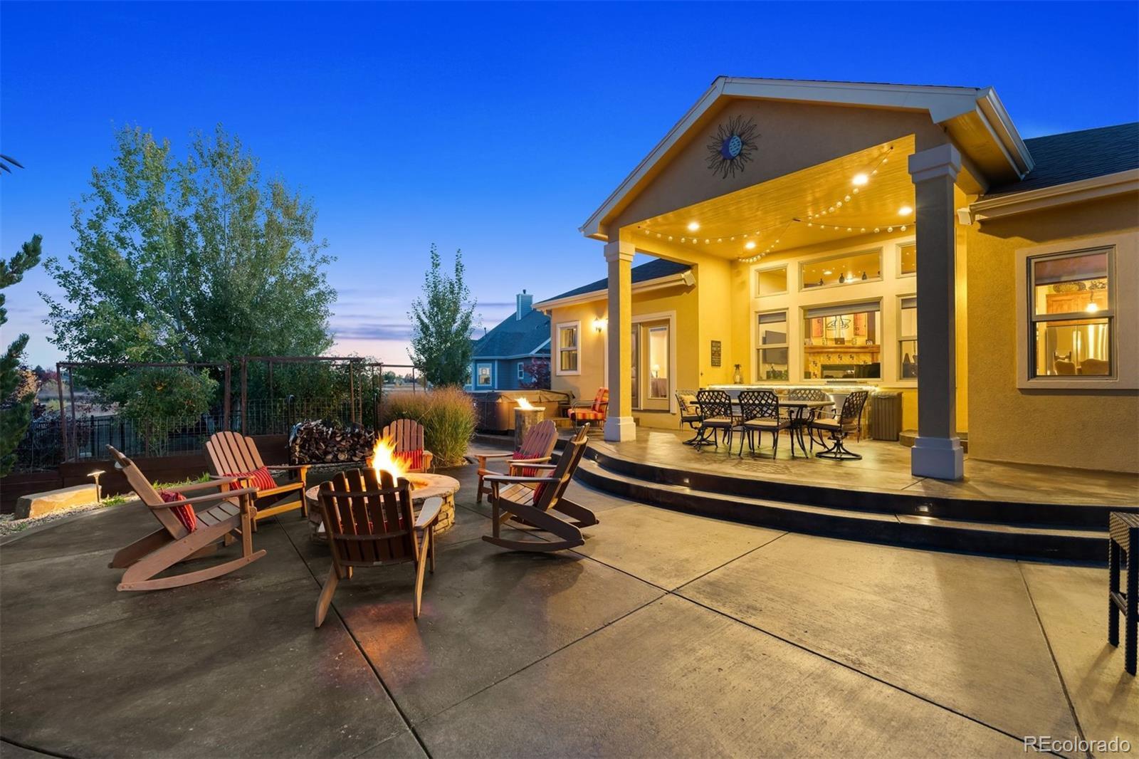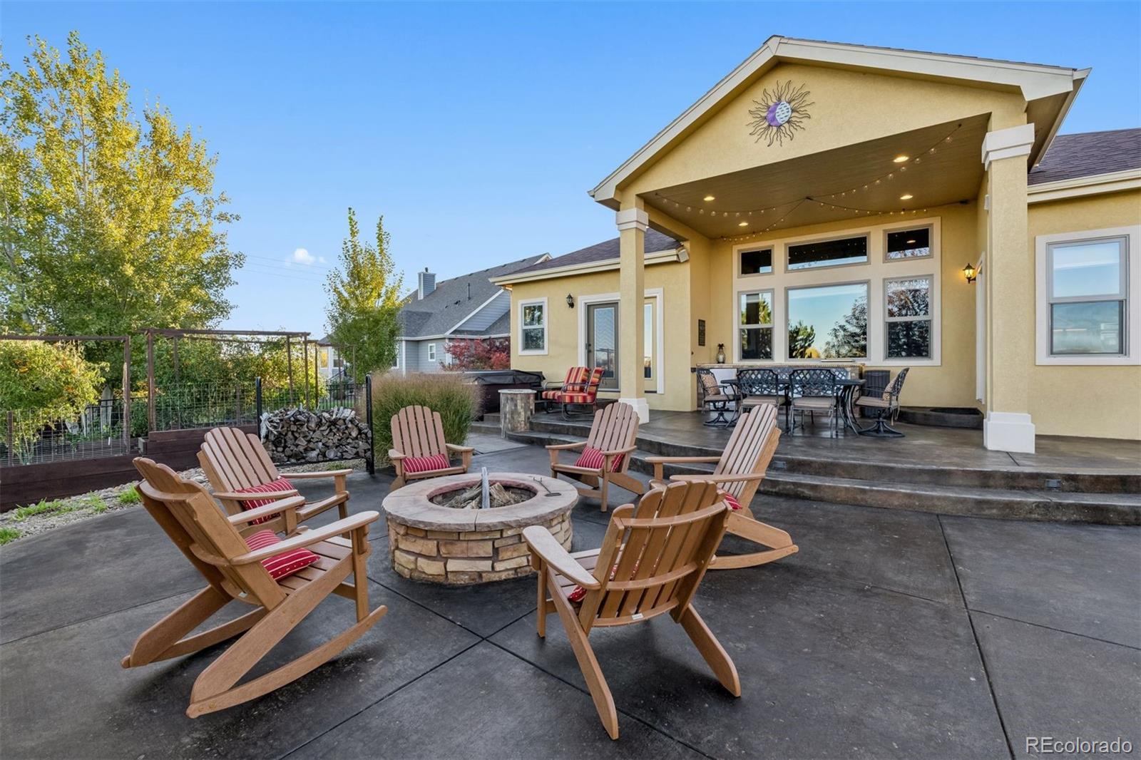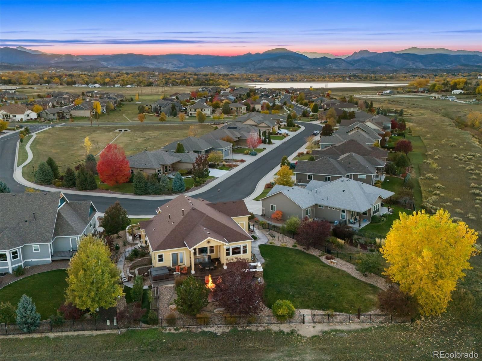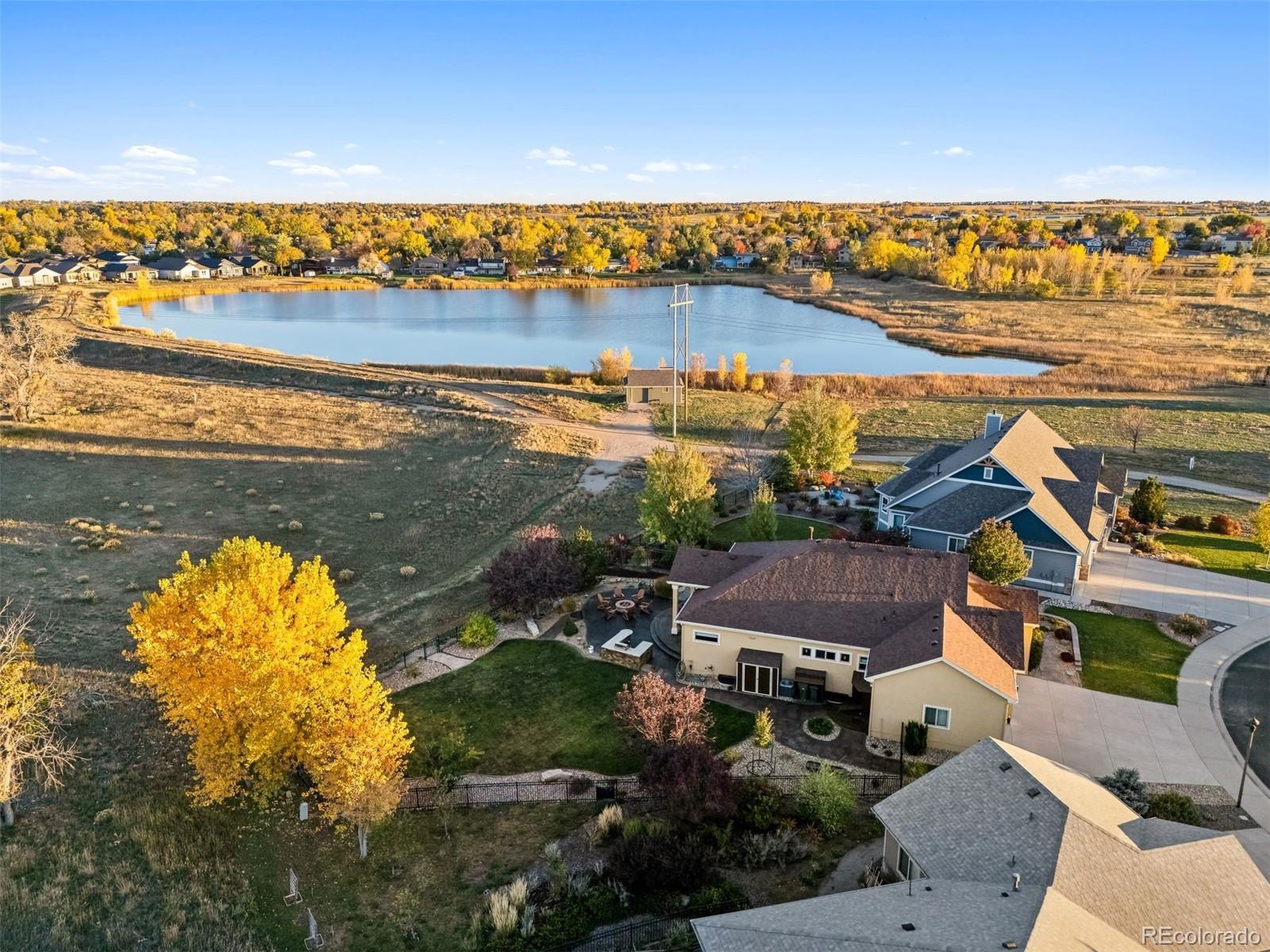 Where Quiet Meets Colorado Beauty. Experience elevated living in this spacious, light-filled home designed for comfort, versatility, and quiet luxury. The main level offers two private suites-ideal for multi-generational living or hosting guests with ease.The open-concept kitchen flows seamlessly into the dining and living areas, featuring granite countertops, hardwood floors, and stainless steel appliances and a beautiful office with French doors. Between the basement and main level, soundproof insulation ensures a peaceful environment, minimizing noise transfer and enhancing everyday comfort.The finished basement extends the home's livable space with a dedicated gym tucked behind sliding barn doors, and flexible room configurations. A central music system connects eight zones throughout the home, indoors and out, creating a seamless audio experience for entertaining or unwinding.Step outside to a beautifully landscaped backyard retreat with two fire pits (one gas, one wood-burning), a large patio, and hardwired dusk-to-dawn lighting. Backing to open space with tranquil water views, this outdoor sanctuary offers the perfect setting for sunset gatherings or peaceful mornings. With three bedrooms, four bathrooms, and thoughtful upgrades throughout, this home delivers both style and substance.