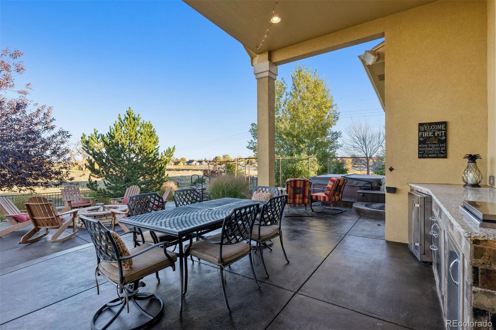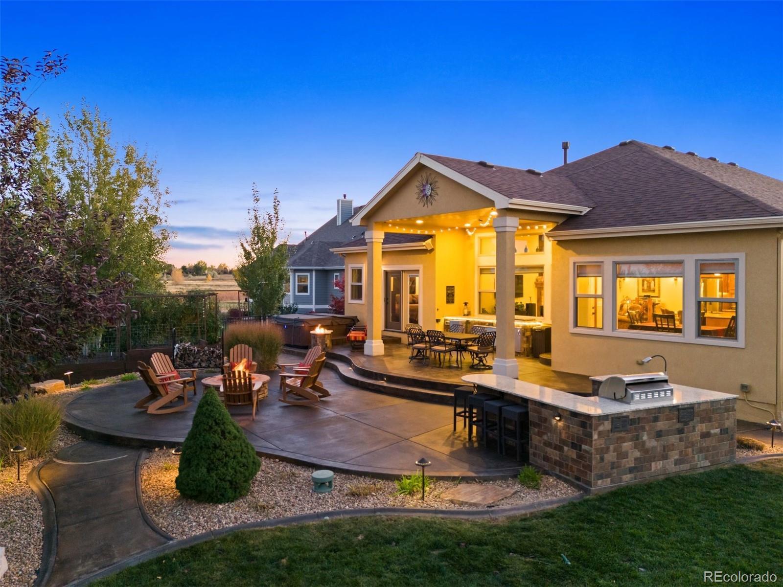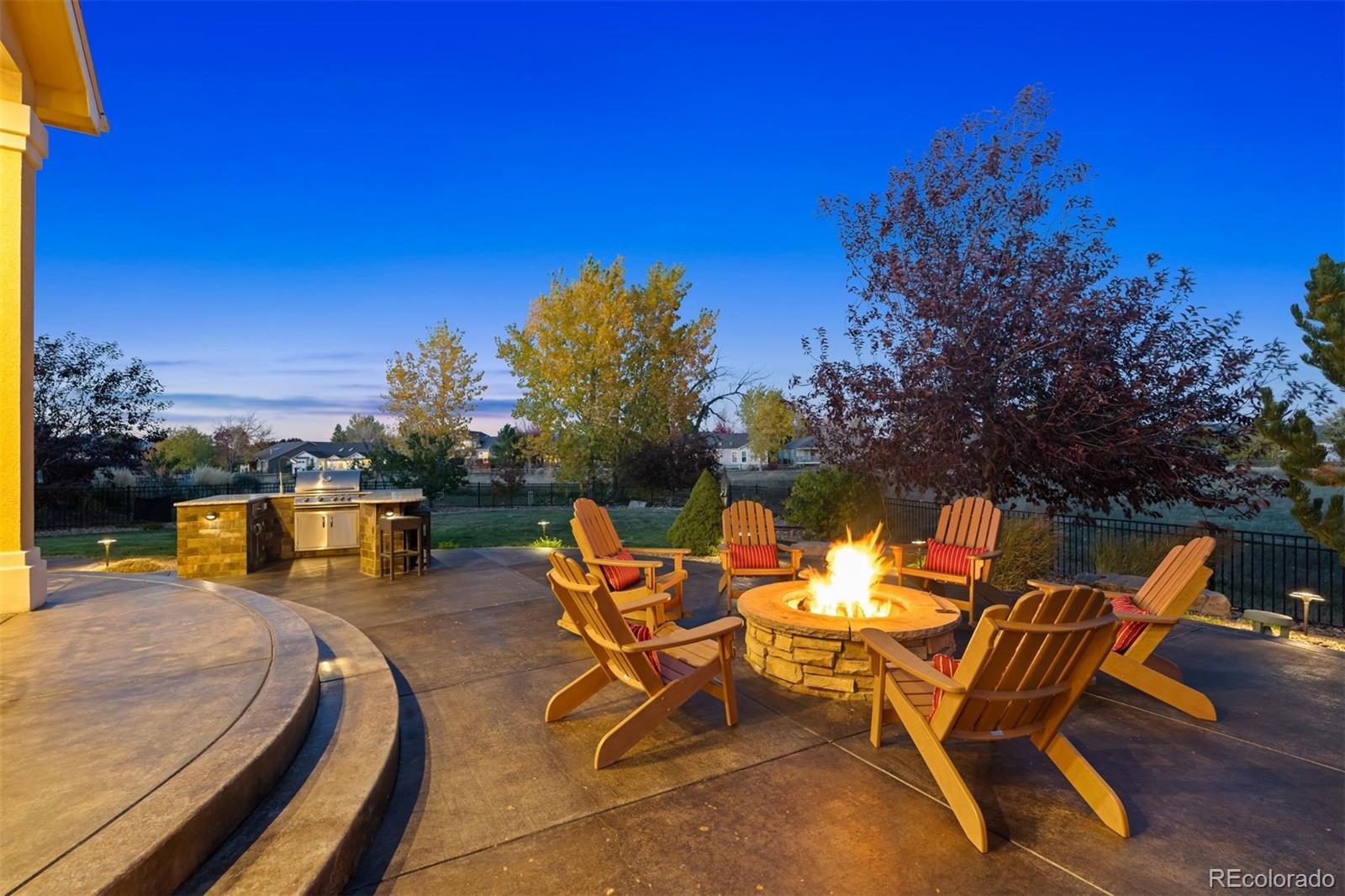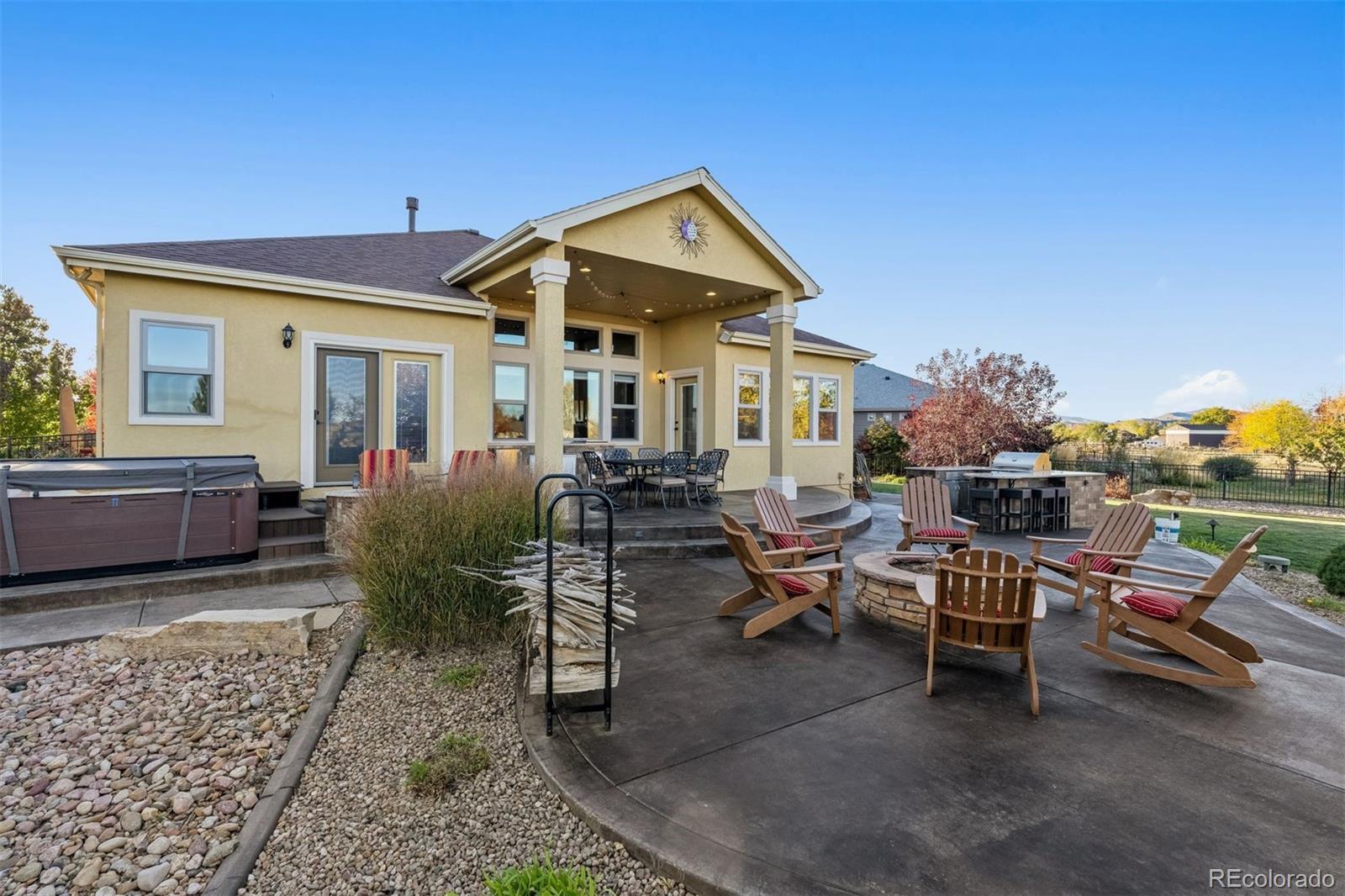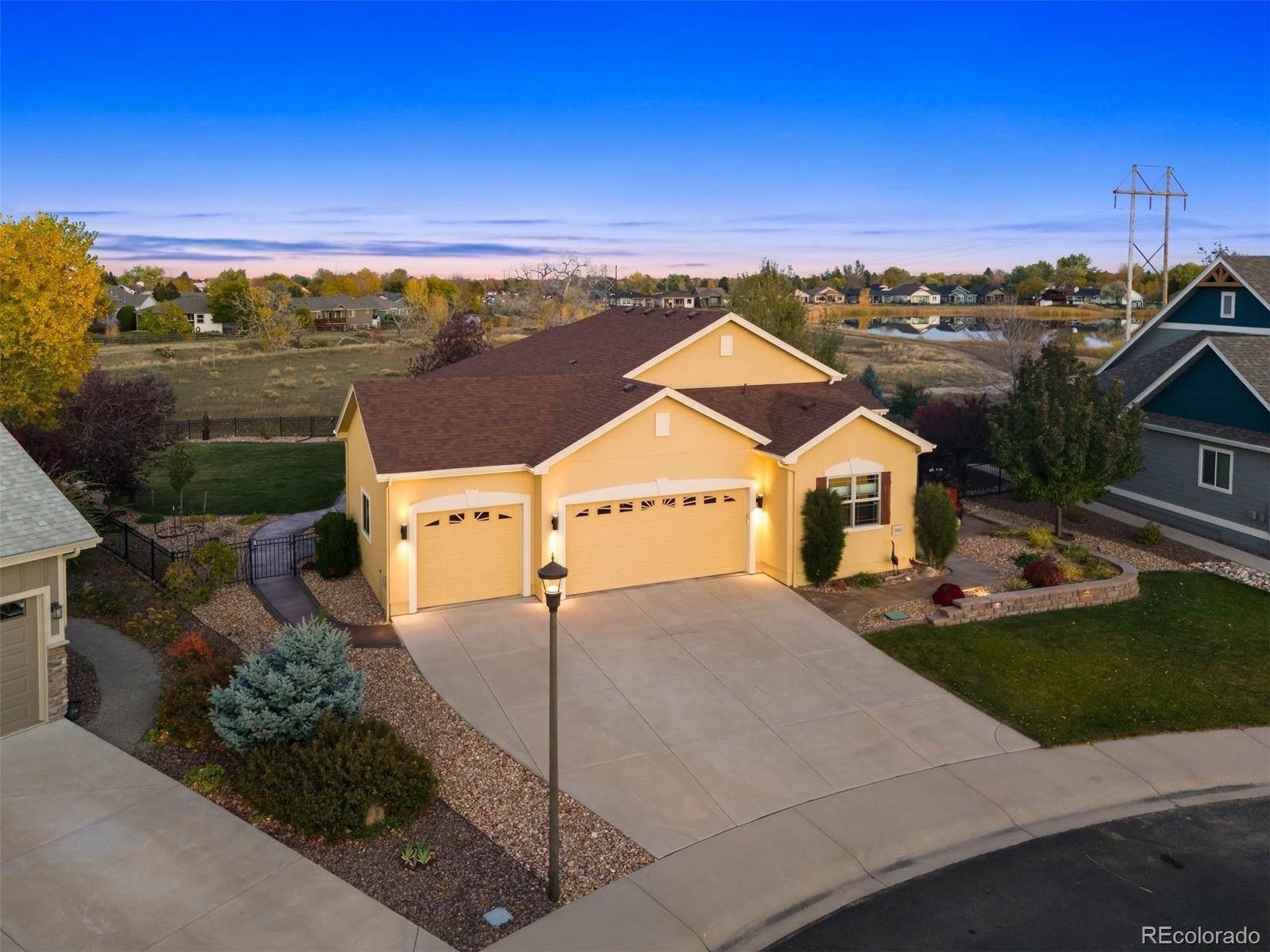 Where Quiet Meets Colorado Beauty. Experience elevated living in this spacious, light-filled home designed for comfort, versatility, and quiet luxury. The main level offers two private suites-ideal for multi-generational living or hosting guests with ease.The open-concept kitchen flows seamlessly into the dining and living areas, featuring granite countertops, hardwood floors, and stainless steel appliances and a beautiful office with French doors. Between the basement and main level, soundproof insulation ensures a peaceful environment, minimizing noise transfer and enhancing everyday comfort.The finished basement extends the home's livable space with a dedicated gym tucked behind sliding barn doors, and flexible room configurations. A central music system connects eight zones throughout the home, indoors and out, creating a seamless audio experience for entertaining or unwinding.Step outside to a beautifully landscaped backyard retreat with two fire pits (one gas, one wood-burning), a large patio, and hardwired dusk-to-dawn lighting. Backing to open space with tranquil water views, this outdoor sanctuary offers the perfect setting for sunset gatherings or peaceful mornings. With three bedrooms, four bathrooms, and thoughtful upgrades throughout, this home delivers both style and substance.