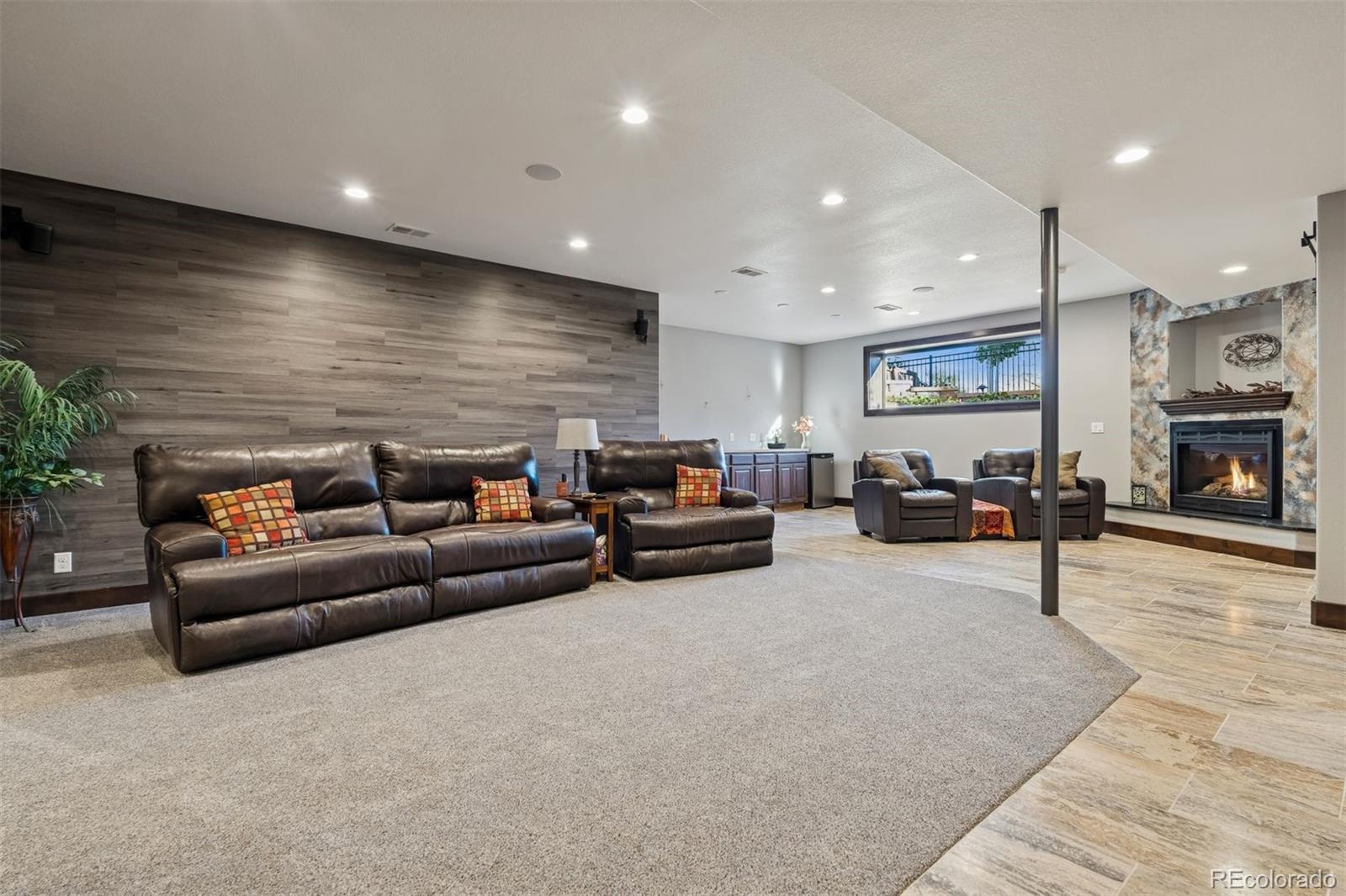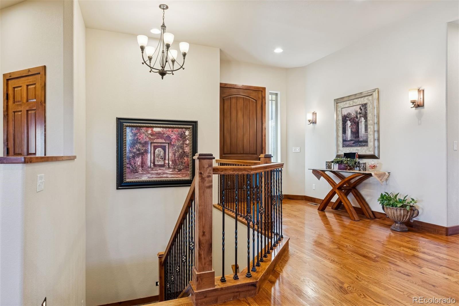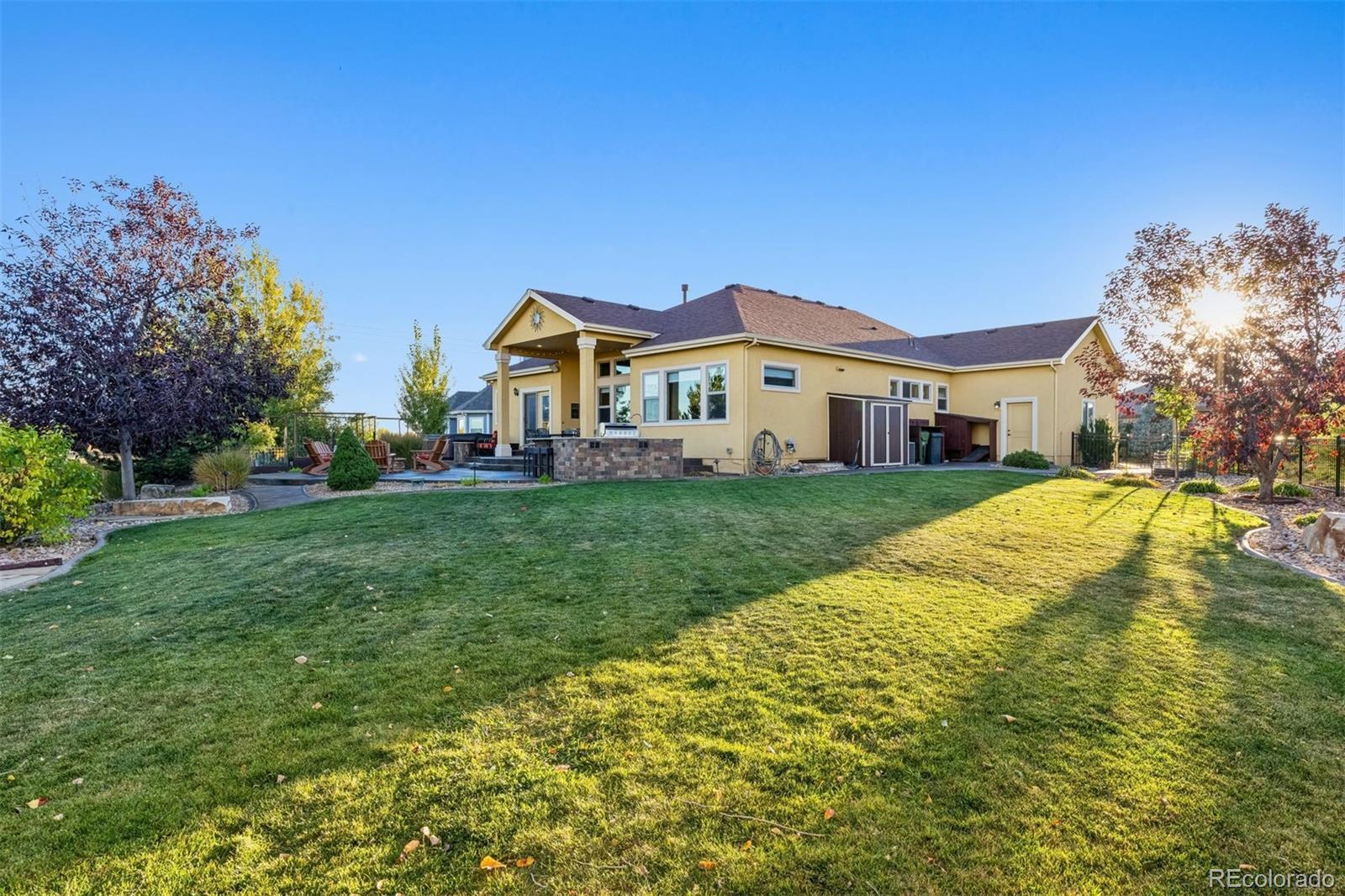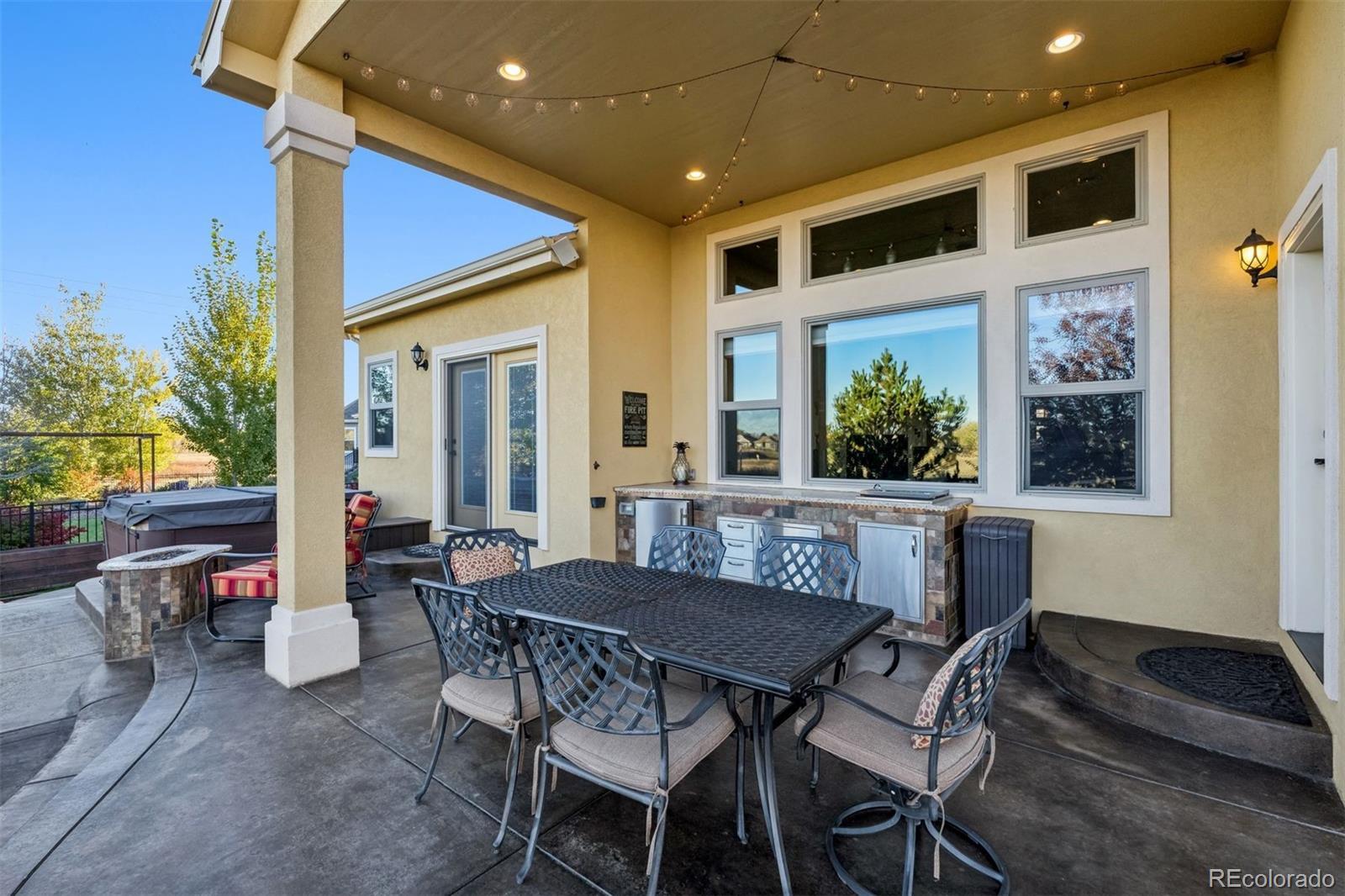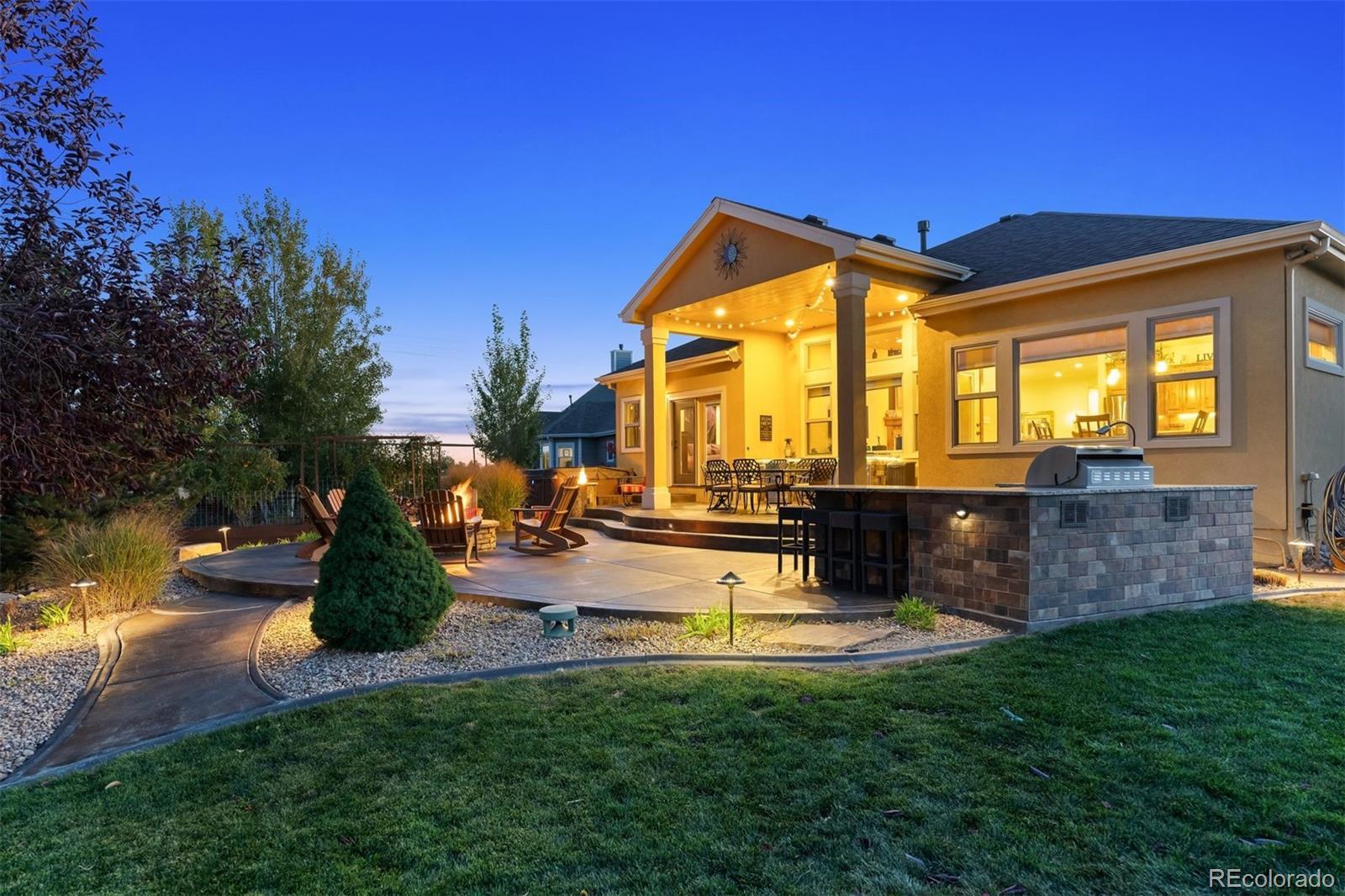 Where Quiet Meets Colorado Beauty. Experience elevated living in this spacious, light-filled home designed for comfort, versatility, and quiet luxury. The main level offers two private suites-ideal for multi-generational living or hosting guests with ease.The open-concept kitchen flows seamlessly into the dining and living areas, featuring granite countertops, hardwood floors, and stainless steel appliances and a beautiful office with French doors. Between the basement and main level, soundproof insulation ensures a peaceful environment, minimizing noise transfer and enhancing everyday comfort.The finished basement extends the home's livable space with a dedicated gym tucked behind sliding barn doors, and flexible room configurations. A central music system connects eight zones throughout the home, indoors and out, creating a seamless audio experience for entertaining or unwinding.Step outside to a beautifully landscaped backyard retreat with two fire pits (one gas, one wood-burning), a large patio, and hardwired dusk-to-dawn lighting. Backing to open space with tranquil water views, this outdoor sanctuary offers the perfect setting for sunset gatherings or peaceful mornings. With three bedrooms, four bathrooms, and thoughtful upgrades throughout, this home delivers both style and substance.