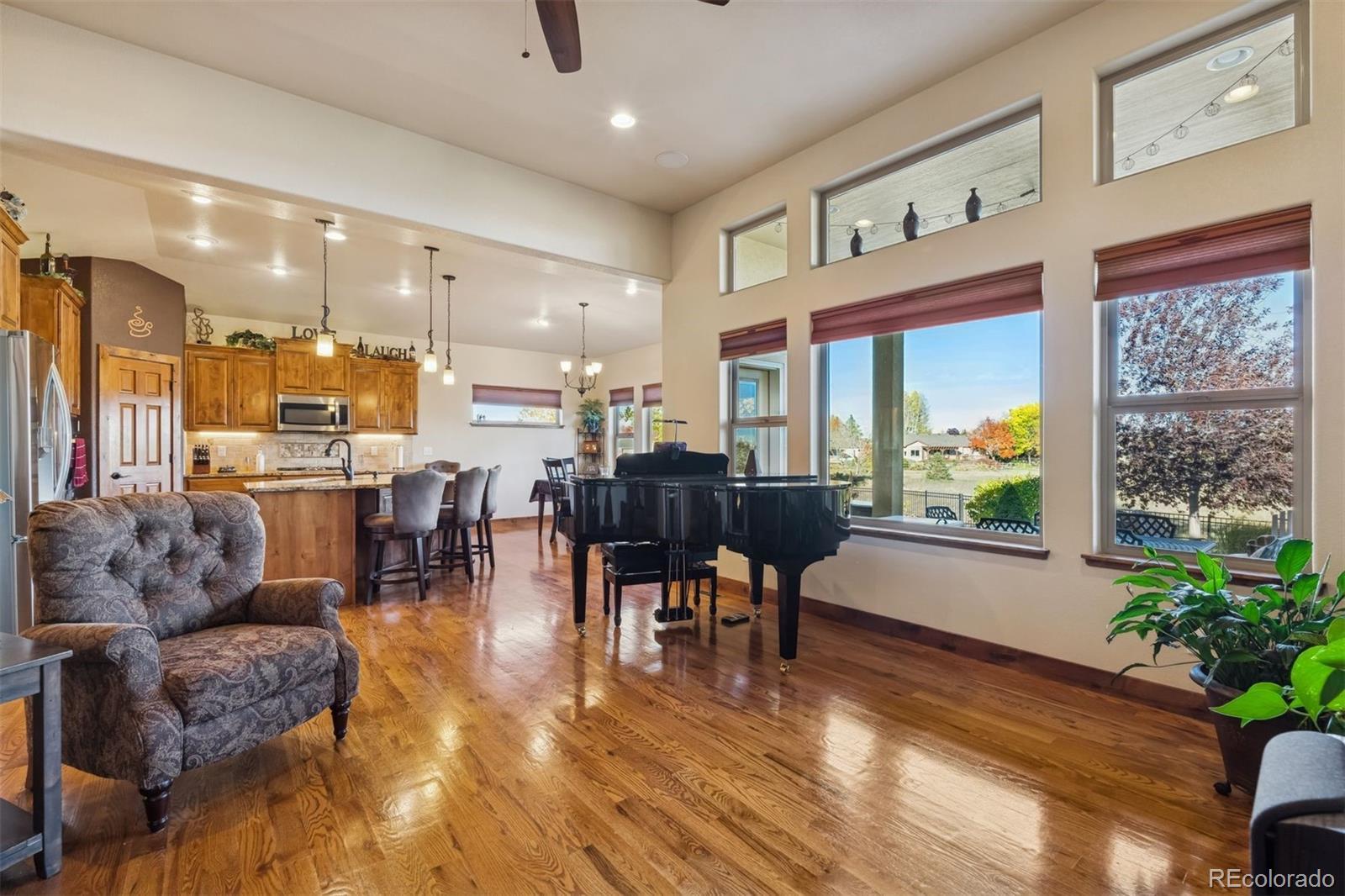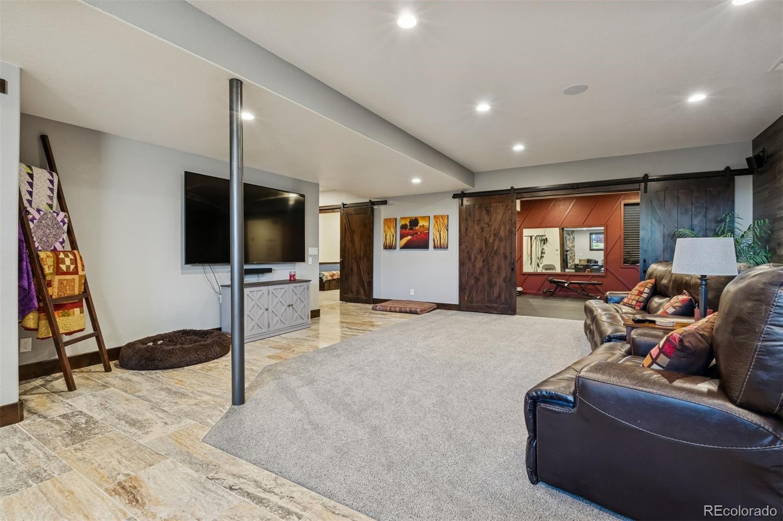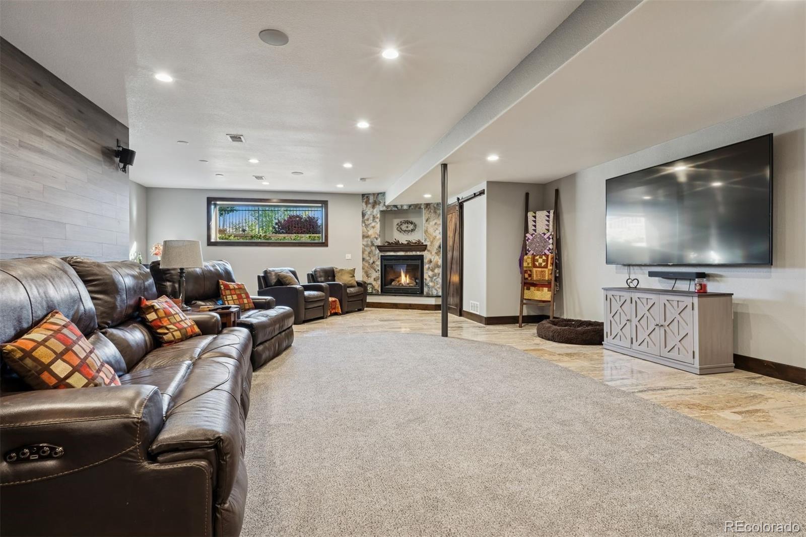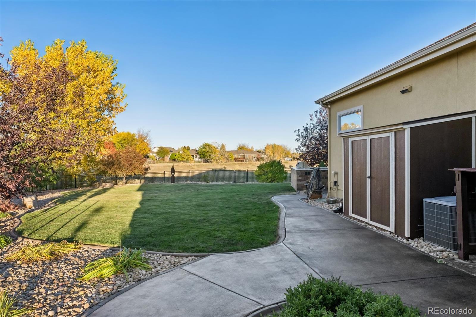 Where Quiet Meets Colorado Beauty. Experience elevated living in this spacious, light-filled home designed for comfort, versatility, and quiet luxury. The main level offers two private suites-ideal for multi-generational living or hosting guests with ease.The open-concept kitchen flows seamlessly into the dining and living areas, featuring granite countertops, hardwood floors, and stainless steel appliances and a beautiful office with French doors. Between the basement and main level, soundproof insulation ensures a peaceful environment, minimizing noise transfer and enhancing everyday comfort.The finished basement extends the home's livable space with a dedicated gym tucked behind sliding barn doors, and flexible room configurations. A central music system connects eight zones throughout the home, indoors and out, creating a seamless audio experience for entertaining or unwinding.Step outside to a beautifully landscaped backyard retreat with two fire pits (one gas, one wood-burning), a large patio, and hardwired dusk-to-dawn lighting. Backing to open space with tranquil water views, this outdoor sanctuary offers the perfect setting for sunset gatherings or peaceful mornings. With three bedrooms, four bathrooms, and thoughtful upgrades throughout, this home delivers both style and substance.
