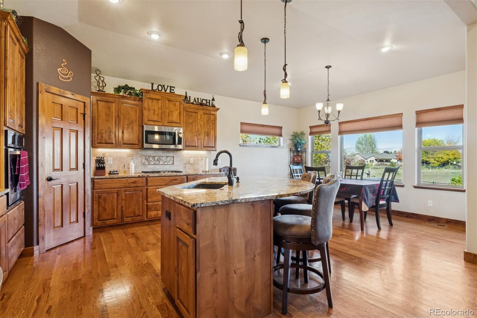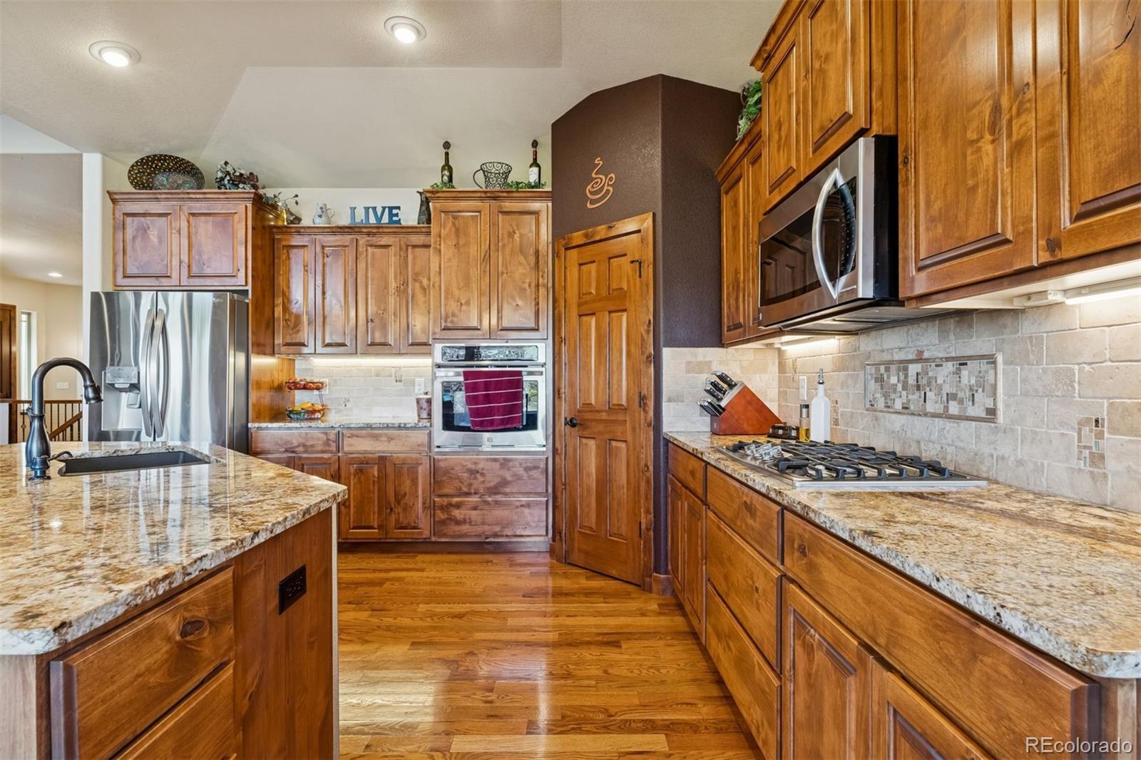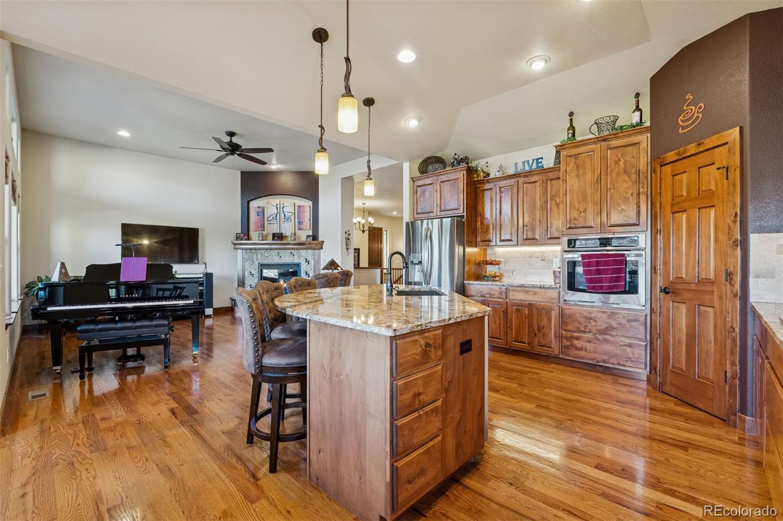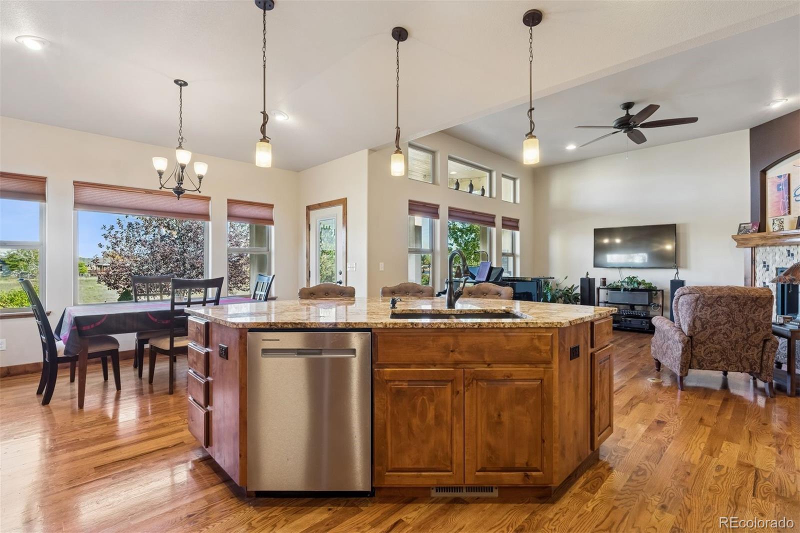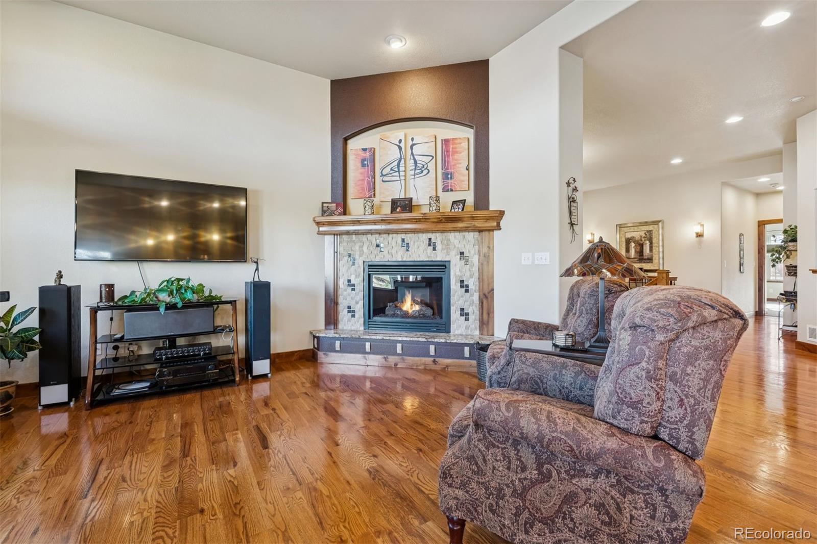 Where Quiet Meets Colorado Beauty. Experience elevated living in this spacious, light-filled home designed for comfort, versatility, and quiet luxury. The main level offers two private suites-ideal for multi-generational living or hosting guests with ease.The open-concept kitchen flows seamlessly into the dining and living areas, featuring granite countertops, hardwood floors, and stainless steel appliances and a beautiful office with French doors. Between the basement and main level, soundproof insulation ensures a peaceful environment, minimizing noise transfer and enhancing everyday comfort.The finished basement extends the home's livable space with a dedicated gym tucked behind sliding barn doors, and flexible room configurations. A central music system connects eight zones throughout the home, indoors and out, creating a seamless audio experience for entertaining or unwinding.Step outside to a beautifully landscaped backyard retreat with two fire pits (one gas, one wood-burning), a large patio, and hardwired dusk-to-dawn lighting. Backing to open space with tranquil water views, this outdoor sanctuary offers the perfect setting for sunset gatherings or peaceful mornings. With three bedrooms, four bathrooms, and thoughtful upgrades throughout, this home delivers both style and substance.