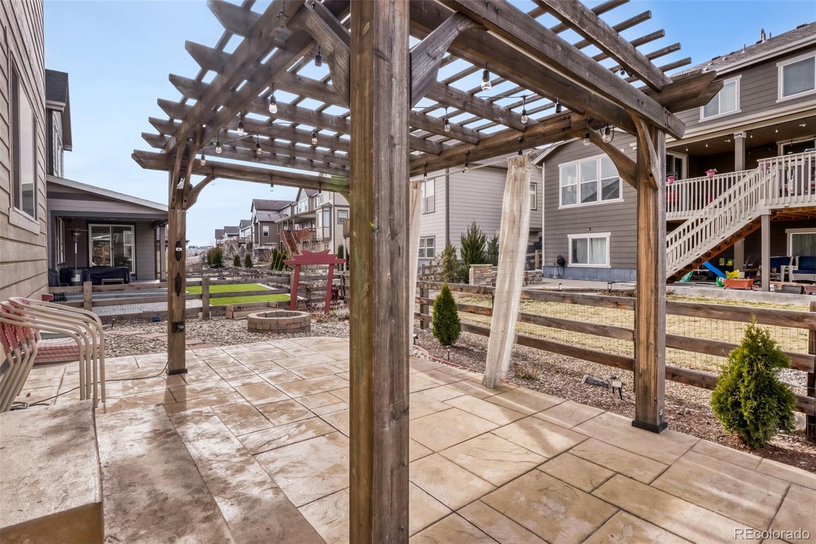 Gorgeous 5-Bedroom Home in Overlook at Cherry Creek! This stunning 5-bedroom, 3-bathroom home sits on a desirable corner lot with beautiful views. The main level features a chef-inspired kitchen complete with granite countertops, a large island, pantry, gas cooktop, range hood, and double ovens. Enjoy a spacious family room with a cozy fireplace, dining room, main-floor bedroom, and a ¾ bathroom—perfect for guests or a home office. Upstairs, you’ll find a generous loft, a luxurious primary suite with dual walk-in closets and a private ensuite bath, three additional bedrooms, a full bathroom, and a conveniently located laundry room. The fully fenced and professionally landscaped backyard is a true oasis, featuring a waterfall, outdoor fire pit, and covered patio—ideal for entertaining or relaxing year-round. Additional highlights include fresh interior paint, dual HVAC systems, a whole-house humidifier, and a radon mitigation system. The unfinished basement offers over 1,300 square feet ready for your custom finishes. Located in a community with award-winning Douglas County Schools and close to American Academy Charter School, parks and trails, shopping, and entertainment. This home truly has it all—schedule your private showing today!