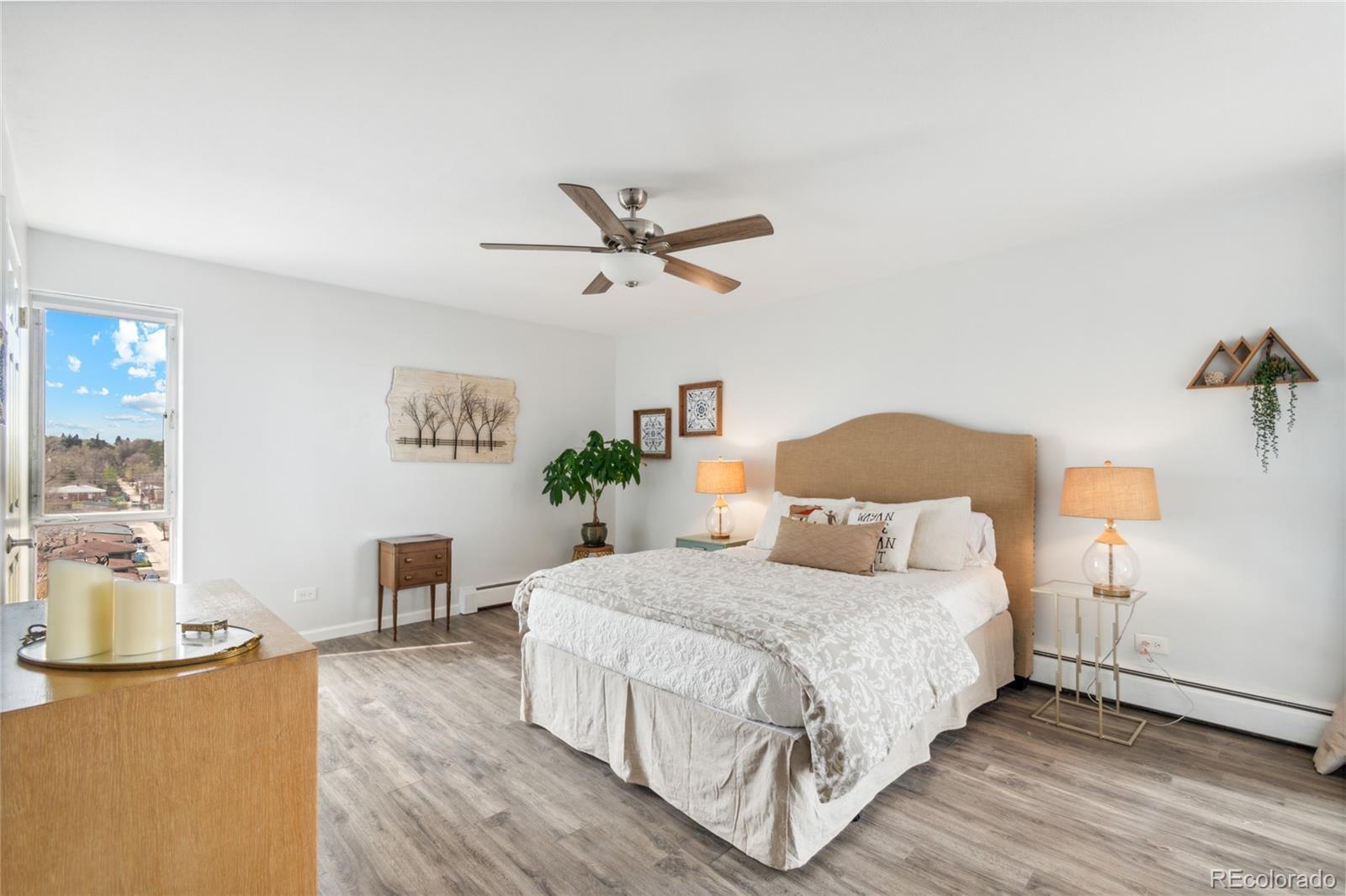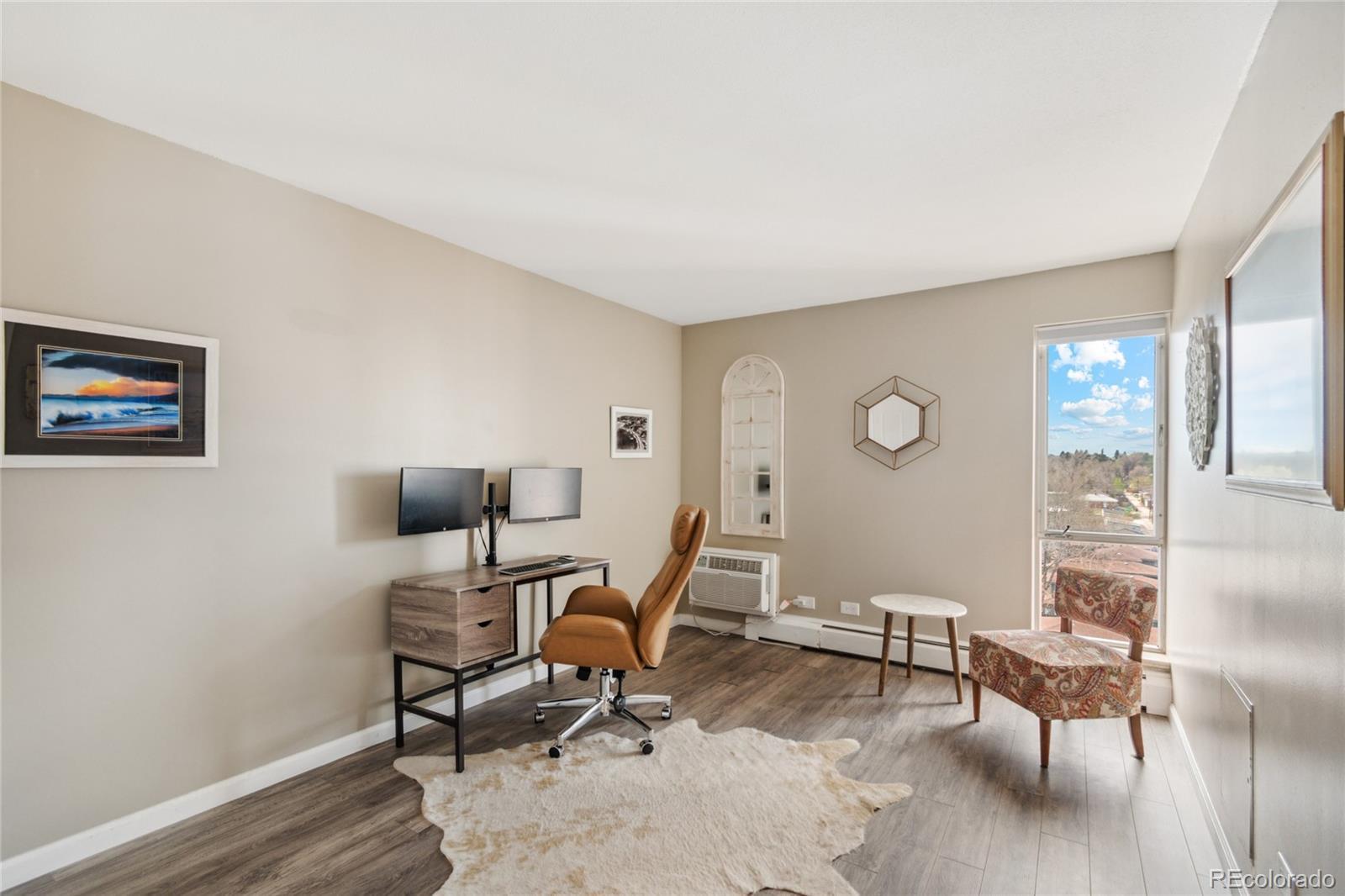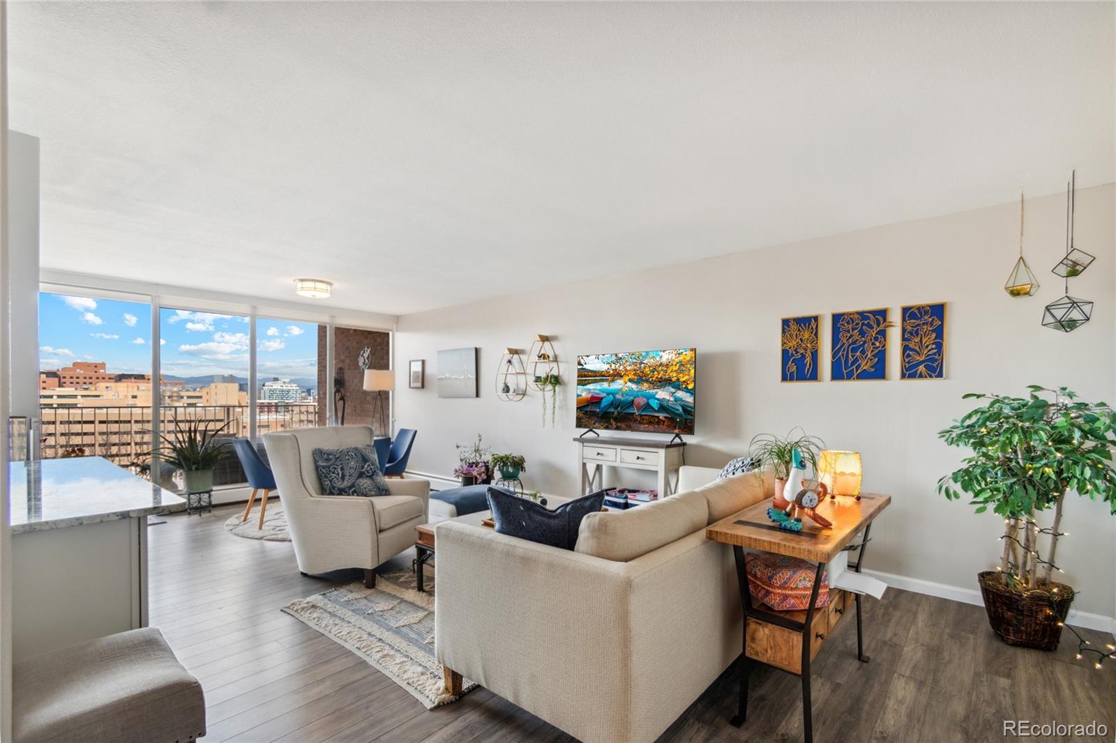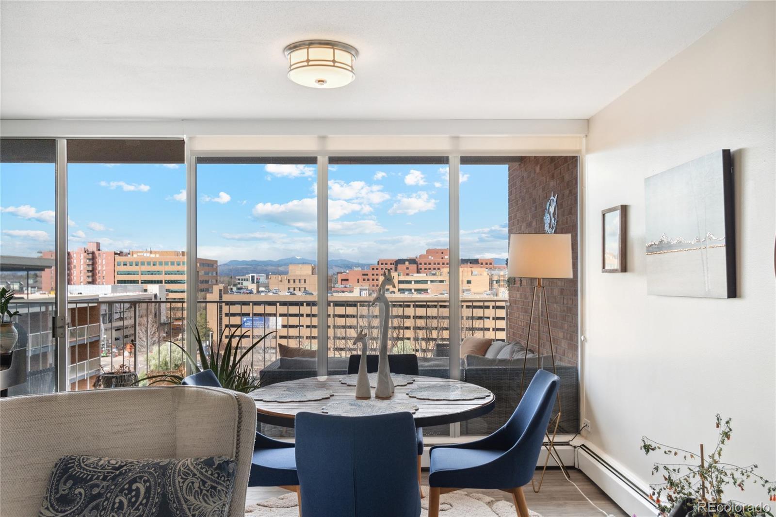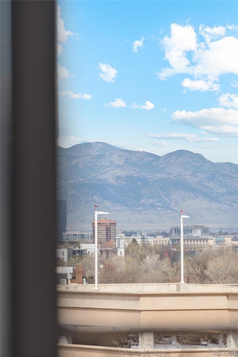 Soak in sweeping mountain views from this beautifully updated Park Mayfair condo perched on the 8th floor. This light-filled residence features two bedrooms, two bathrooms, and an open, contemporary layout designed to maximize both space and scenery. Enjoy unobstructed west-facing views from the living area, the primary suite, and the private balcony—perfect for sunsets and fresh air. The kitchen has been reimagined with an open-concept design and custom finishes, seamlessly connecting to the main living space. The generous primary suite offers a peaceful escape with its own full bath, a large walk-in closet, and direct access to the balcony. Park Mayfair is a secure-access community known for its exceptional amenities, including a newly updated fitness center, sauna, indoor and outdoor pools, and beautifully maintained garden spaces. Ideally located just steps from the restaurants, shops, and entertainment of 9th + CO, this condo combines comfort, convenience, and incredible views.