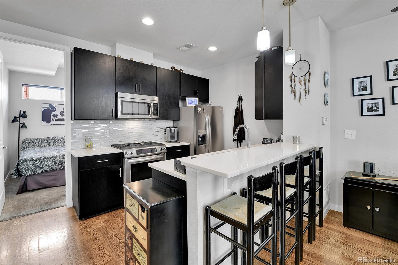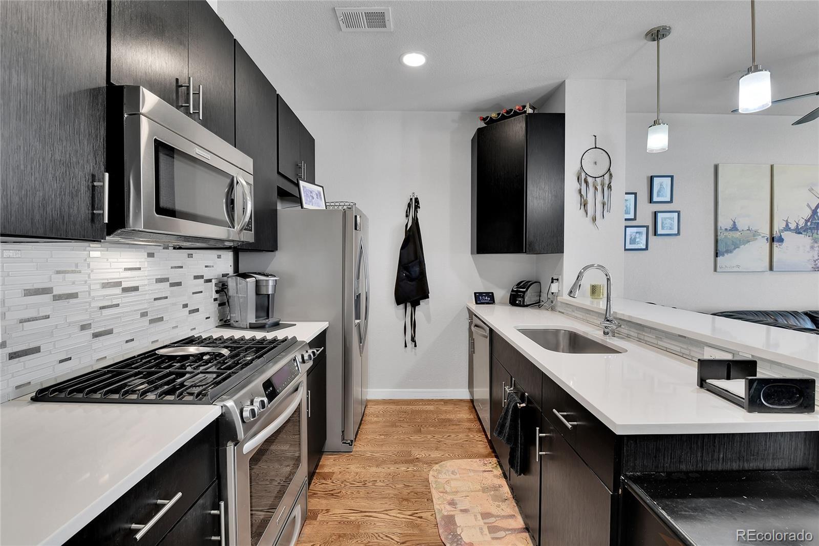 Modern and stylish townhome in a highly sought-after Highlands location! This 3-bedroom, 3-bath home offers exceptional urban living with a spacious layout and thoughtful design. Enjoy a large primary suite, luxury vinyl plank flooring, and a well-appointed kitchen featuring stainless steel appliances and granite countertops. The great room boasts a cozy gas fireplace, adding warmth and charm to your living space. A bedroom and bathroom on each level provide ideal privacy for guests, roommates, or a home office setup. Take in the Colorado sunshine from the incredible rooftop deck — perfect for morning coffee or evening entertaining! Additional highlights include a 2-car garage, refrigerator, washer and dryer included. Unbeatable walkability to the best restaurants, shopping, and nightlife in the Highlands, plus just minutes to Downtown Denver. You’ll also love being steps away from a beautiful park with miles of trails.