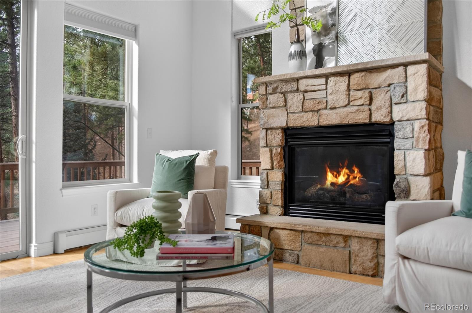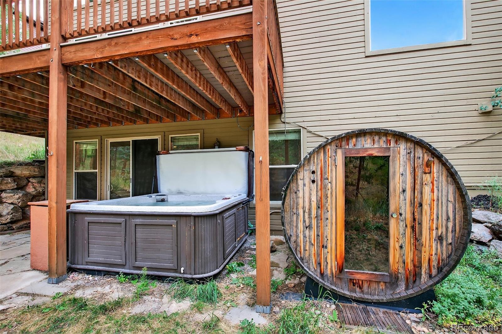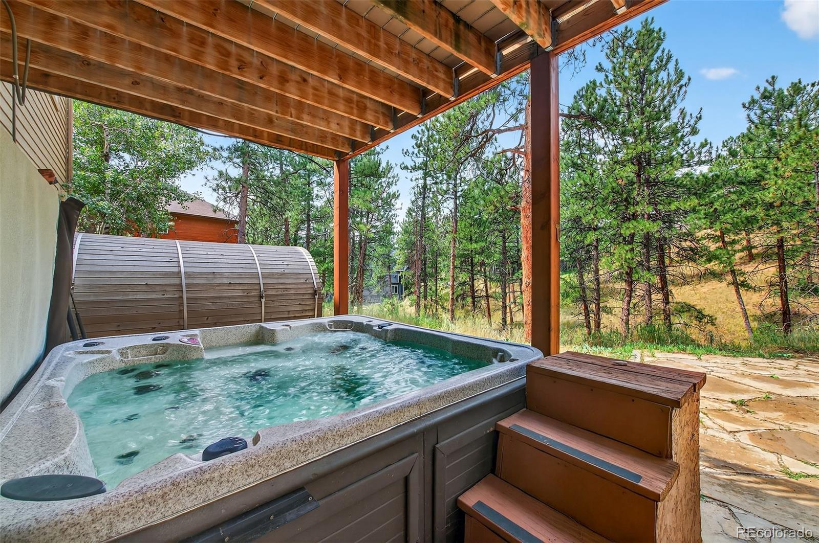 OPEN SATURDAY 11 am - 1pm!!! Step into this stunning mountain home where soaring ceilings, expansive windows, and sweeping views create an immediate sense of space and light. The two-story living room is anchored by a dramatic floor-to-ceiling stacked stone fireplace and connects seamlessly to the kitchen and dining areas, ideal for both everyday living and entertaining. The kitchen features stainless steel appliances, alder cabinetry, granite countertops, and hickory flooring, flowing into a casual dining space. A formal dining room sits just off the entry, along with a private office with French doors—easily adaptable as a main-floor bedroom with access to a full bath. Just off the living area, a spacious deck is perfect for morning coffee, evening meals, and gatherings with mountain views. Recent updates include fresh designer paint throughout and brand-new plush carpet upstairs and in the walk-out basement, giving the home a crisp, move-in ready feel. Upstairs, the primary suite offers incredible views, a five-piece bath, and a large walk-in closet. Two additional bedrooms share a Jack-and-Jill bath, and a versatile loft provides space for an office, reading nook, playroom, or fitness area. The bright walk-out lower level includes a pool table area, fourth bedroom, full bath, and a large unfinished section with a partially finished room—perfect for a gym, media room, or studio. An oversized three-car garage with tandem third bay offers high ceilings and great storage. The private yard features a sauna, hot tub, and seating area for a true mountain retreat. New roof installed August 2023. Located minutes from Downtown Evergreen with easy access to shops, dining, and outdoor recreation, including Lair O’ the Bear Park (4.5 miles), Red Rocks (15 minutes), Denver (45 minutes), DIA (1 hour 20 minutes), and skiing within 1.5 hours. *** PHOTOS DON'T DO THIS HOME JUSTICE .. .SCHEDULE A SHOWING TODAY ***