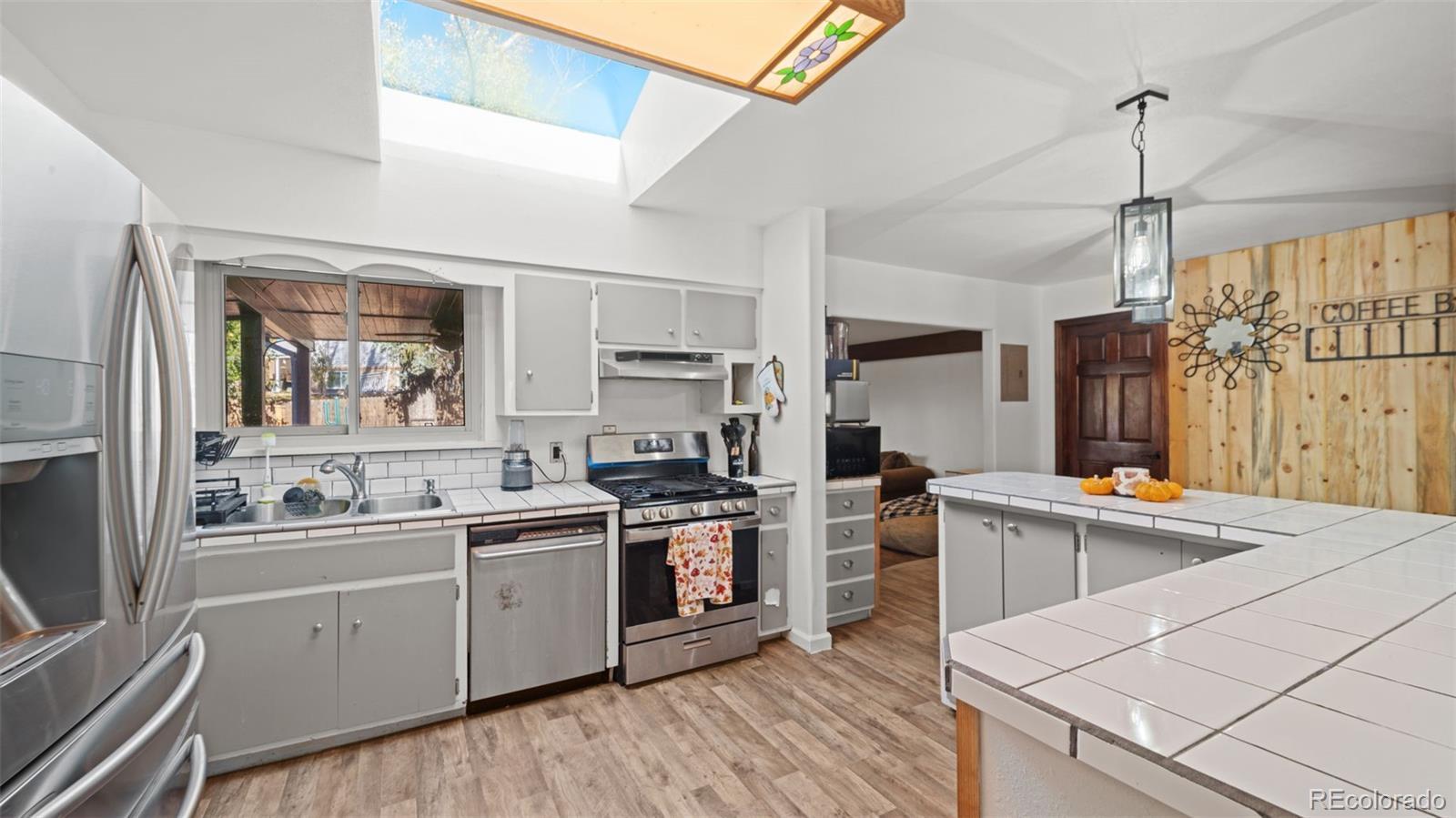 Spacious and full of potential, this inviting 4-level home offers room to spread out and make it your own. The open-layout kitchen flows effortlessly into the main living area, creating a comfortable space for everyday living and entertaining. One of the bathrooms has been beautifully remodeled, featuring stylish tile throughout and a sleek new sink that adds a modern touch. Fresh paint on select interior and exterior areas gives the home a refreshed feel, while the roof—inspected just a year ago—was noted to be in good condition for added peace of mind. The home sits on a generous lot with plenty of yard space in both the front and back, perfect for gardening, outdoor gatherings, or simply enjoying Colorado’s sunshine. With multiple levels of living space, there’s flexibility to create additional bedrooms, offices, or recreation areas to suit your lifestyle. Whether you’re looking for space to grow, a home to customize, or a solid investment opportunity, this property offers the perfect foundation—ready for its next owner to make it shine.