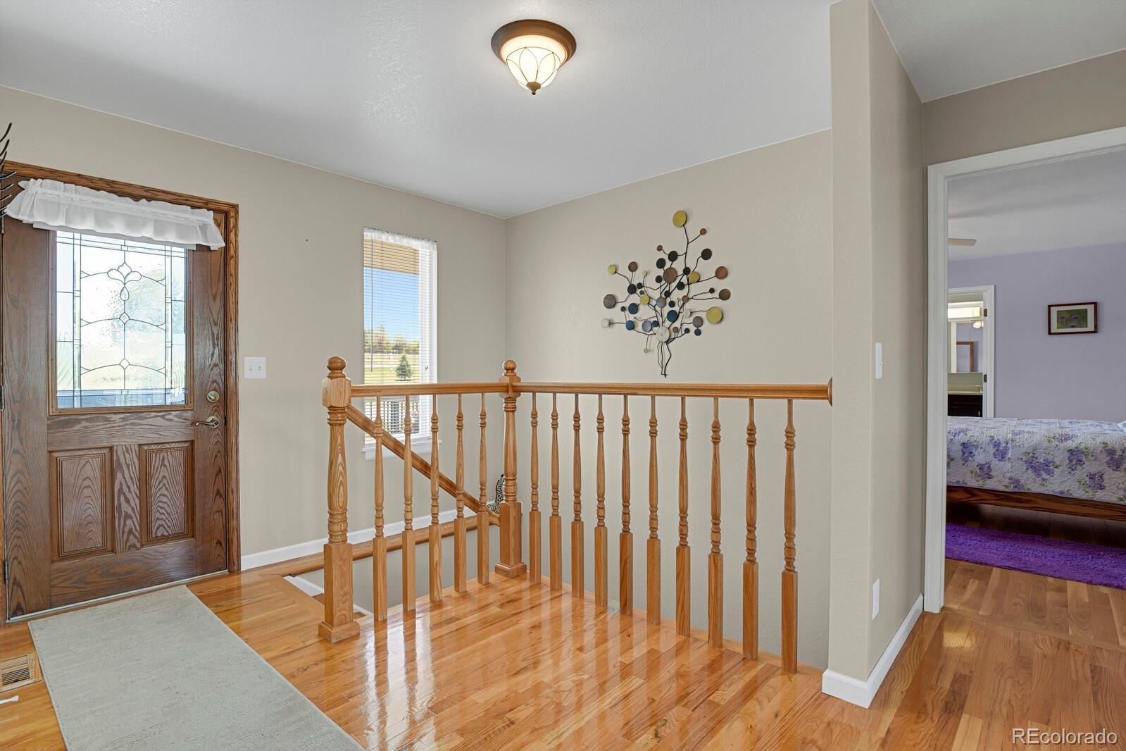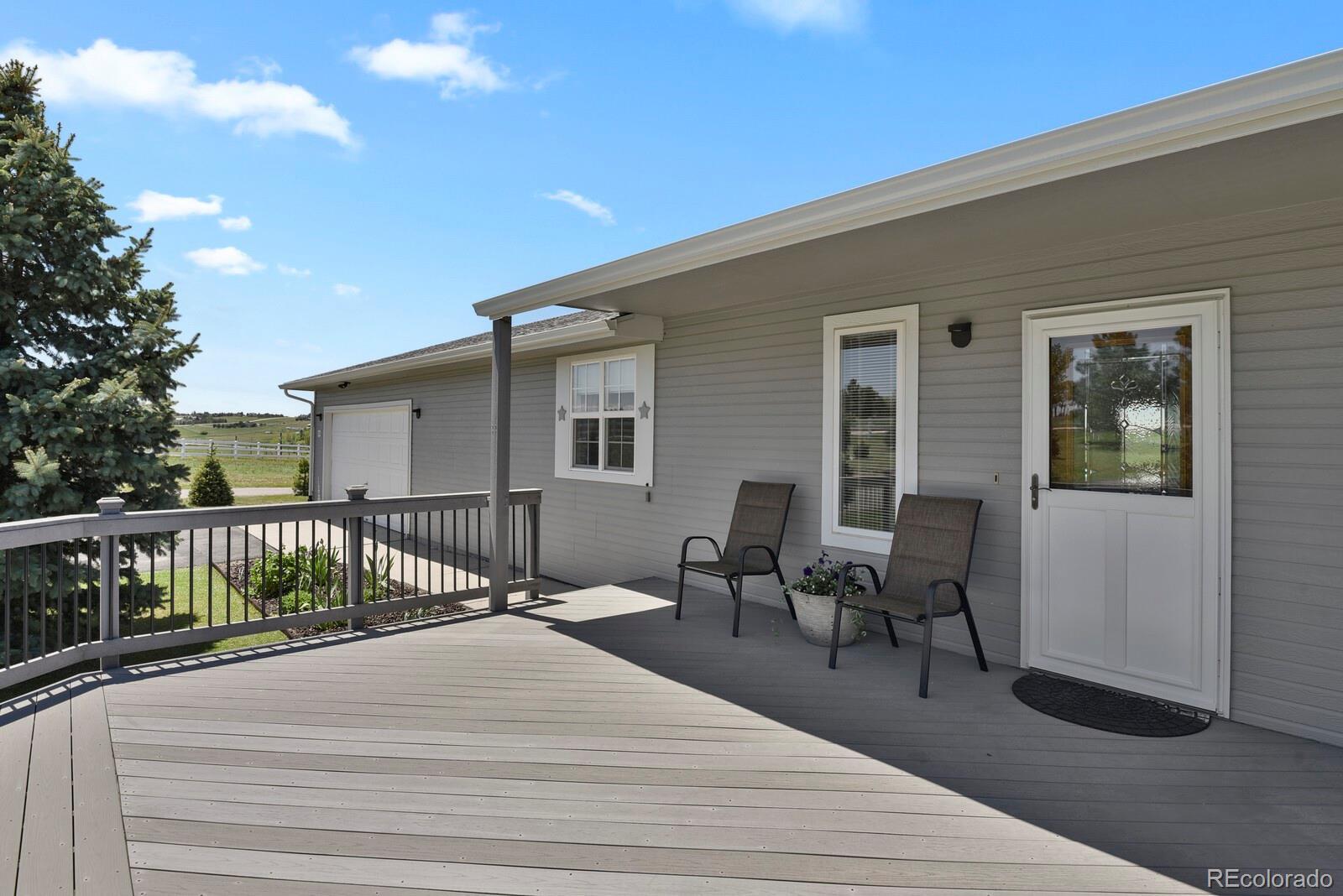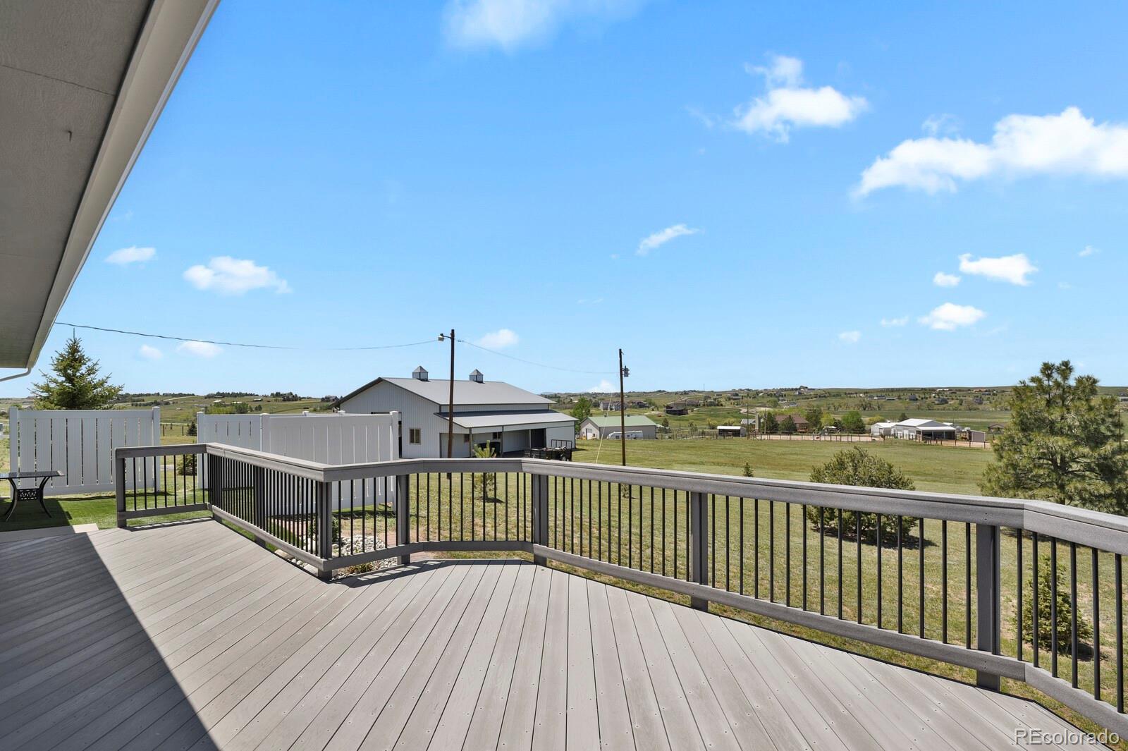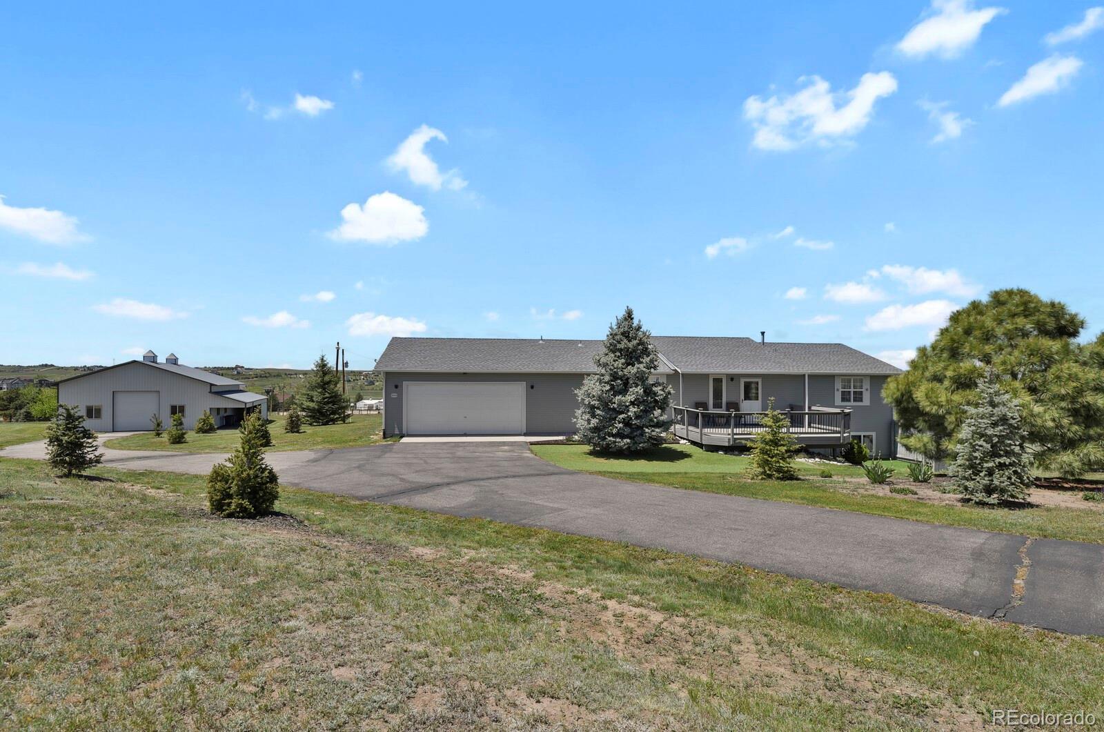 Welcome home to this immaculately maintained 5-acre property in Parker! This home features four large bedrooms, three bathrooms, with hardwood floors throughout the main floor. Enjoy entertaining with the updated kitchen and basement wet bar. You can enjoy outdoor living on front and back Trex decks. In 2023 the home received an exterior facelift with new paint, new gutters and a new roof! You'll have plenty of space to work on your own projects in the spacious barn that has a large bay door and an interior work room / office! The fully fenced 5-acre lot is perfect for the horse lover in your family and the driveway has an electronic gate for your privacy! Easy commute to Parker or Southlands! See the property website and virtual tour here: https://capturecoloradohomes.gofullframe.com/bt/3596_Longs_Peak_Circle.html