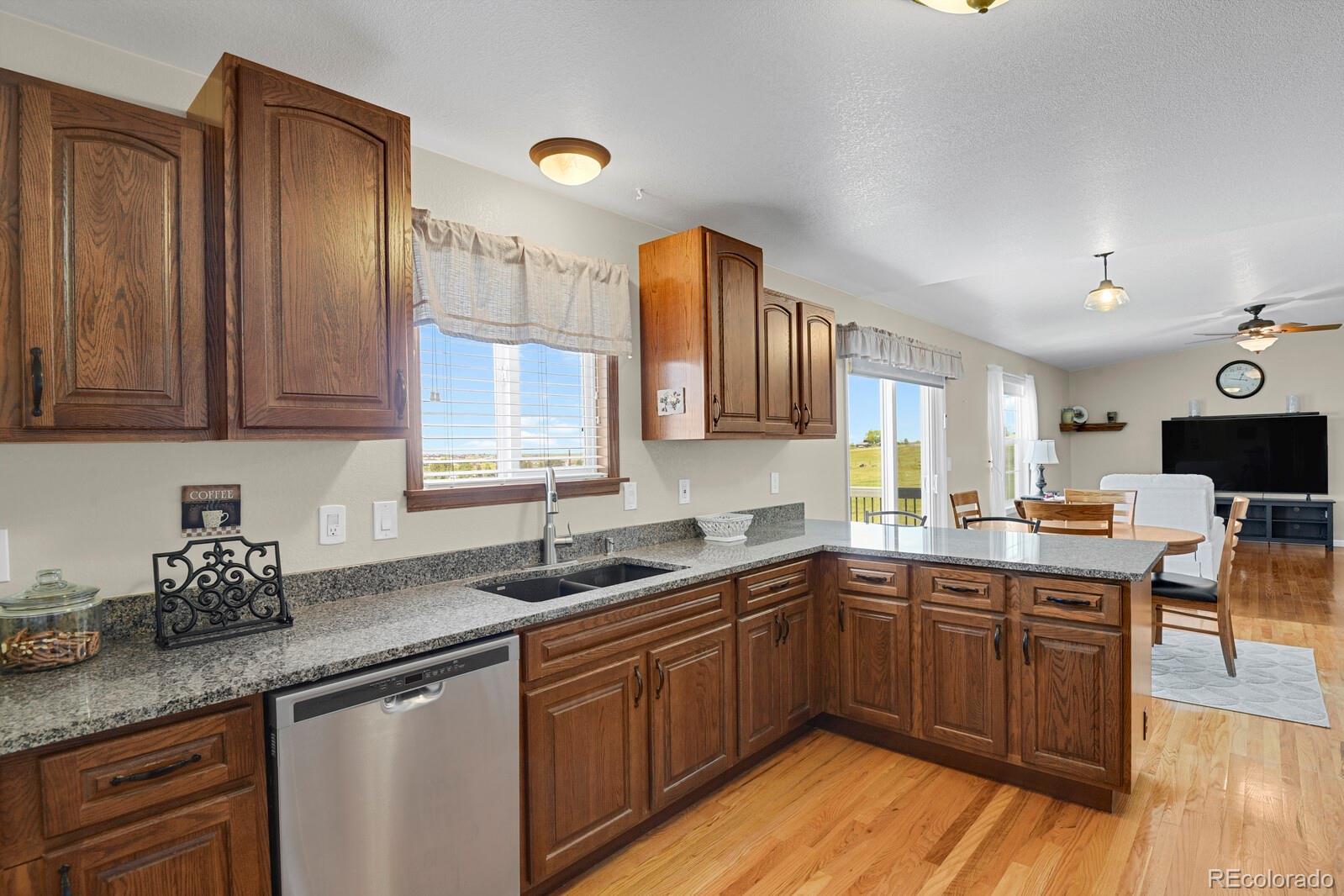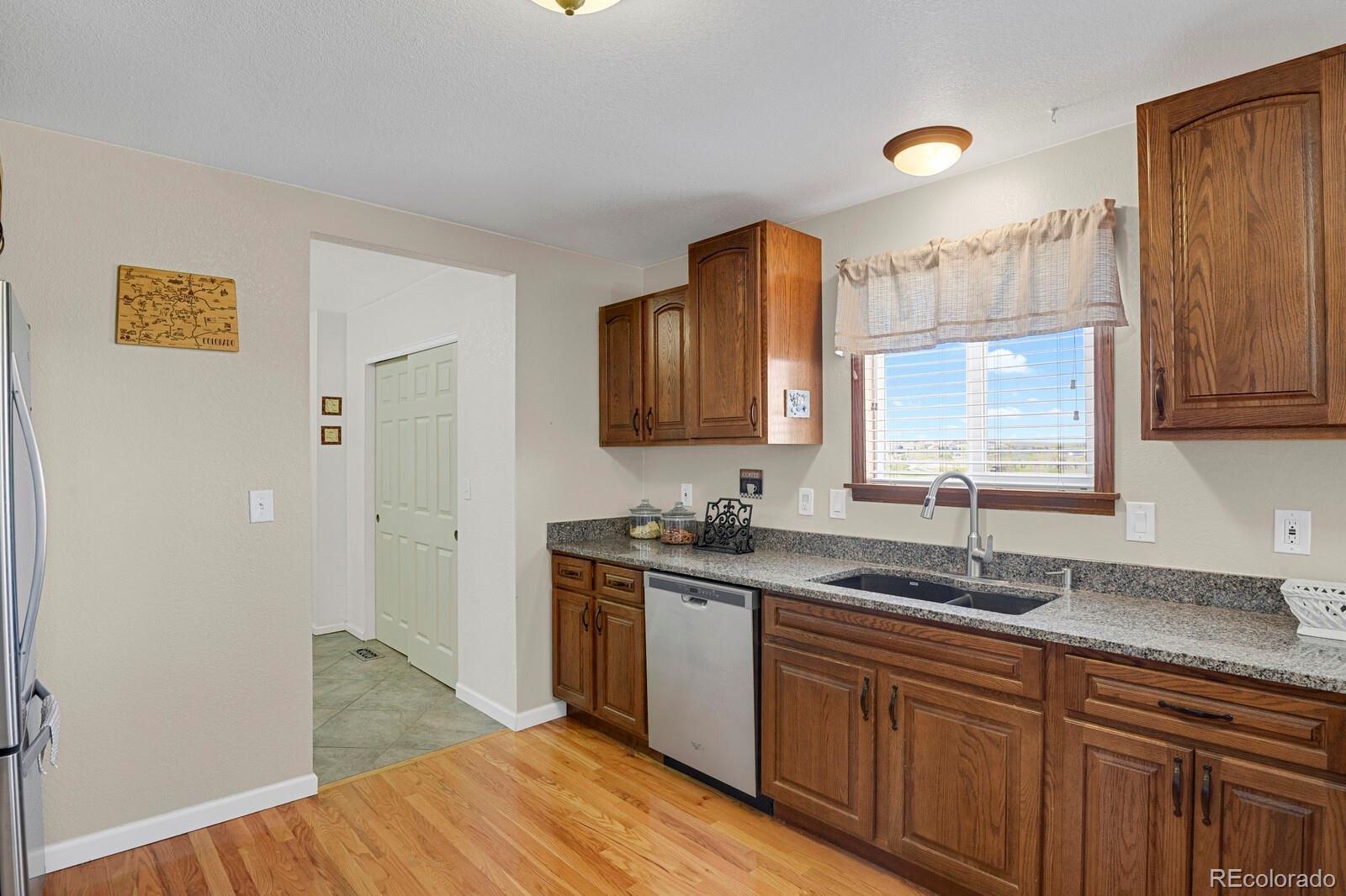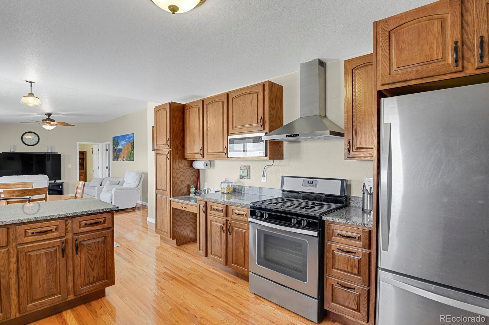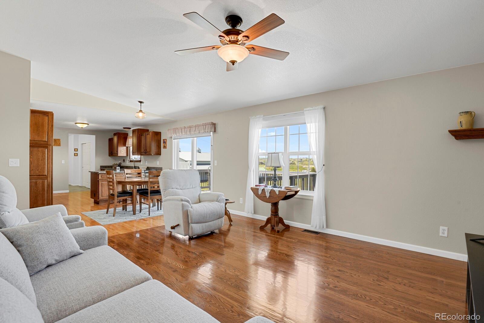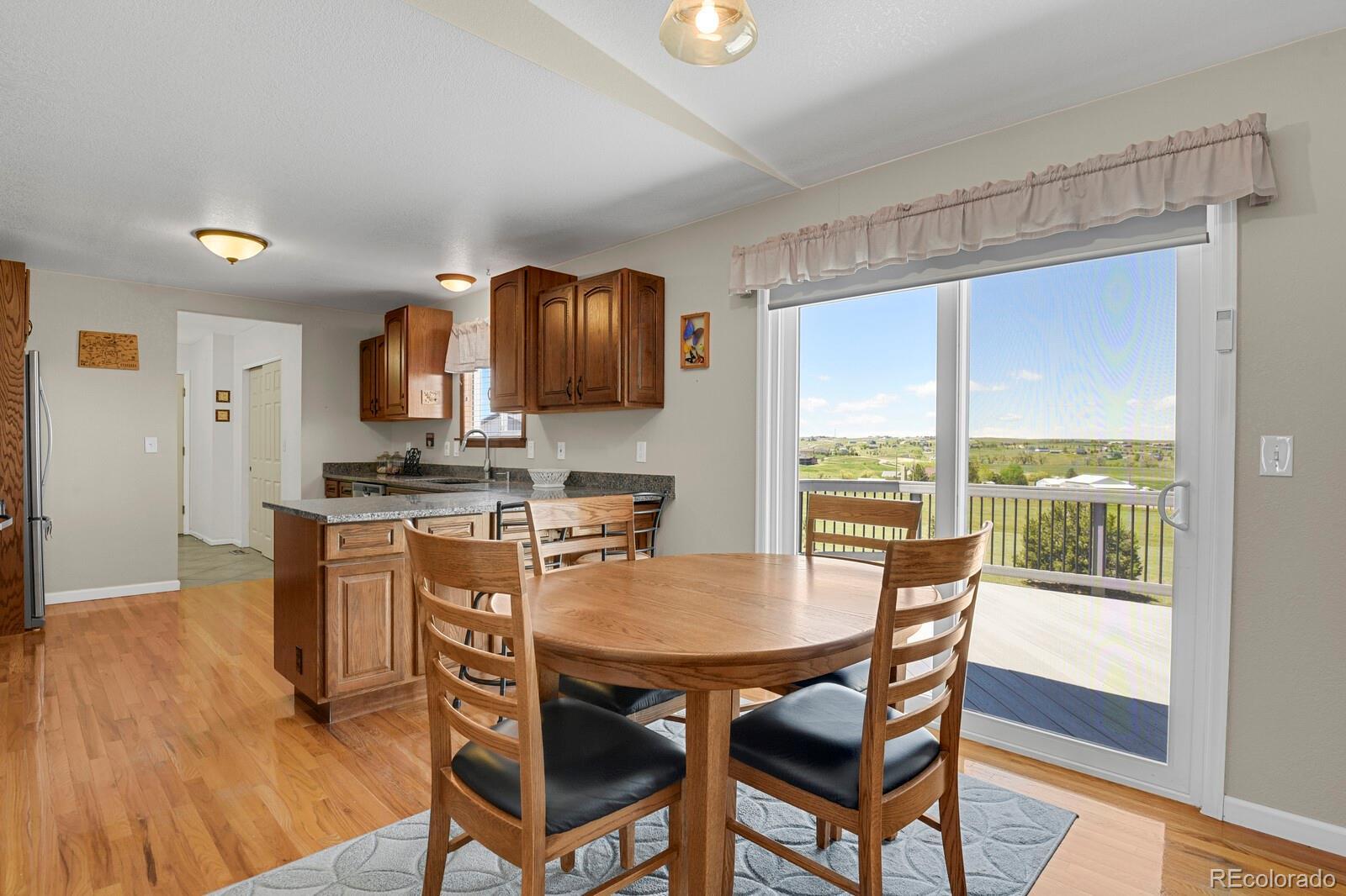 Welcome home to this immaculately maintained 5-acre property in Parker! This home features four large bedrooms, three bathrooms, with hardwood floors throughout the main floor. Enjoy entertaining with the updated kitchen and basement wet bar. You can enjoy outdoor living on front and back Trex decks. In 2023 the home received an exterior facelift with new paint, new gutters and a new roof! You'll have plenty of space to work on your own projects in the spacious barn that has a large bay door and an interior work room / office! The fully fenced 5-acre lot is perfect for the horse lover in your family and the driveway has an electronic gate for your privacy! Easy commute to Parker or Southlands! See the property website and virtual tour here: https://capturecoloradohomes.gofullframe.com/bt/3596_Longs_Peak_Circle.html