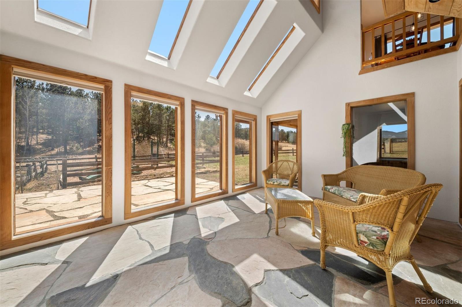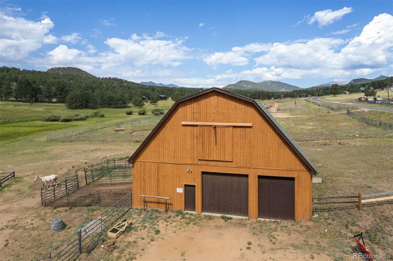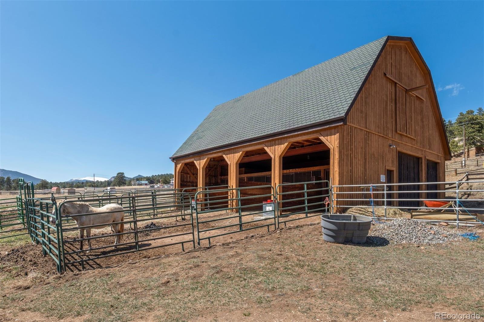 Welcome to 1740 County Road 72, a mountain contemporary home on 5+ gently-sloping, fully fenced, acres in Burland Meadows, Bailey, 80421. The 4-bedroom, 3-bath house offers 3,110 sq ft of light-filled space with snowcap views and seamless indoor-outdoor living. Enjoy a luxurious main-floor primary suite, a spacious open-concept kitchen perfect for entertaining. Large windows frame the stunning outdoor beauty. The open lower-level walkout offers a sunroom as well as the 4th bedroom and 3rd bath. This property is a dream for horse enthusiasts featuring a 4-stall, 40’x40’, two-story barn with ample hay storage, a tack room, an office / art studio. It is adjacent to the community equestrian park. The lush grass hay pasture offers near-year-round grazing thanks to the wetland, making it ideal for those who cherish equestrian activities. The household use well permit allows for watering of horses + turf irrigation. The 3-car attached garage adds convenience + storage.