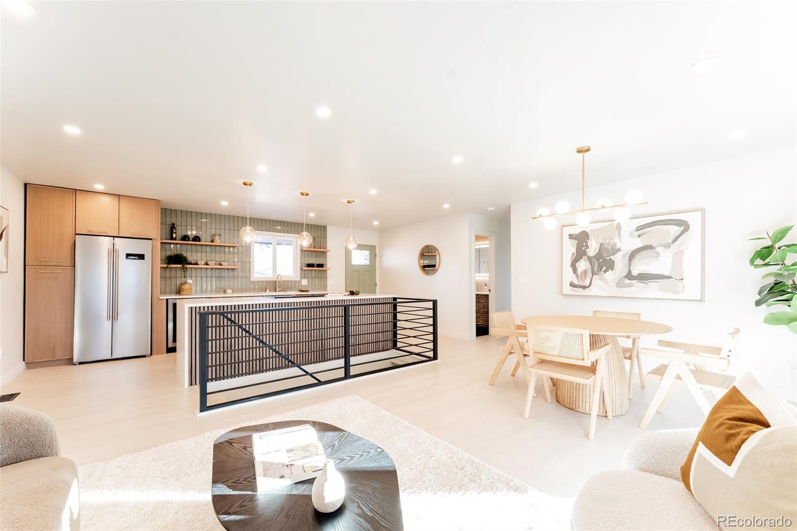 Remodeled Brick Ranch Featuring a Rare 1,000+ Sq Ft Garage in Centennial 80122! This stunning home features a bright, open floor plan filled with natural light, showcasing modern finishes throughout. The sophisticated kitchen boasts a waterfall island, elegant wood cabinetry, pendant lighting, fully tiled backsplashand and tasteful gold accents—perfect for everyday living and entertaining. New flooring, fresh paint, and thoughtfully designed spaces create a warm, contemporary feel the moment you walk in. Expansive sliding glass doors and two exterior access doors create seamless indoor-outdoor living and showcase peaceful backyard views from multiple areas of the home. The fully finished basement offers two bedrooms, a full bathroom, and a flexible room perfect for a home theater, gym, or family den. Extra basement living room ideal for guests, media, or family use. Step outside to a beautifully landscaped backyard with rock accents, pergolas, and new concrete—ideal for entertaining or relaxing. The detached 1,000+ sq ft garage, complete with exterior door and window, can fit 4+ vehicles and RV parking, with plenty of additional off-street driveway parking. Unique exterior wood accents add warmth and character to this home. Recent updates include a new furnace, AC unit, water heater (2026), double-pane windows, roof, and appliances—everything is ready for you to move in! Enjoy convenience with no HOA and close proximity to highly rated schools—Gudy Gaskill Elementary, John Wesley Powell Middle, and Arapahoe High—perfect for families. Shopping and dining are just minutes away at Park Meadows Mall, IKEA, Costco, Whole Foods, King Soopers, Starbucks, and The Streets at Southglenn. Quick access to freeways and the Denver Tech Center makes commuting a breeze. Don’t miss this incredible opportunity—schedule a showing today and make this dream home yours!
